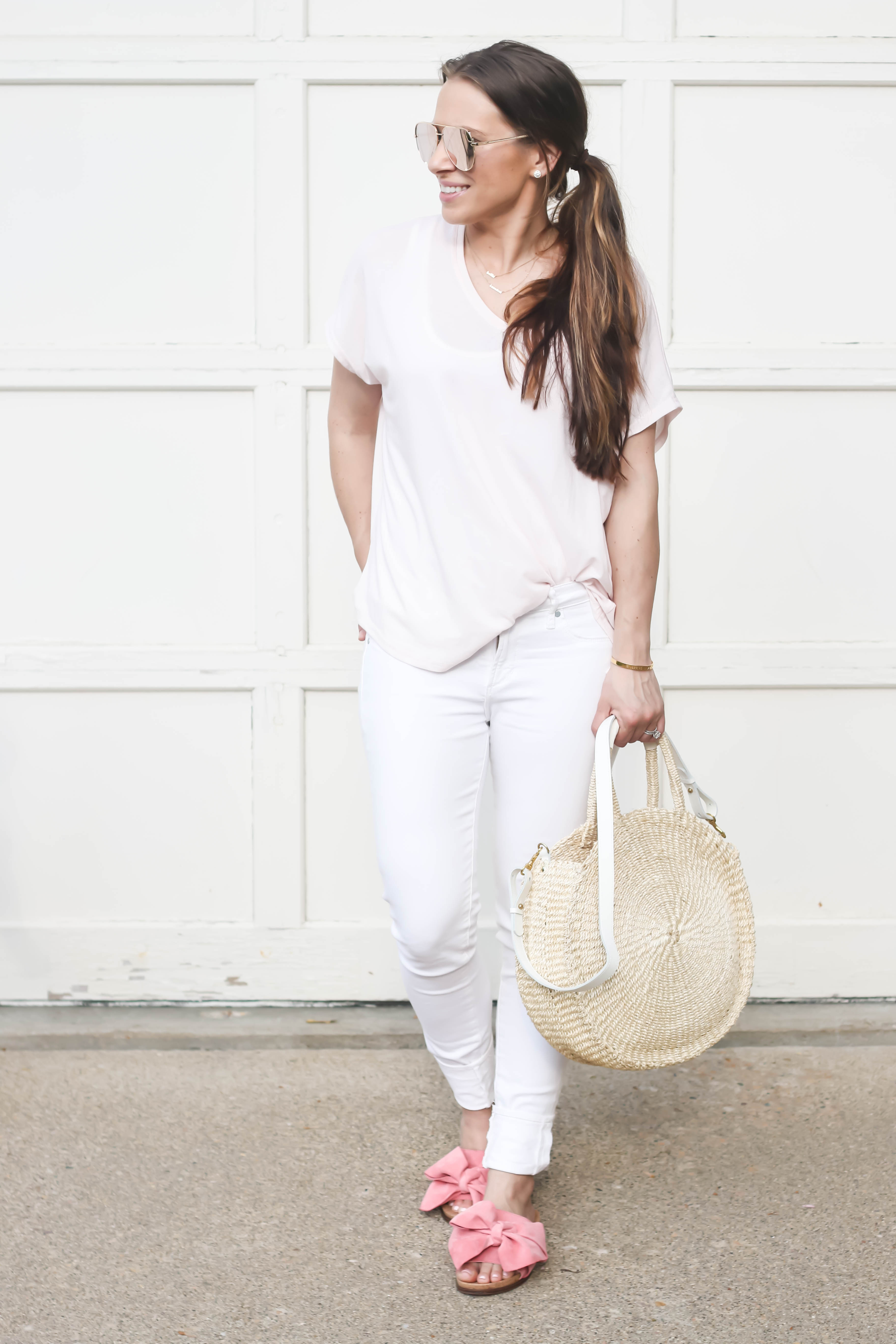 Happy Wednesday! Today, I'm sharing a look Bella and I wore to the farmer's market this weekend! It sure has warmed up and it's starting to feel like spring...however, it's about to get cold again this week. As you know, I love love lov this bag. It's seriously the perfect summer accessory. Also, these bow sandals are so cute and so comfy! They come in a handful of different colors as well! I hope you all have a wonderful week. (All outfit details are listed below)