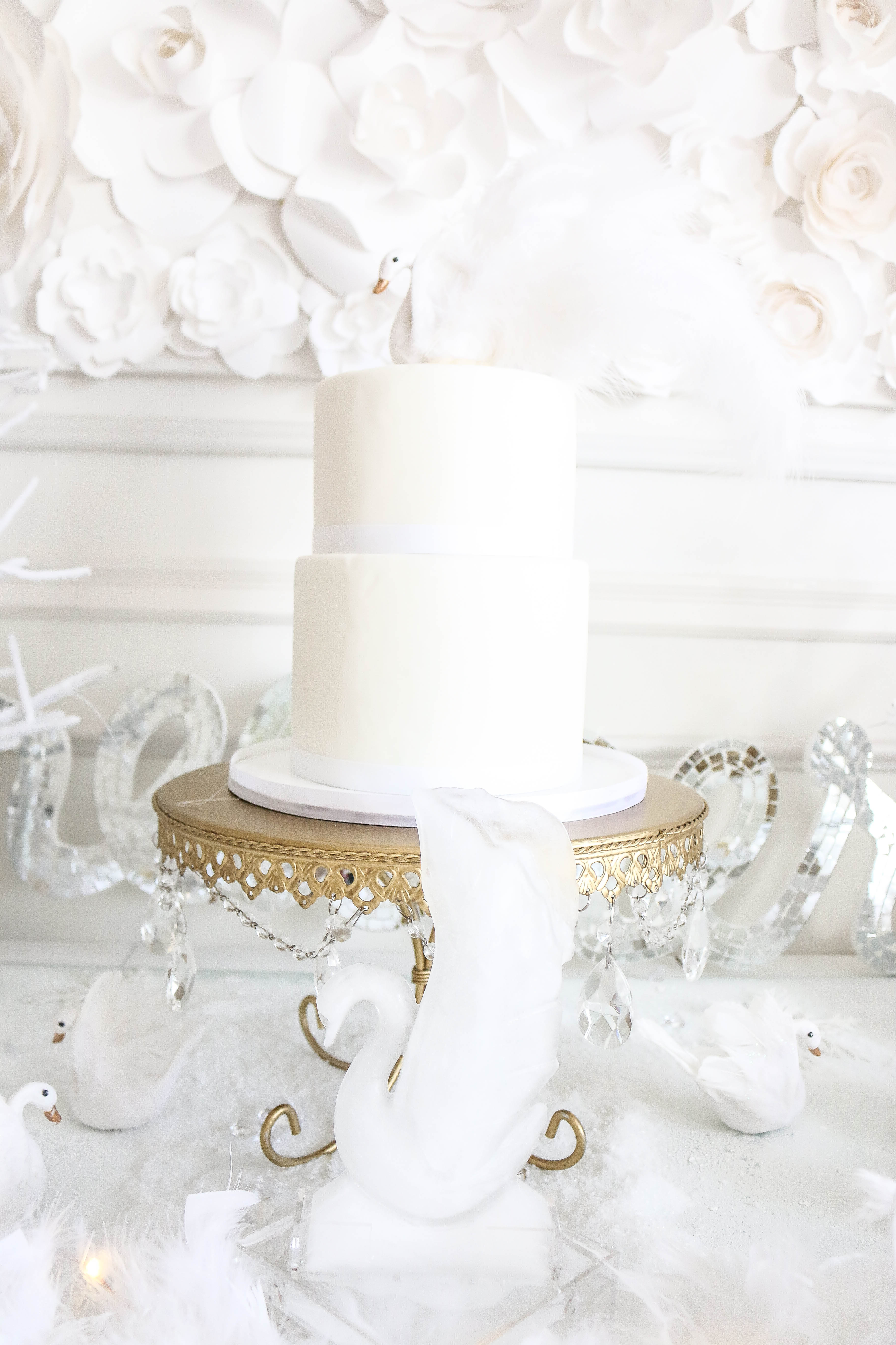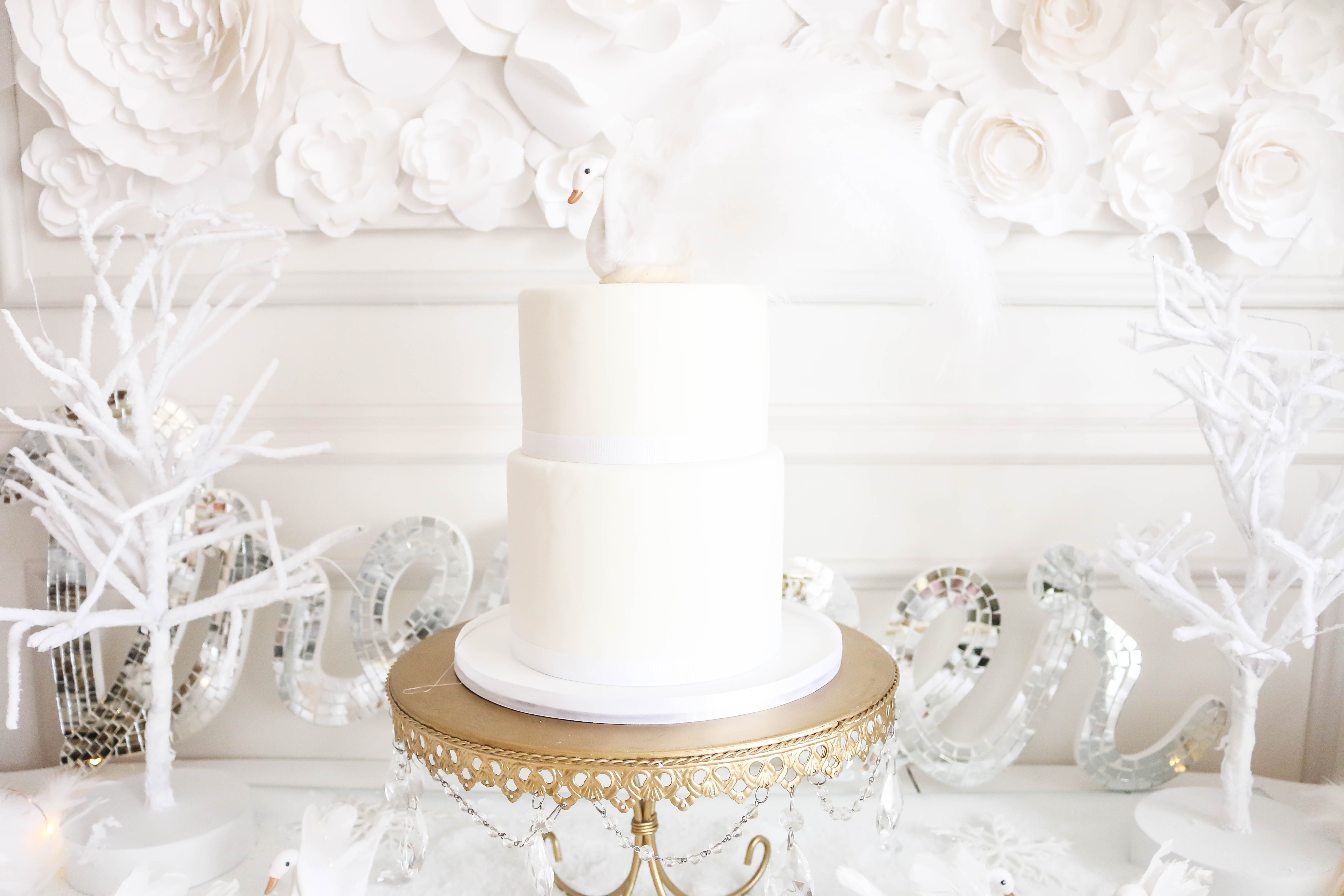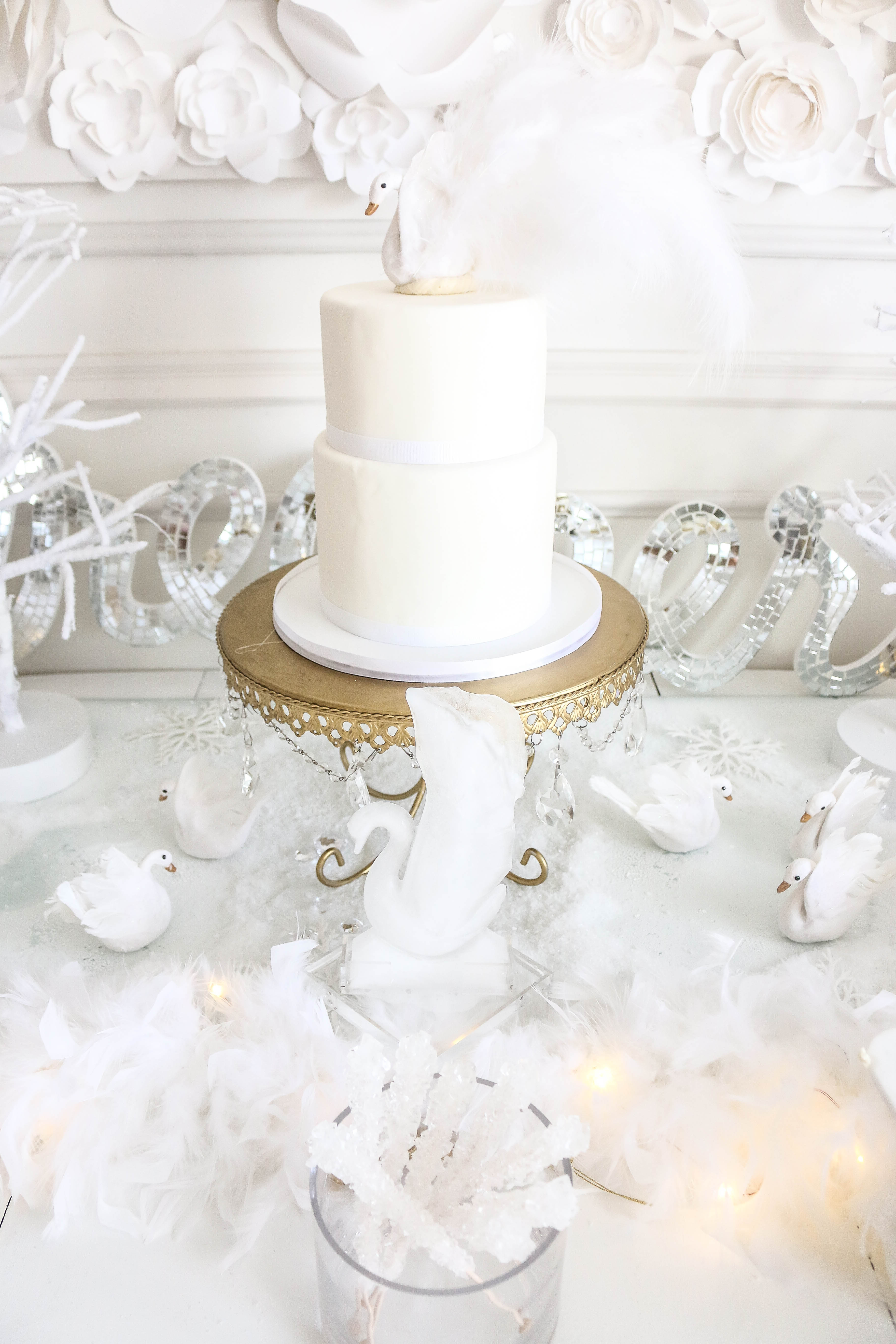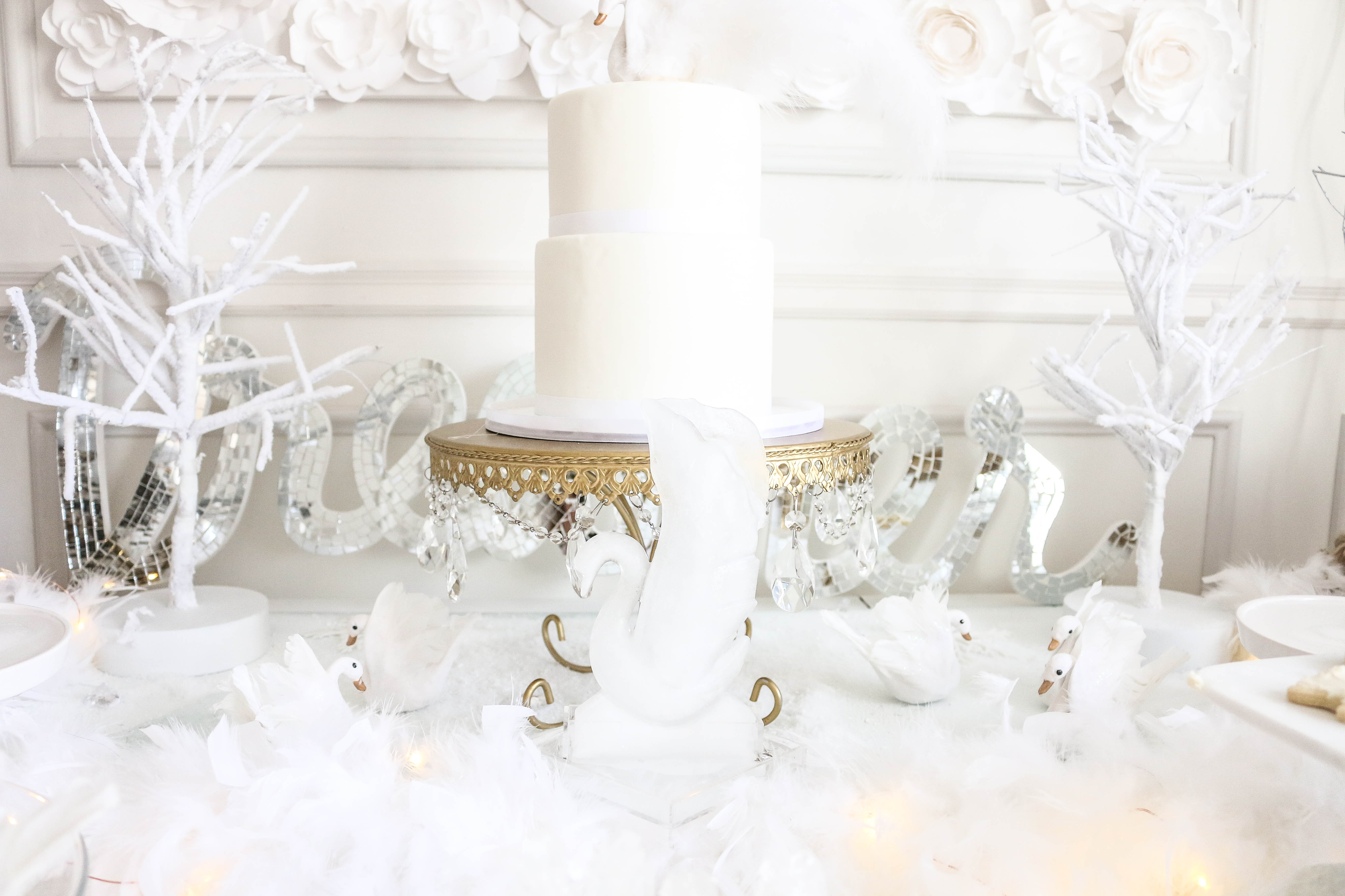Swans (I painted the beaks rose gold and added feathers for Bella's cake topper): Create for Less