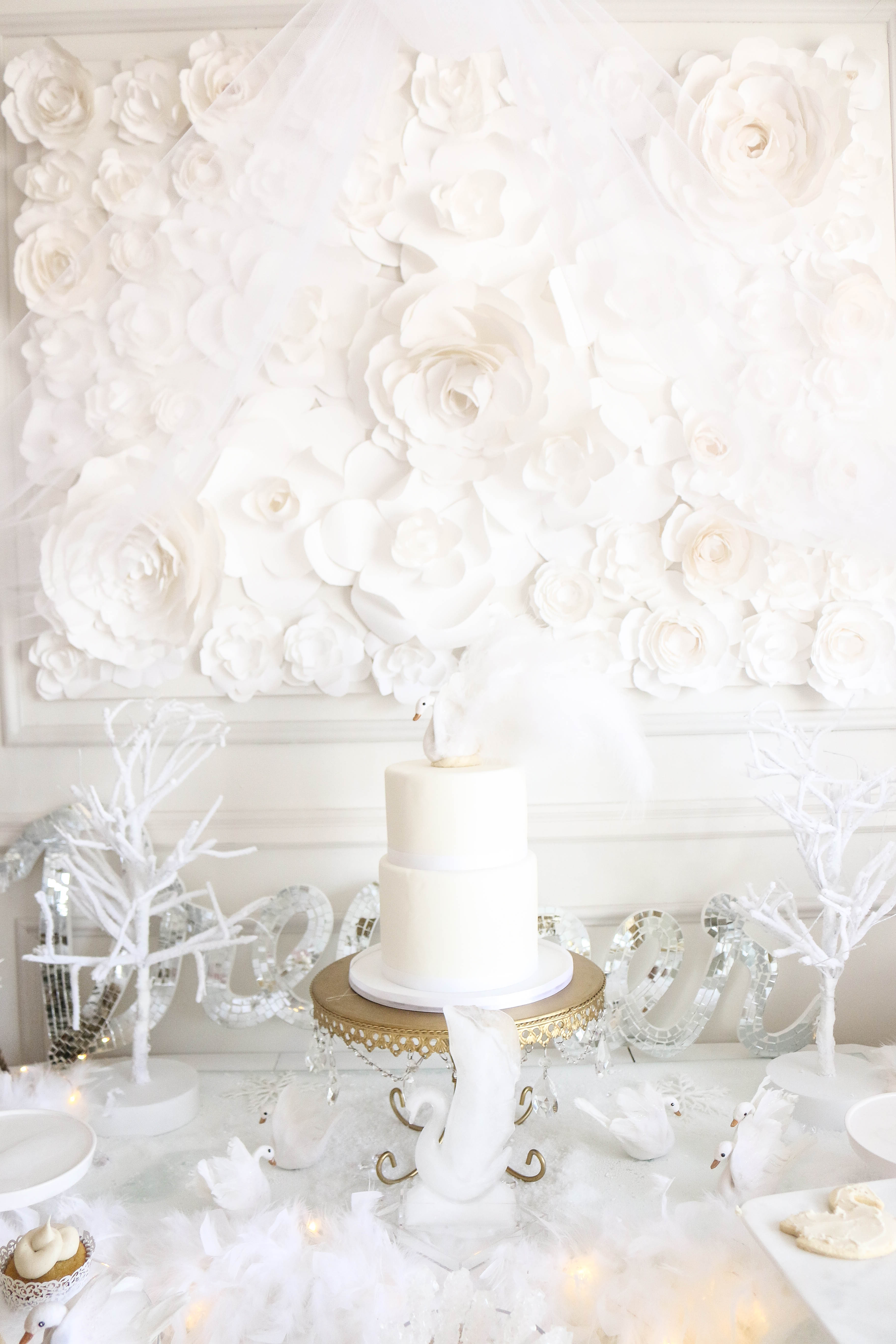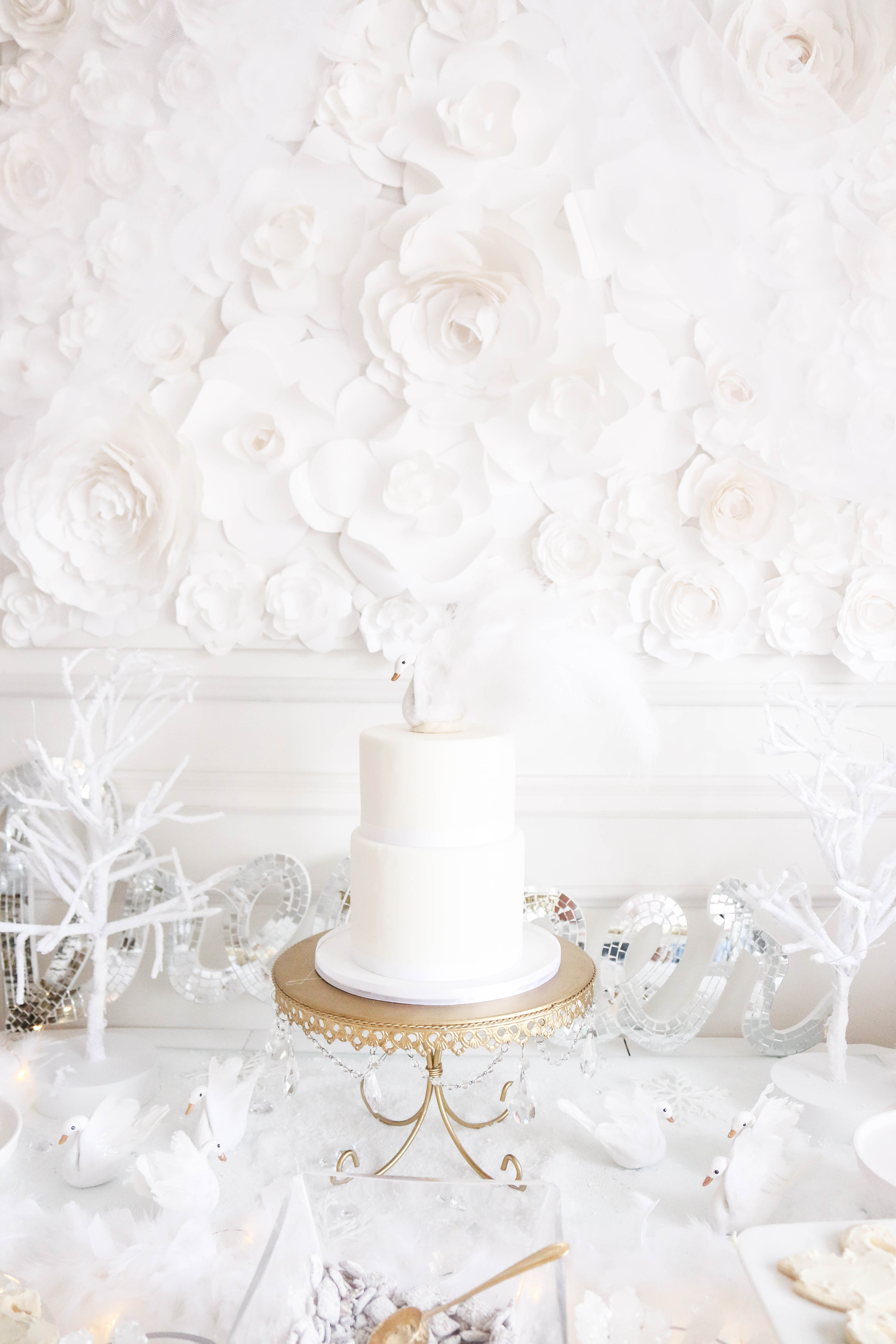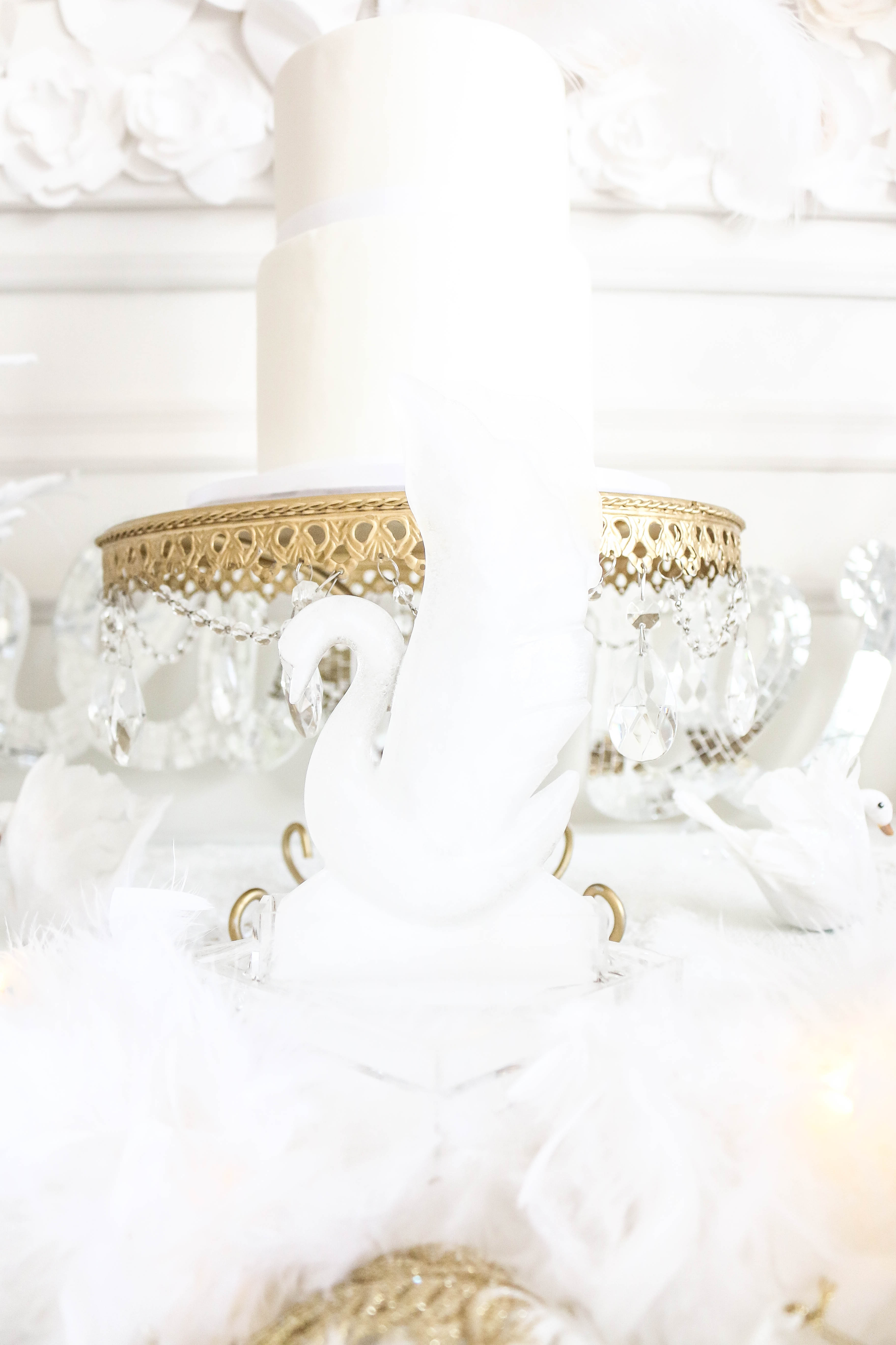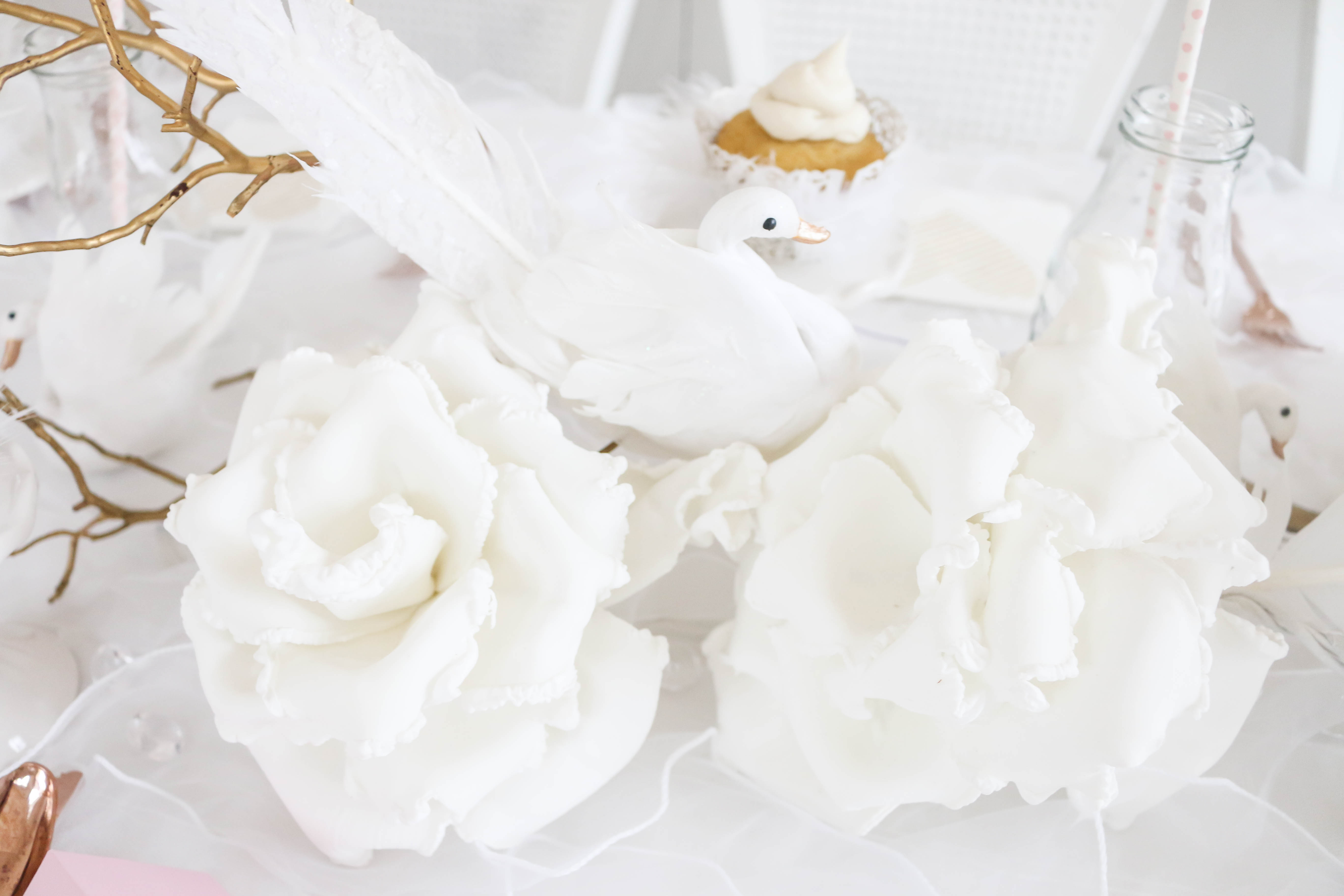 Swans (I painted the beaks rose gold and added feathers for Bella's cake topper): Create for Less