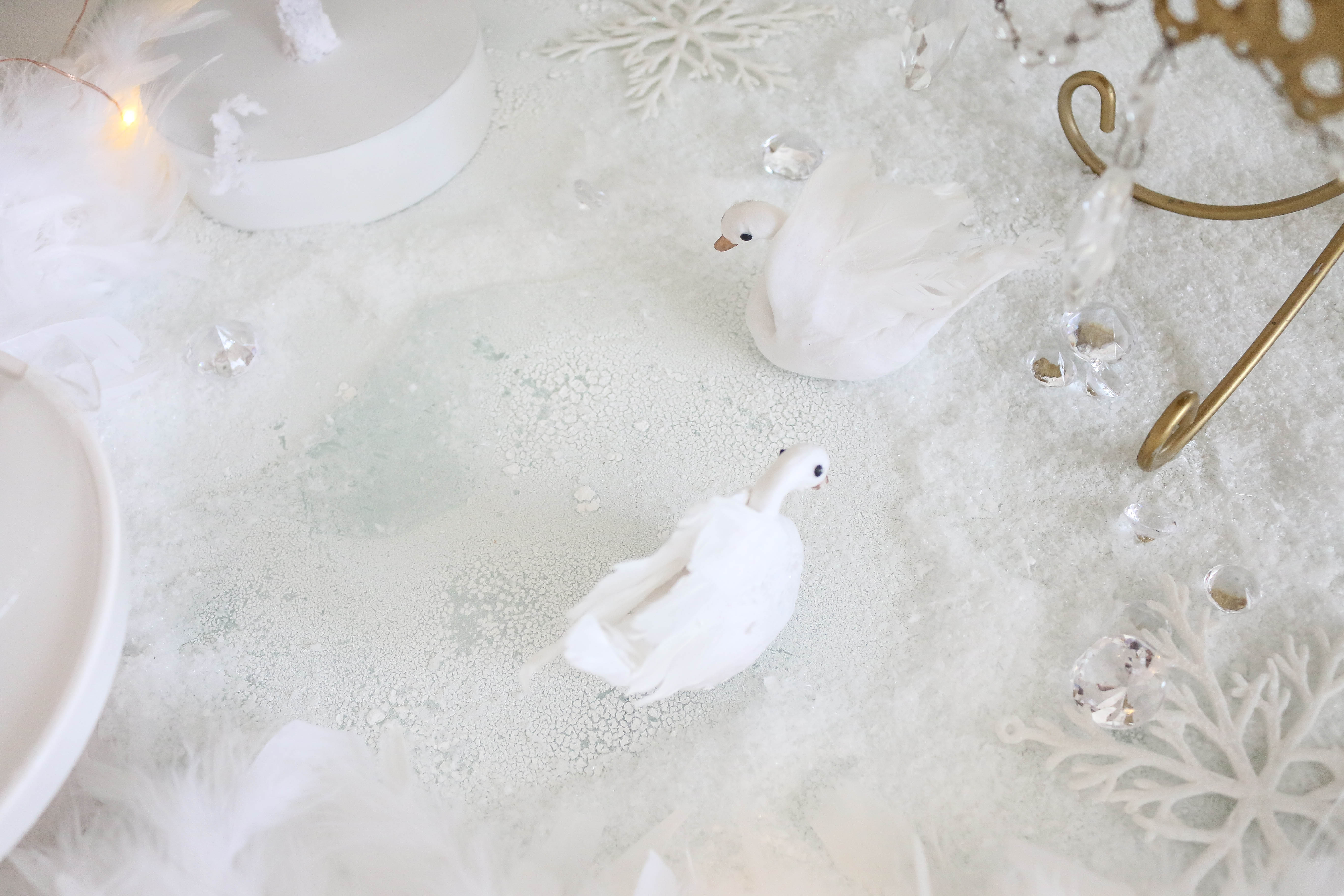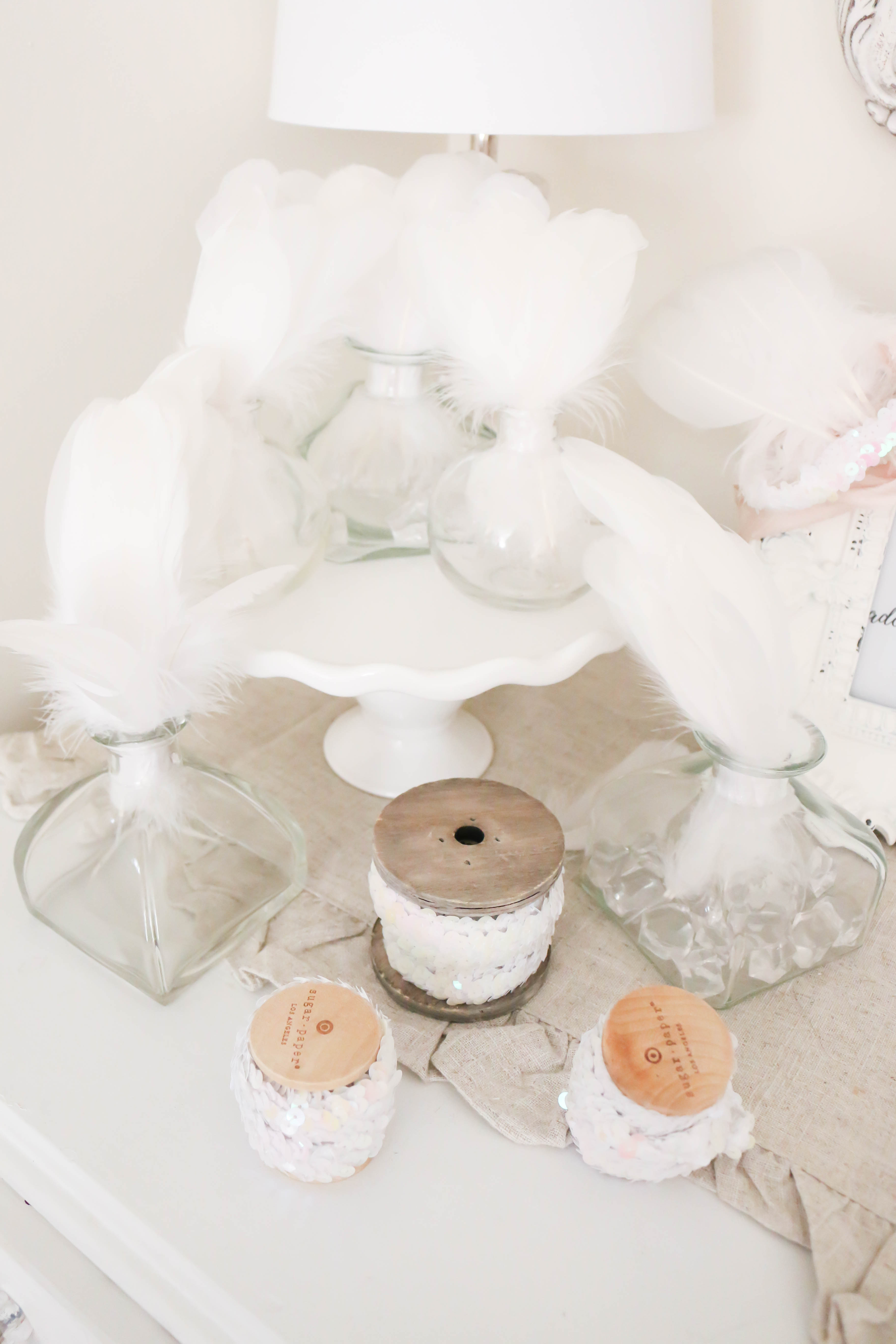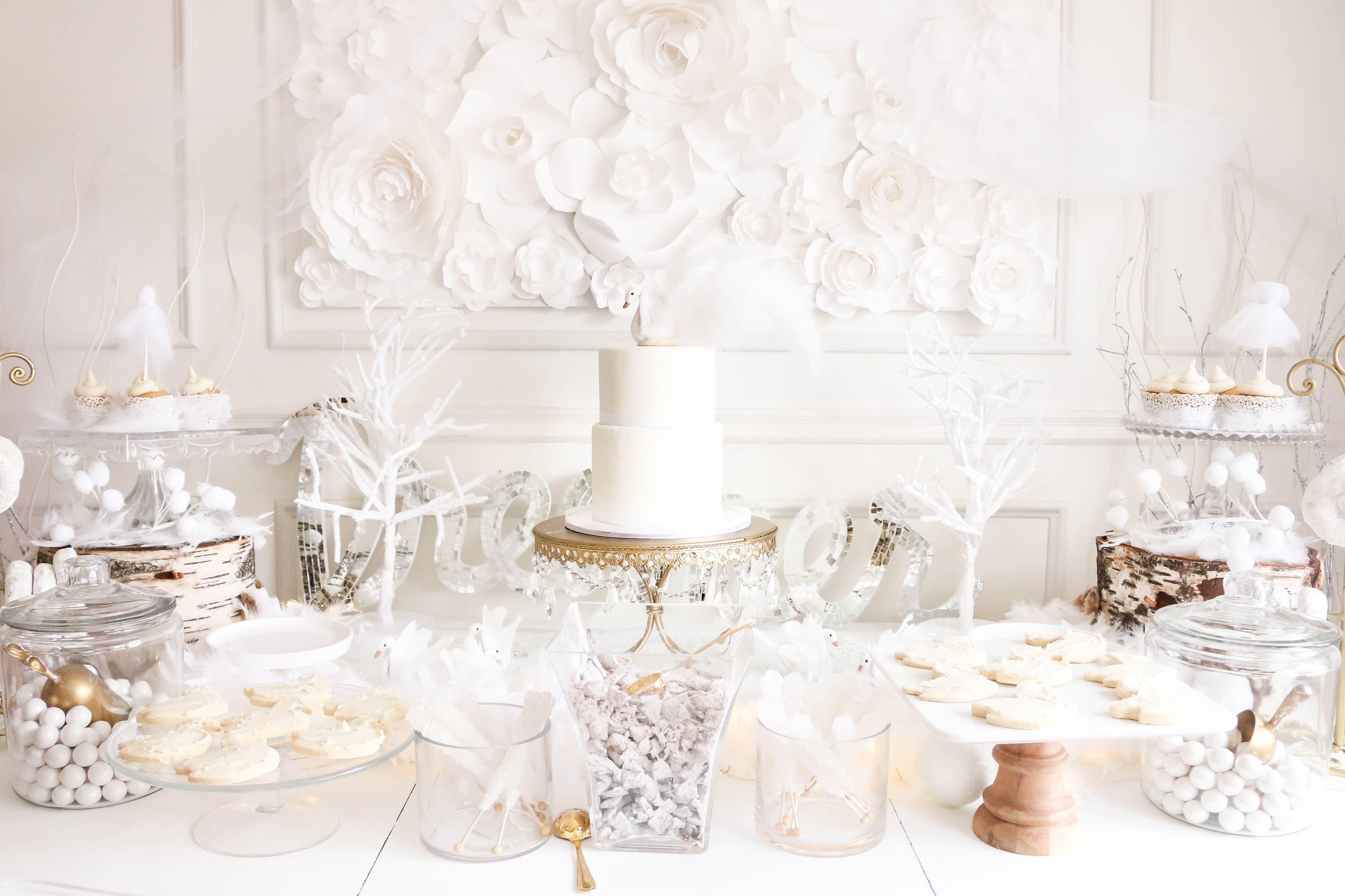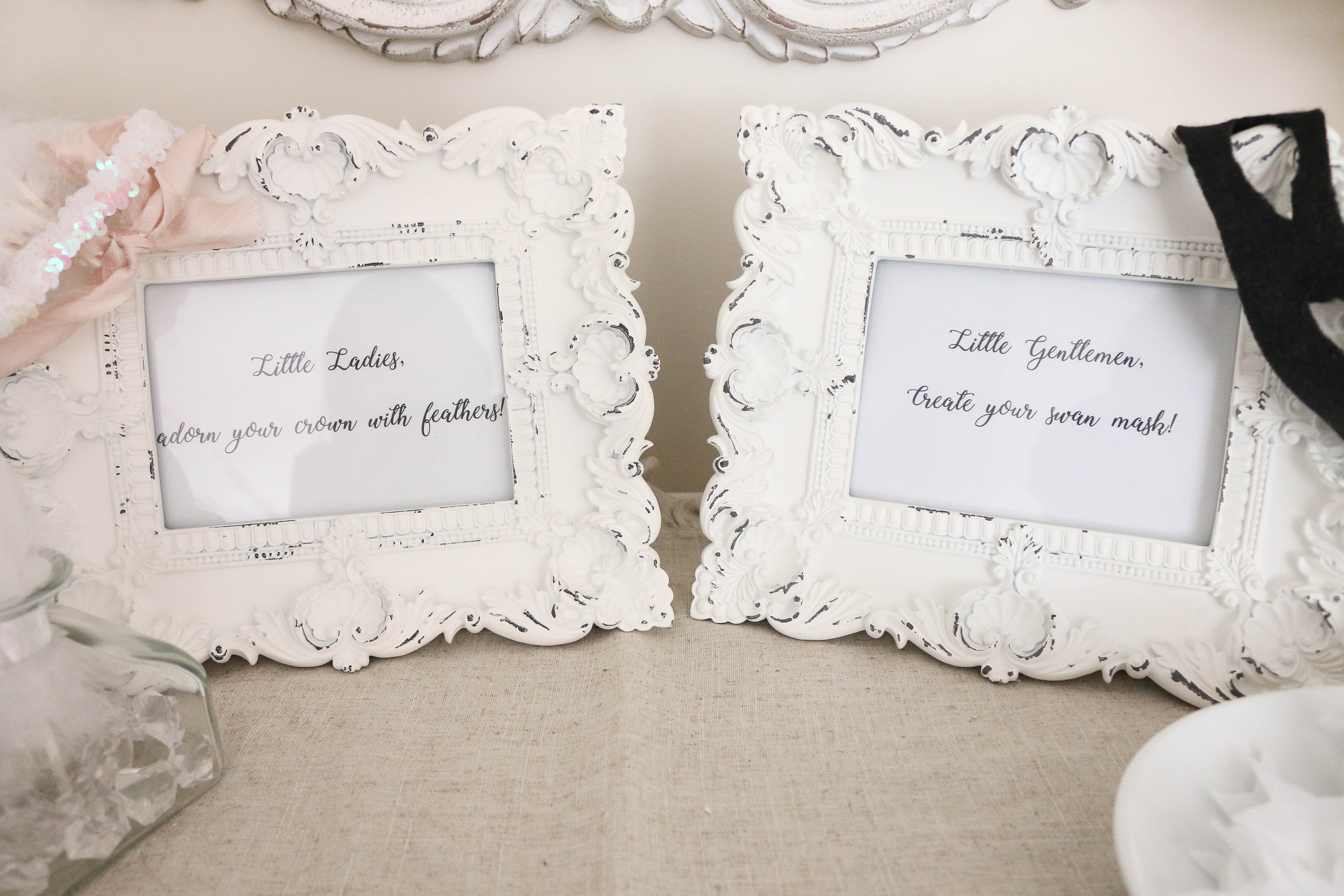Swans (I painted the beaks rose gold and added feathers for Bella's cake topper): Create for Less