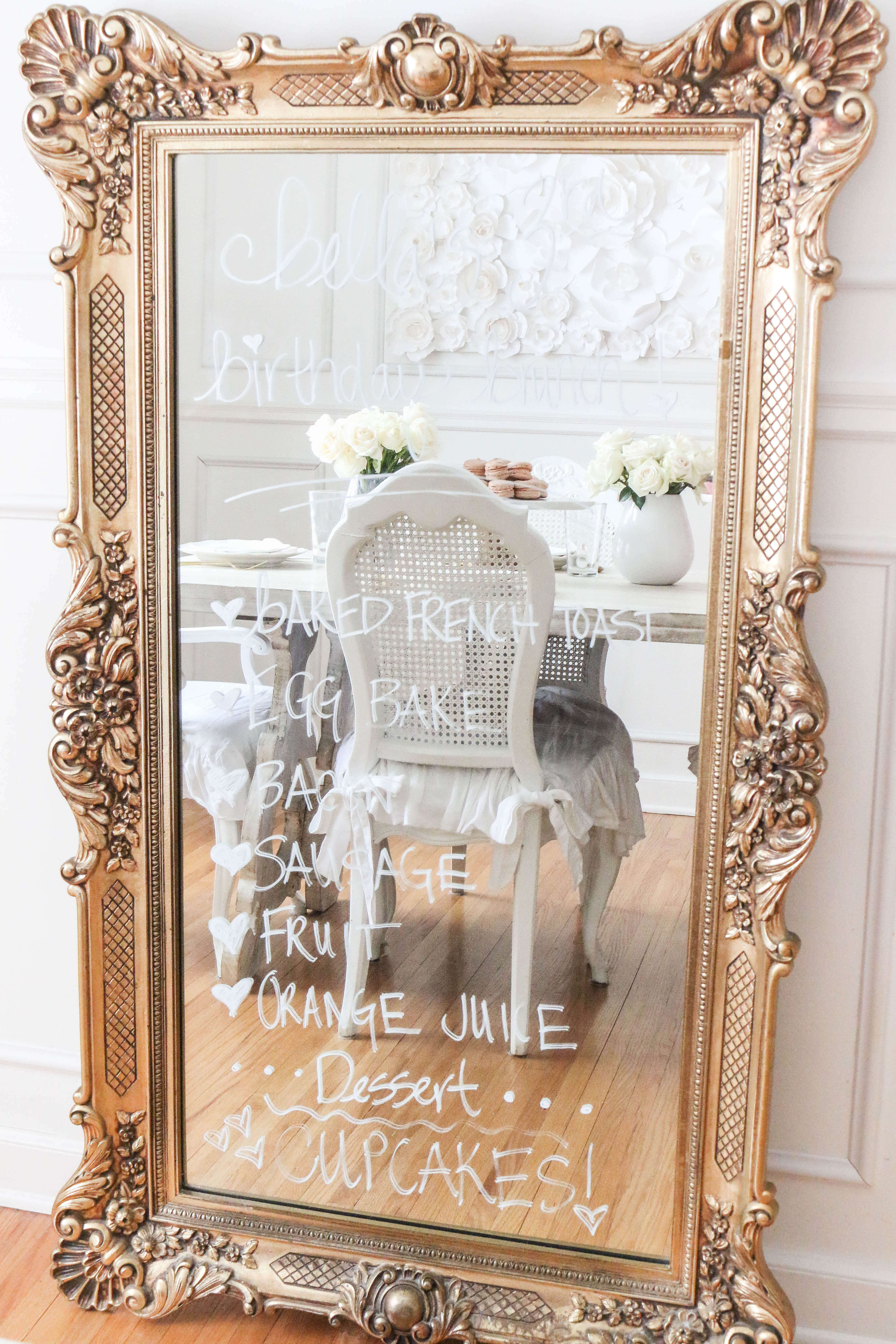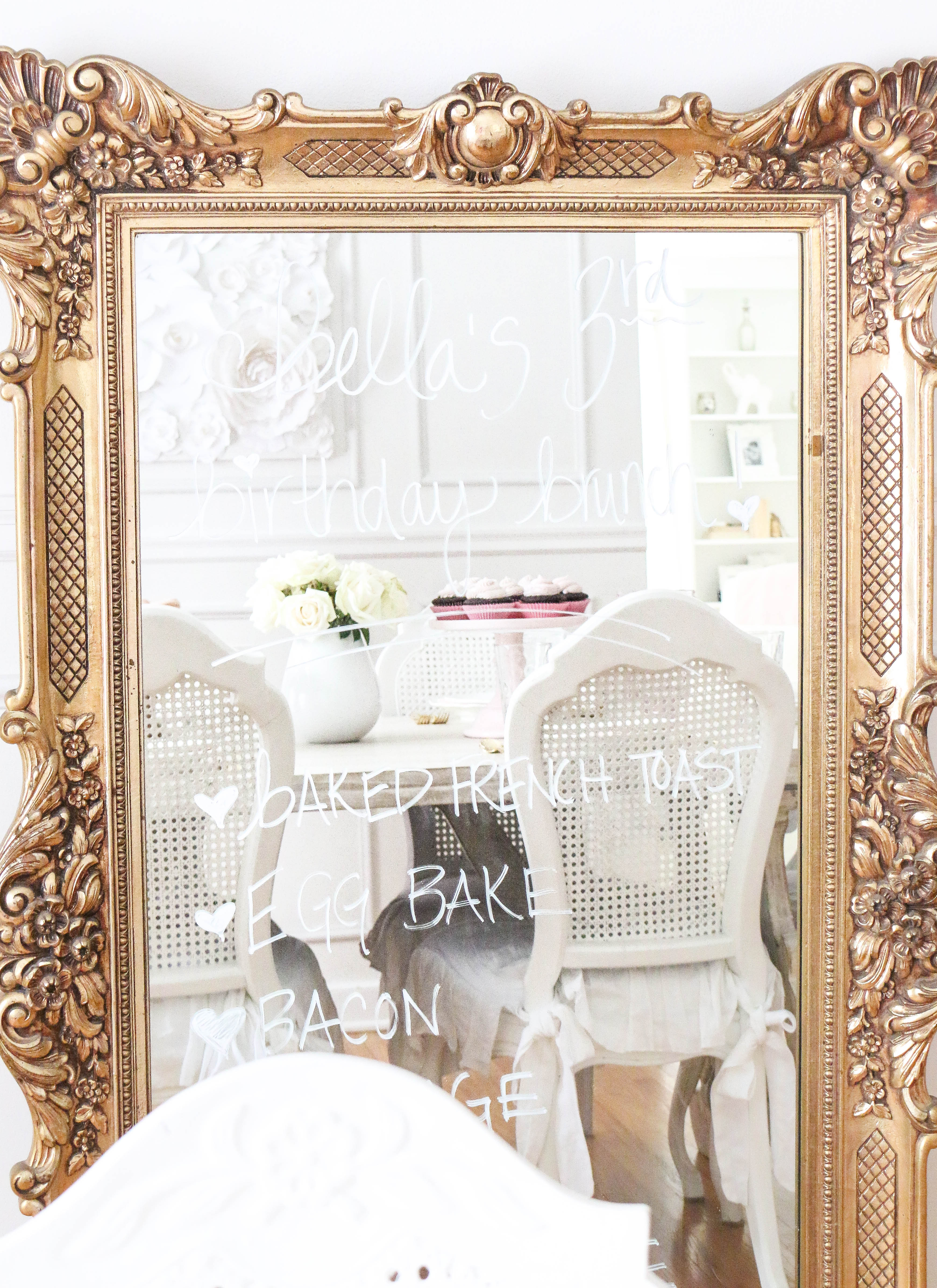 Here's the birthday brunch we threw for her with my family! We had baked french toast, egg bake, bacon, sausage and fruit oh....and cupcakes and macaroons (I tried my best for them to turnout) for dessert. Oops...you can read the menu on the mirror..hahaa! Bella had so much fun and loved having family around to celebrate with her!