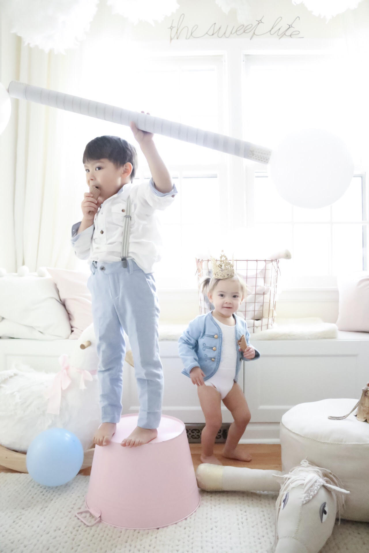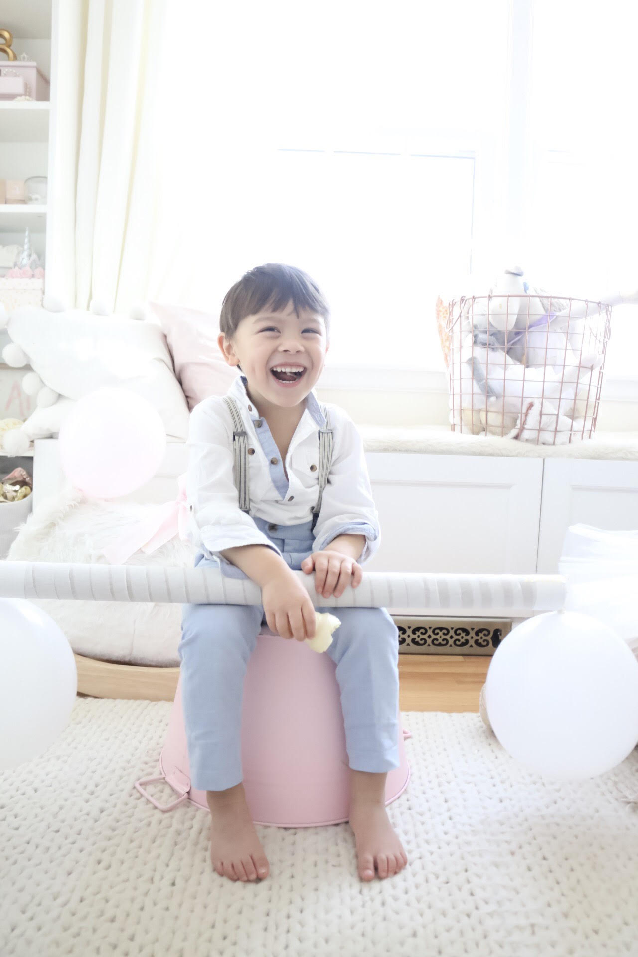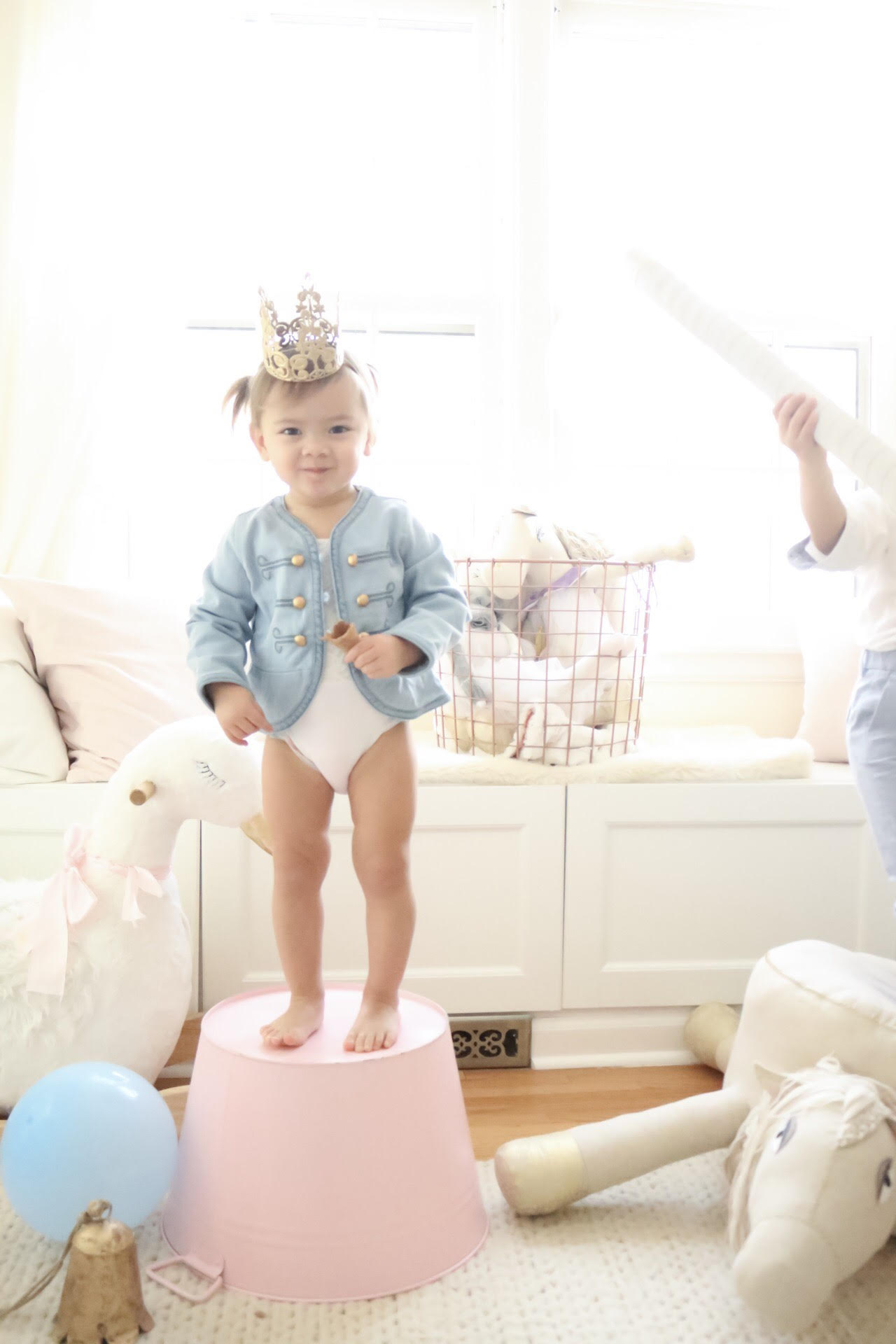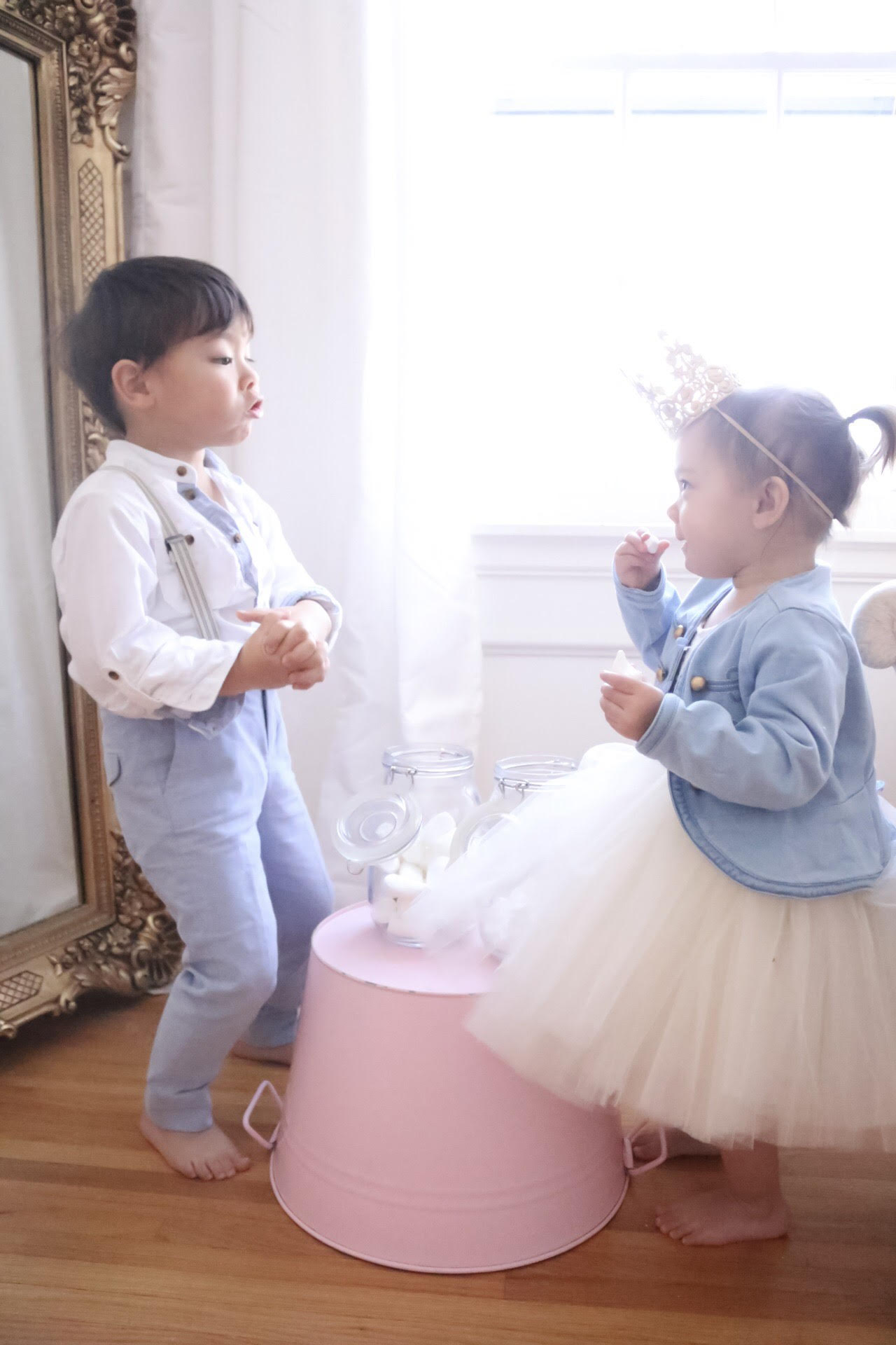 After a long holiday, we decided to start off the new year by having a circus party. We collected some of their animals and put them into wired baskets. I made a barbell out of a cardboard tube from wrapping paper and covered it in white streamer paper. Then I connected two balloons with a ribbon. We turned on circus music, dance, played with balloons and animals and ate too much sugar.
