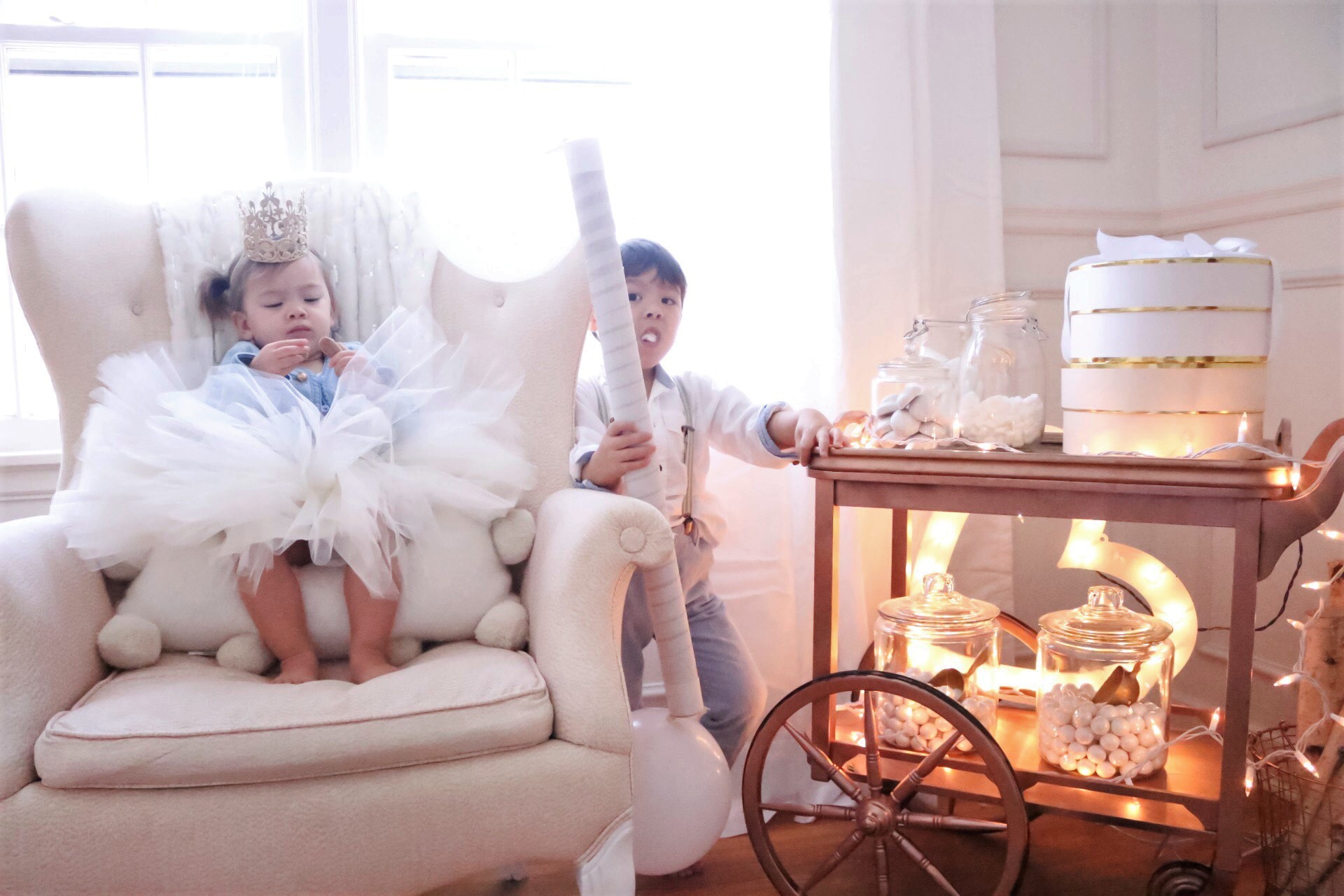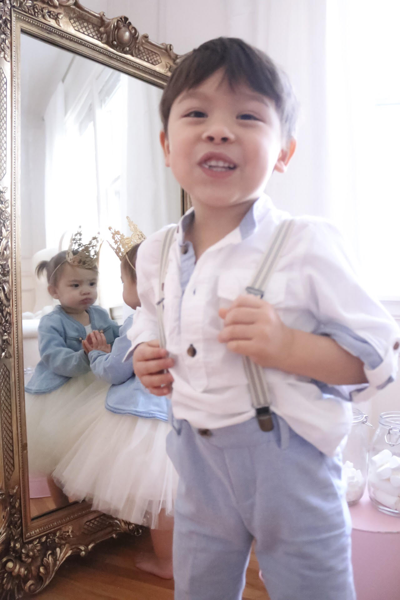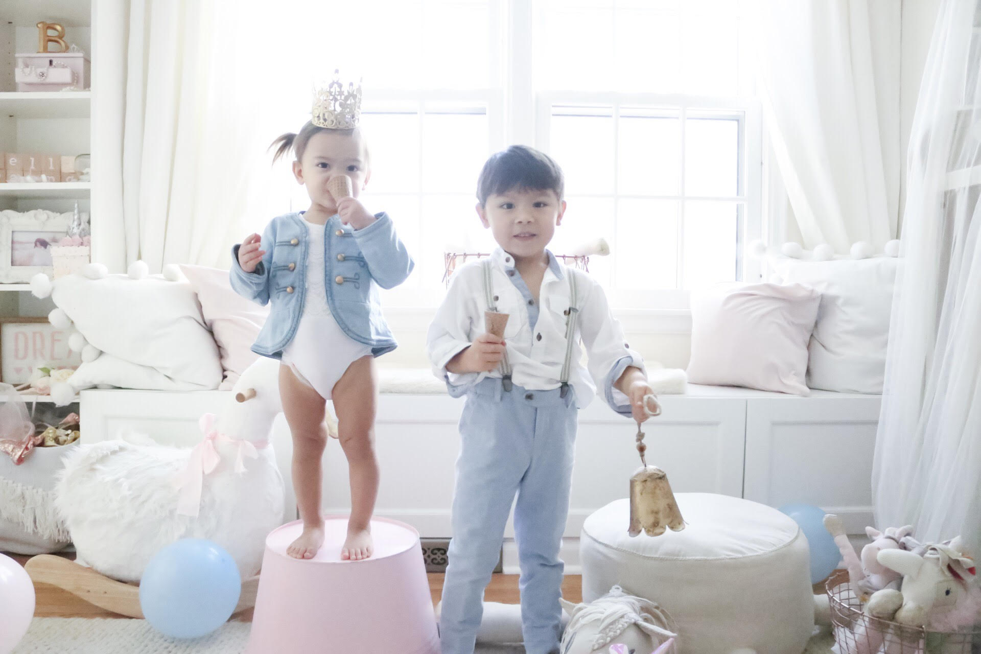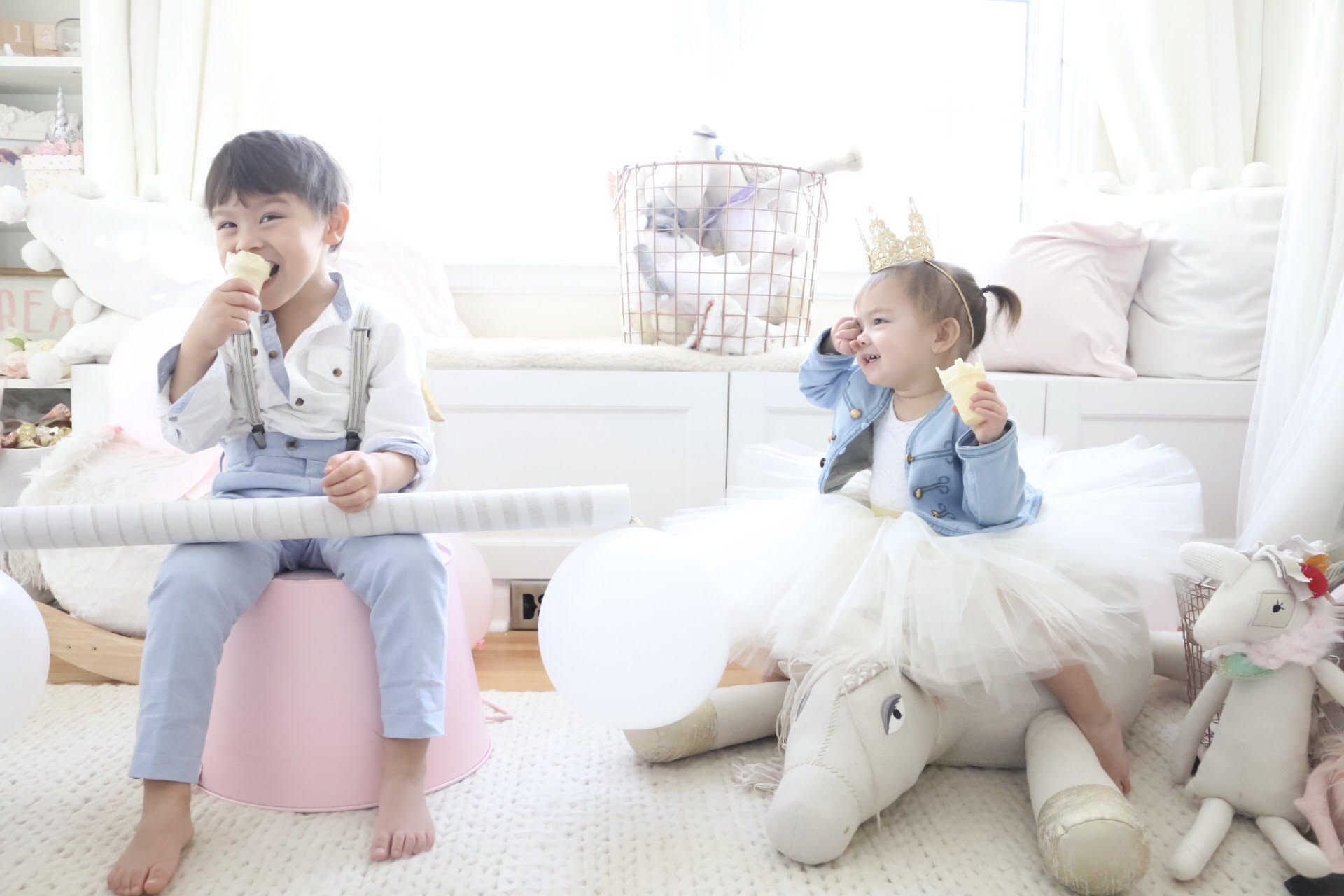 After a long holiday, we decided to start off the new year by having a circus party. We collected some of their animals and put them into wired baskets. I made a barbell out of a cardboard tube from wrapping paper and covered it in white streamer paper. Then I connected two balloons with a ribbon. We turned on circus music, dance, played with balloons and animals and ate too much sugar.