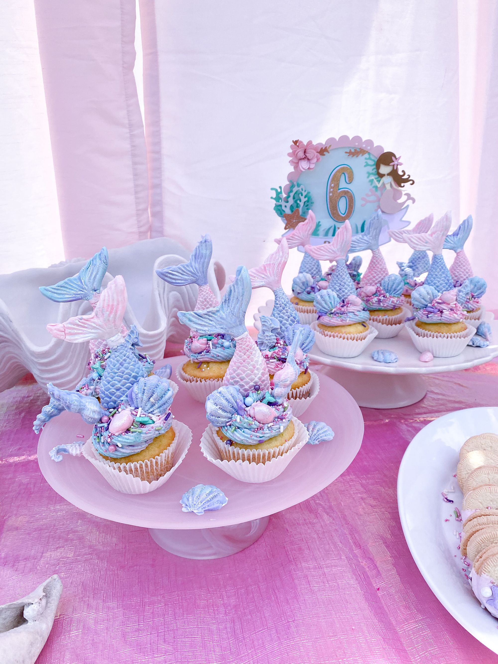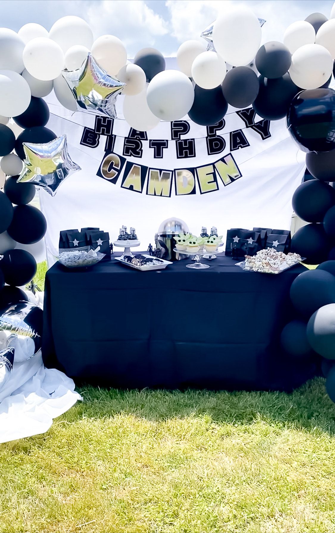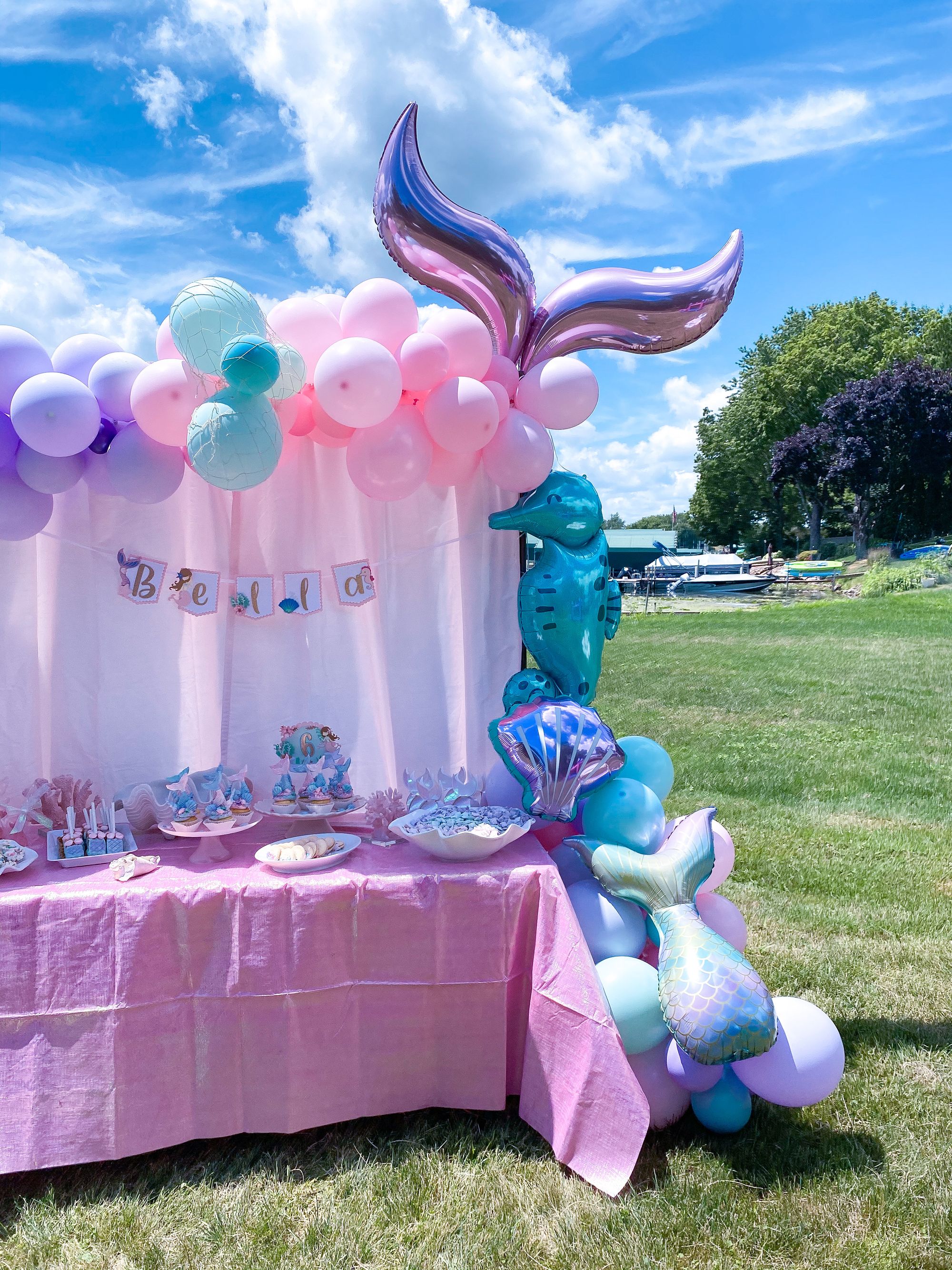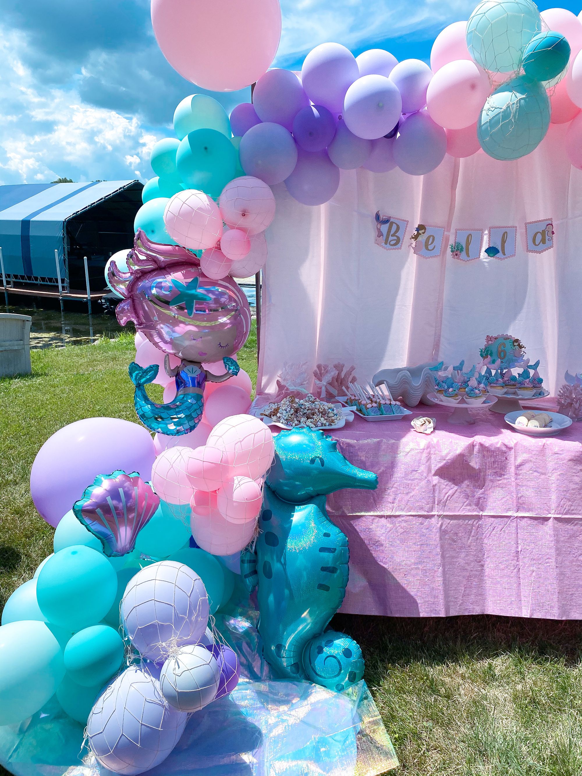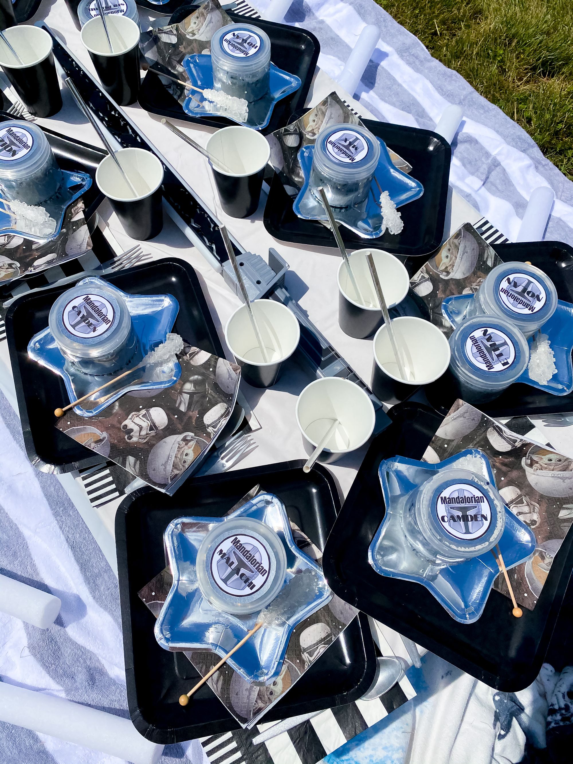 Camden loves Star Wars so he wanted a Mandalorian theme and Bella wanted a mermaid theme. Couldn't be more different but it was so fun to plan two different themes at the same time....as well as a ton of work! ;) I did all the treats, cupcakes, decor and balloon garlands myself and didn't hire out for anything, so it was a busy month beforehand!
