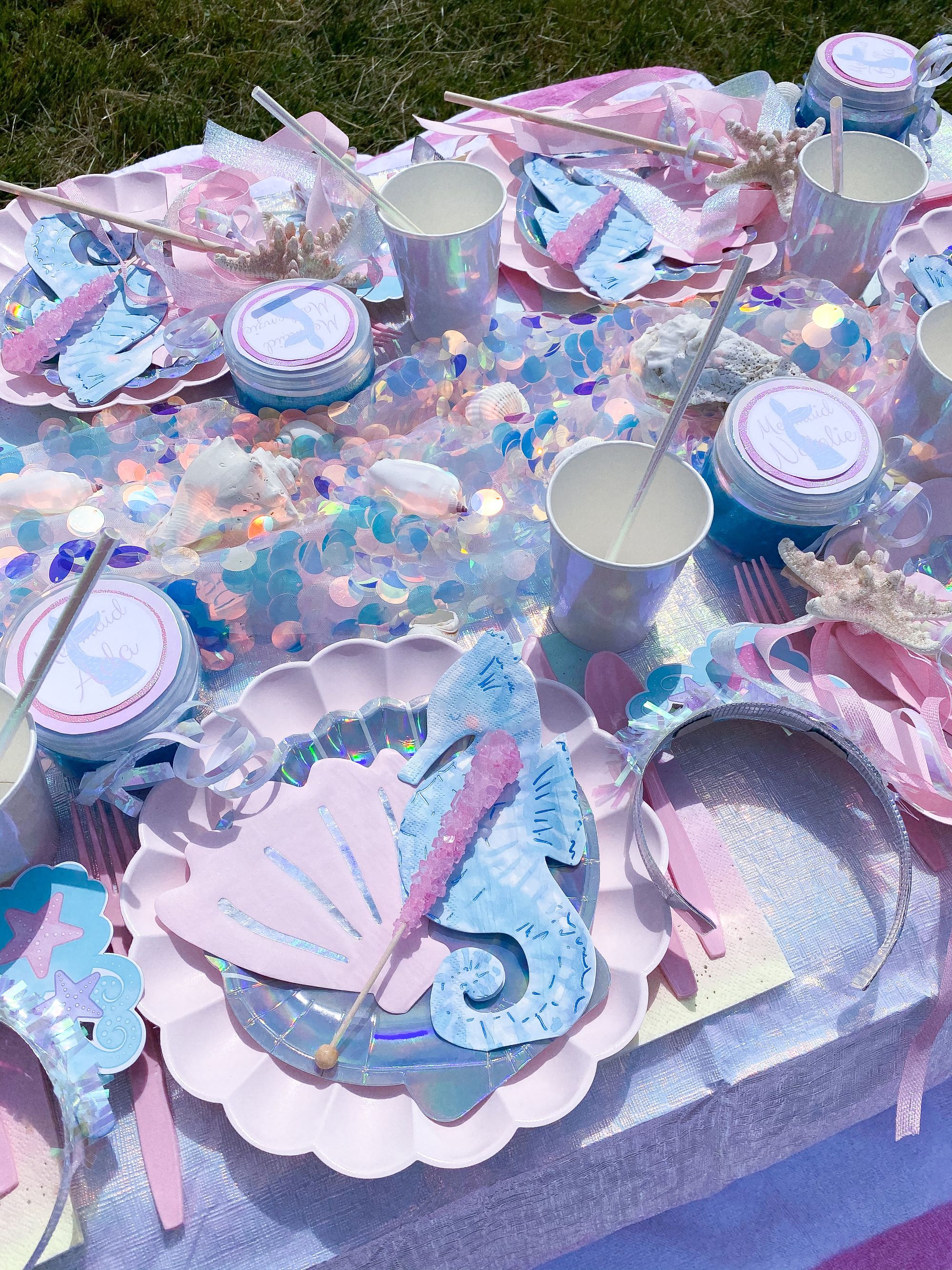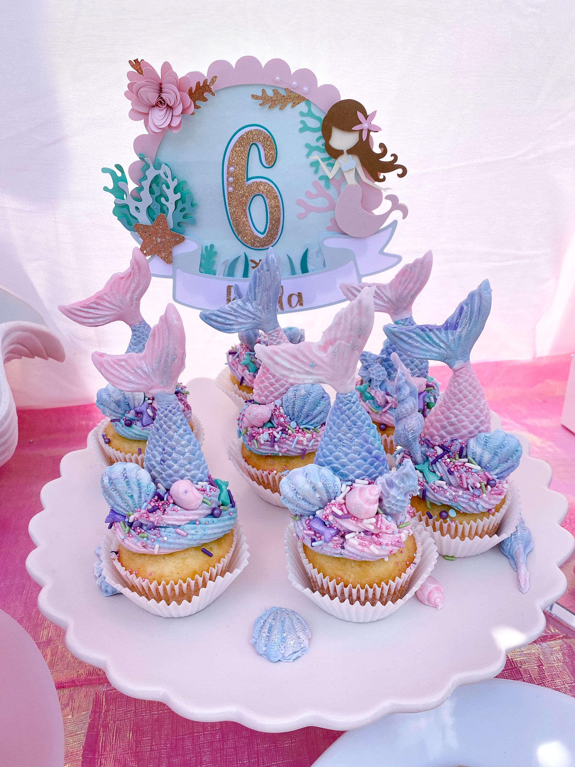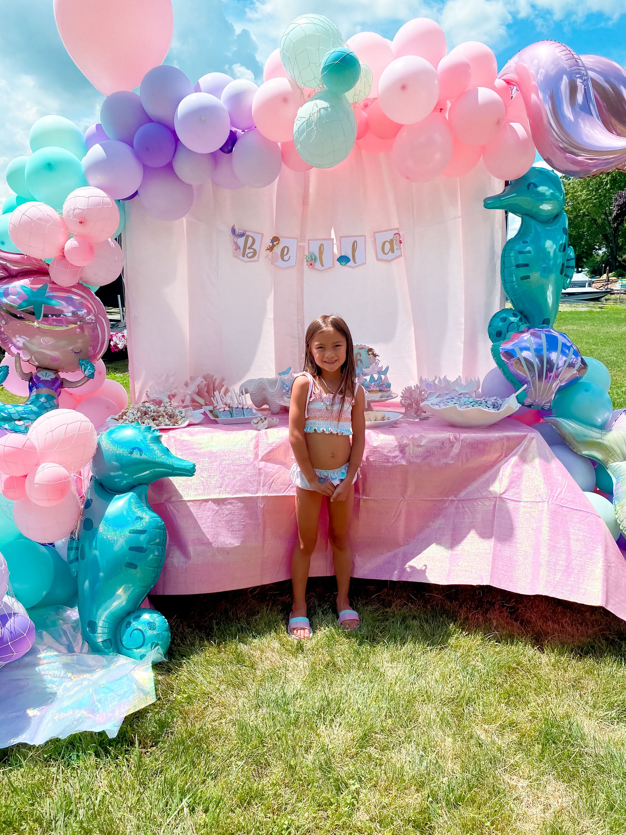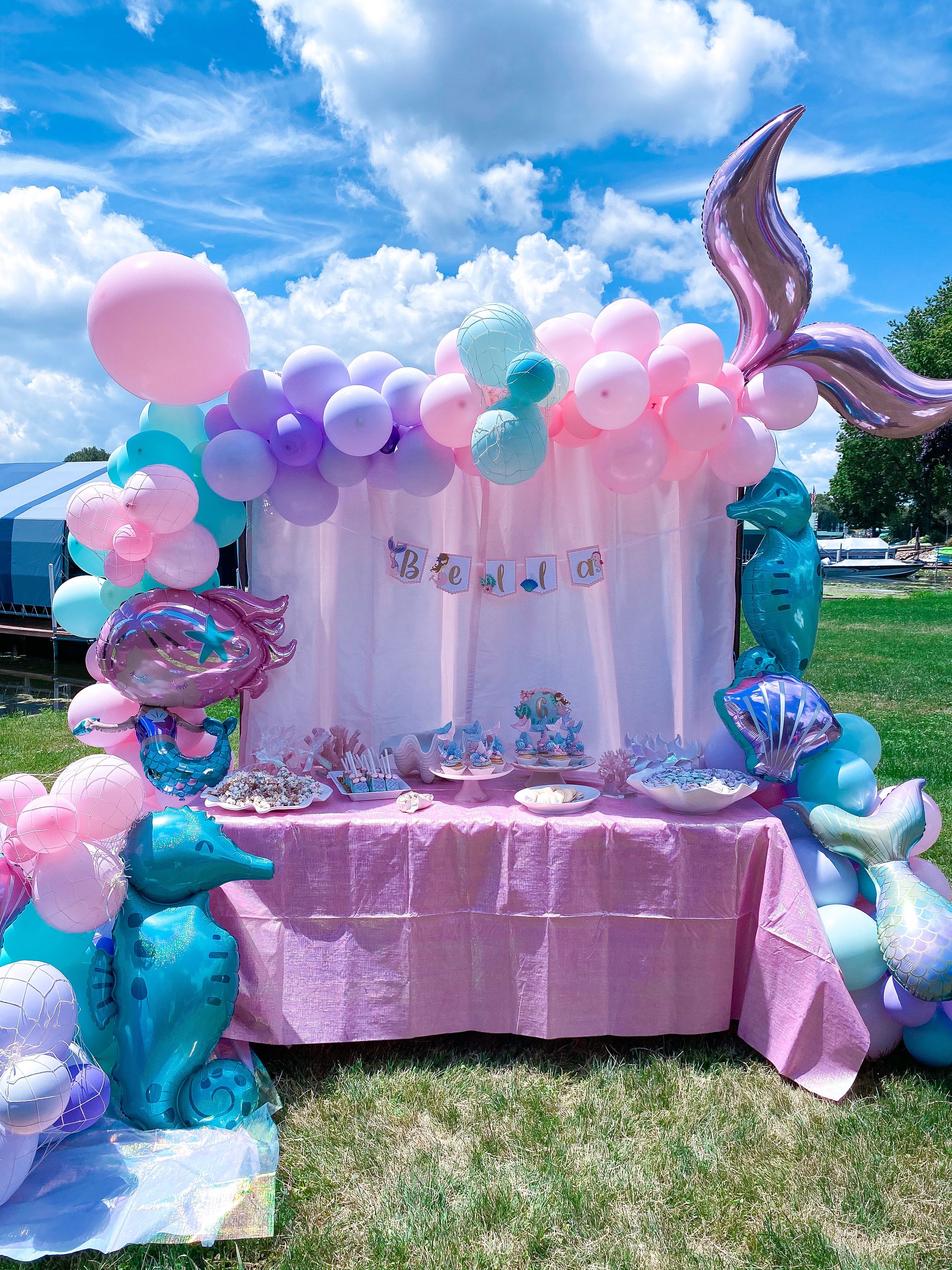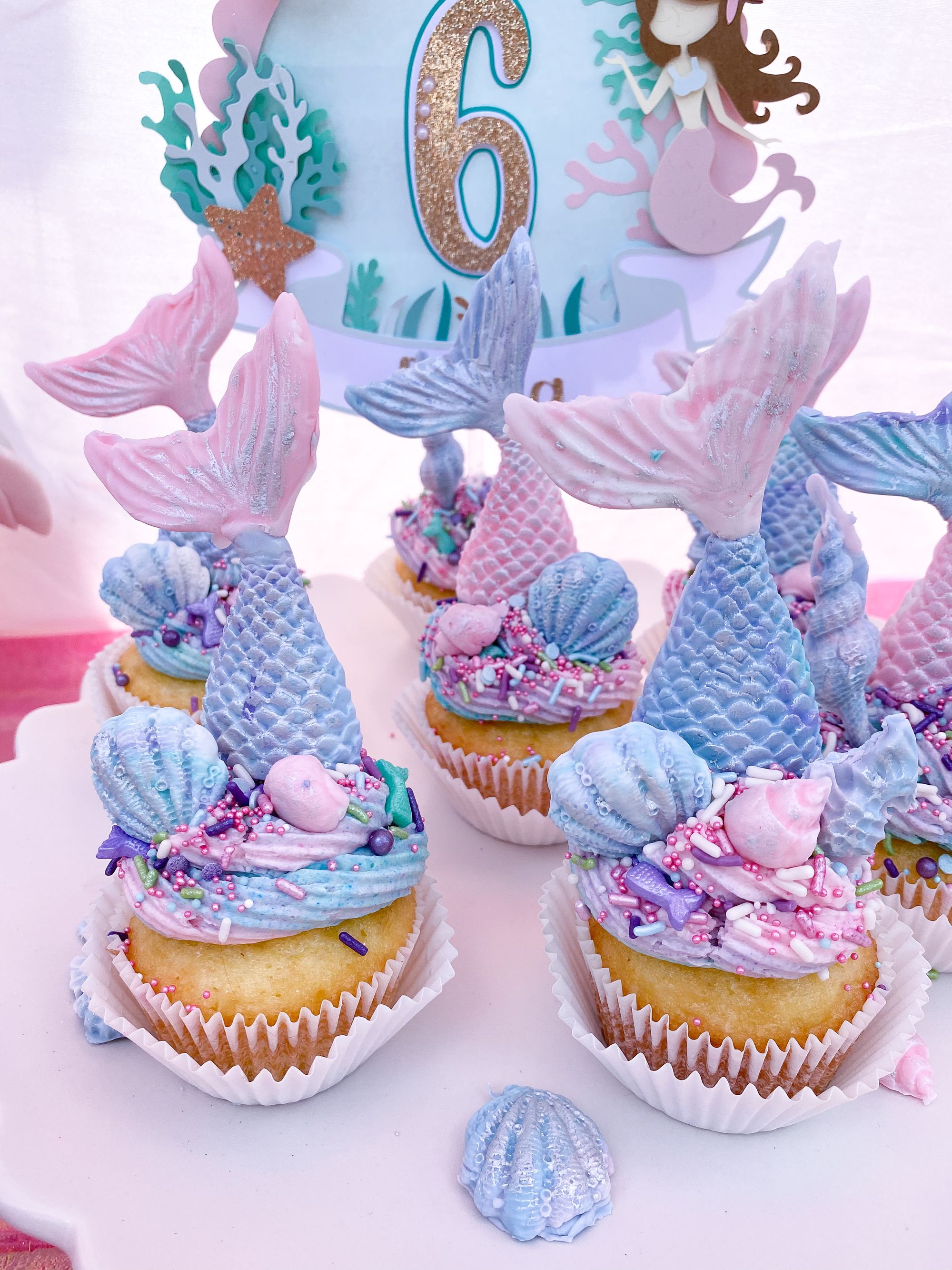 Camden loves Star Wars so he wanted a Mandalorian theme and Bella wanted a mermaid theme. Couldn't be more different but it was so fun to plan two different themes at the same time....as well as a ton of work! ;) I did all the treats, cupcakes, decor and balloon garlands myself and didn't hire out for anything, so it was a busy month beforehand!