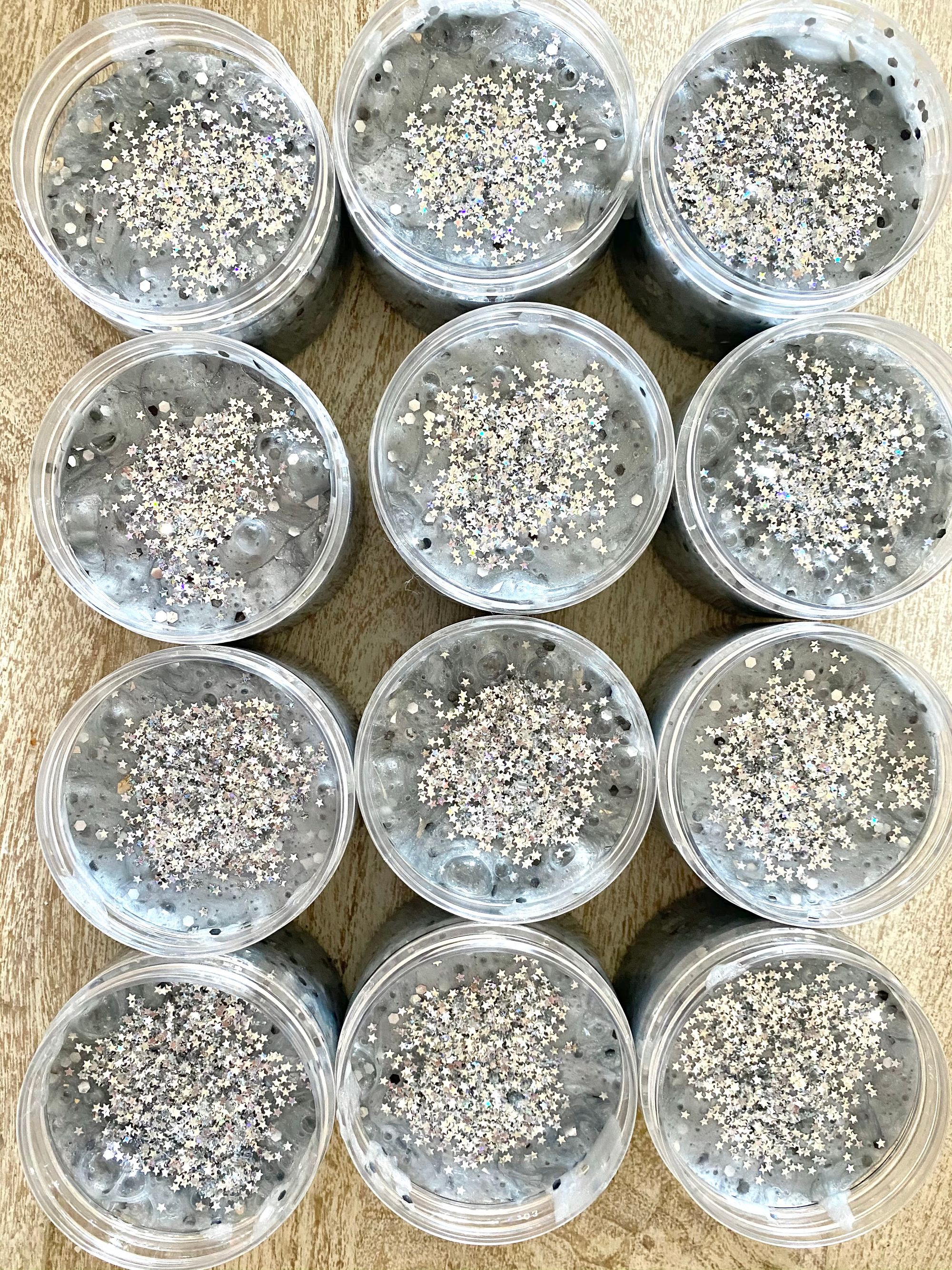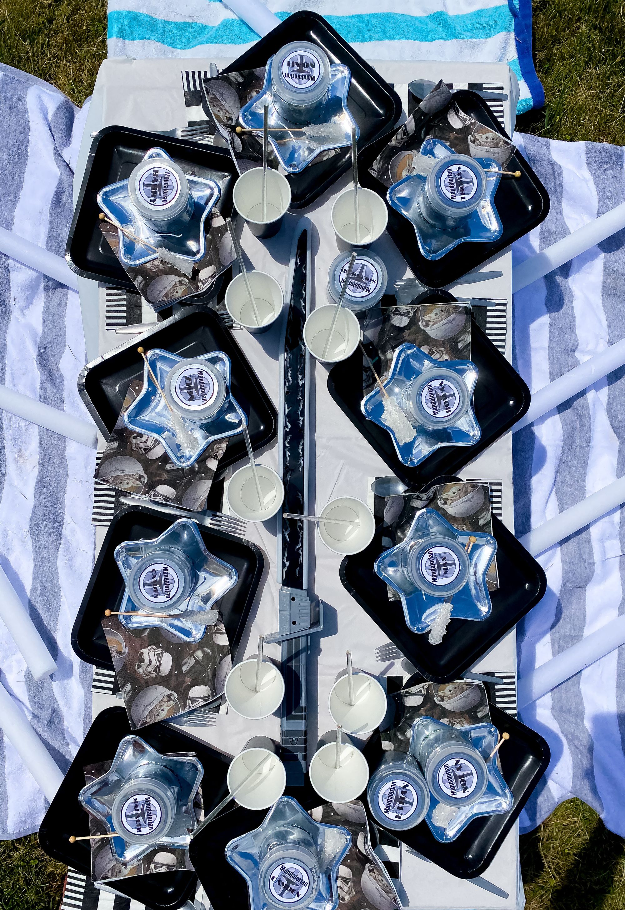 The boys table was full of star wars slime, light up foam light sabers and in their giftbags they got star wars light saber bubbles, star wars tattoos, rubix cubes and some candy!