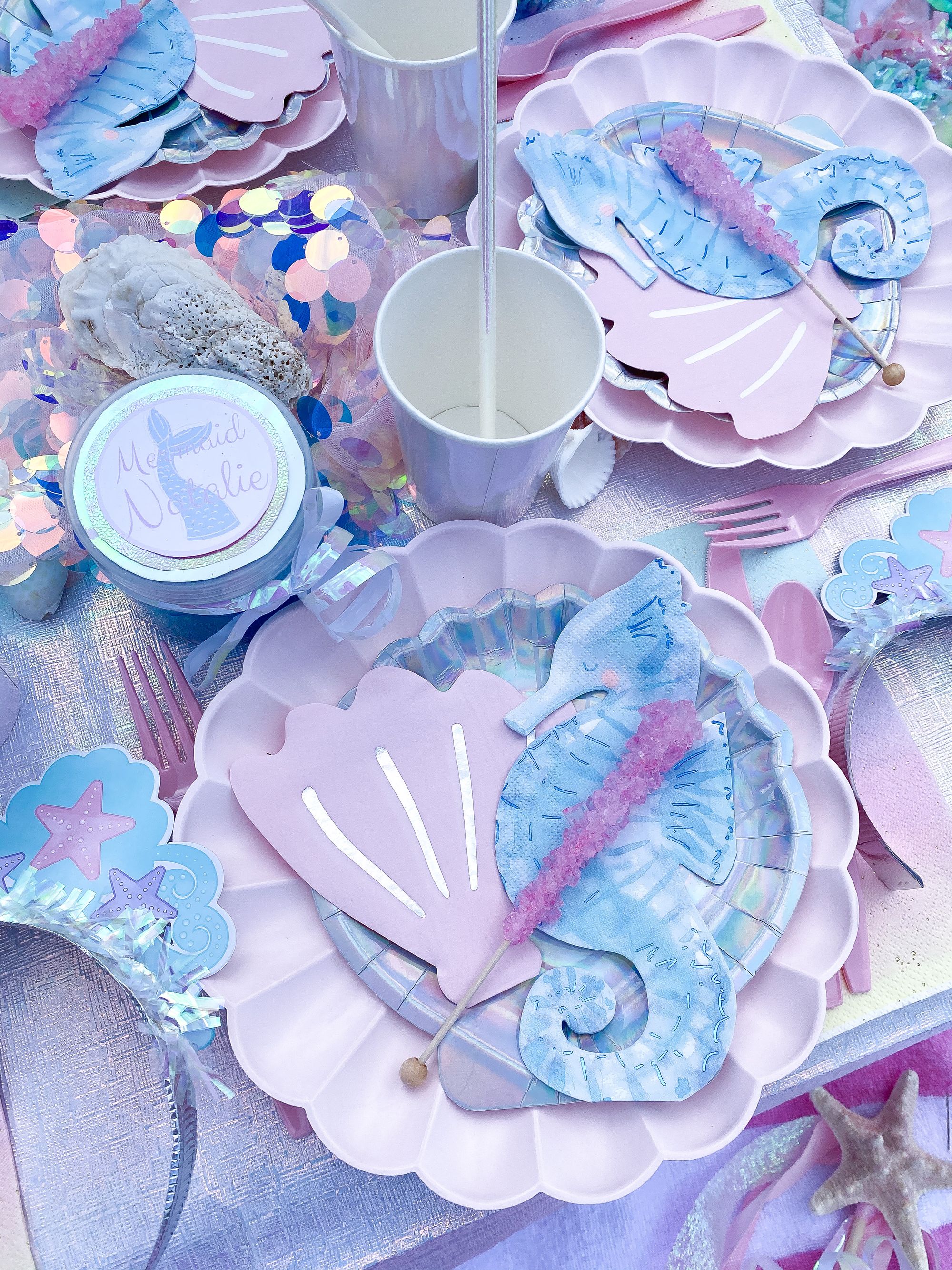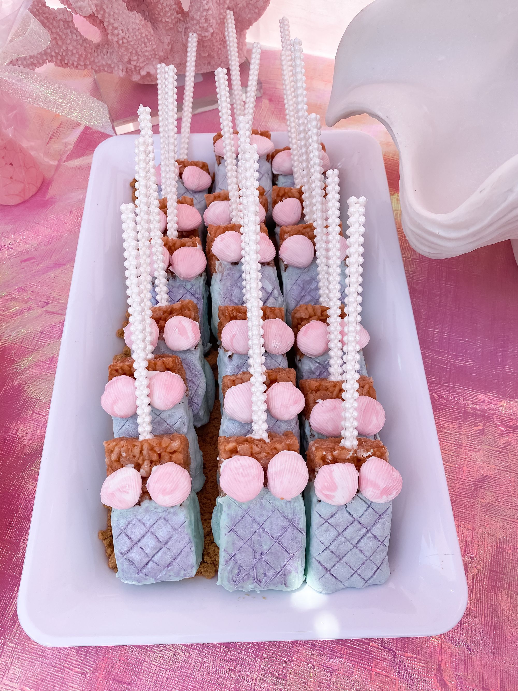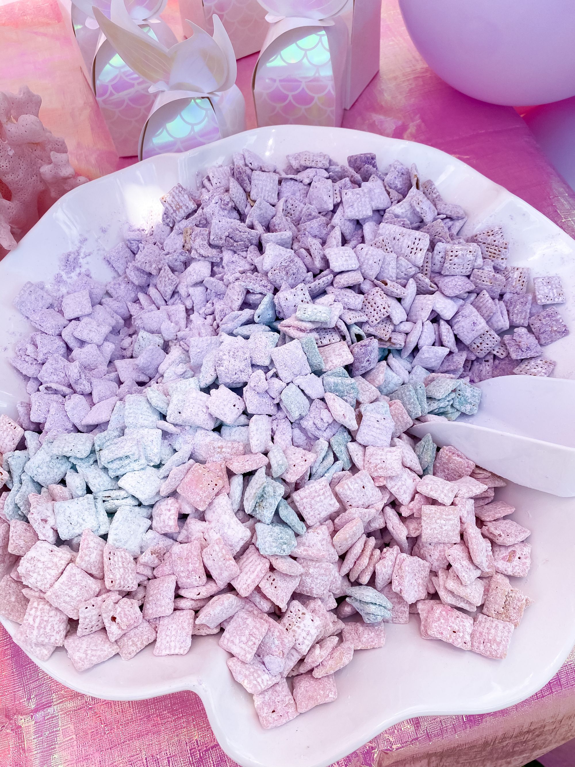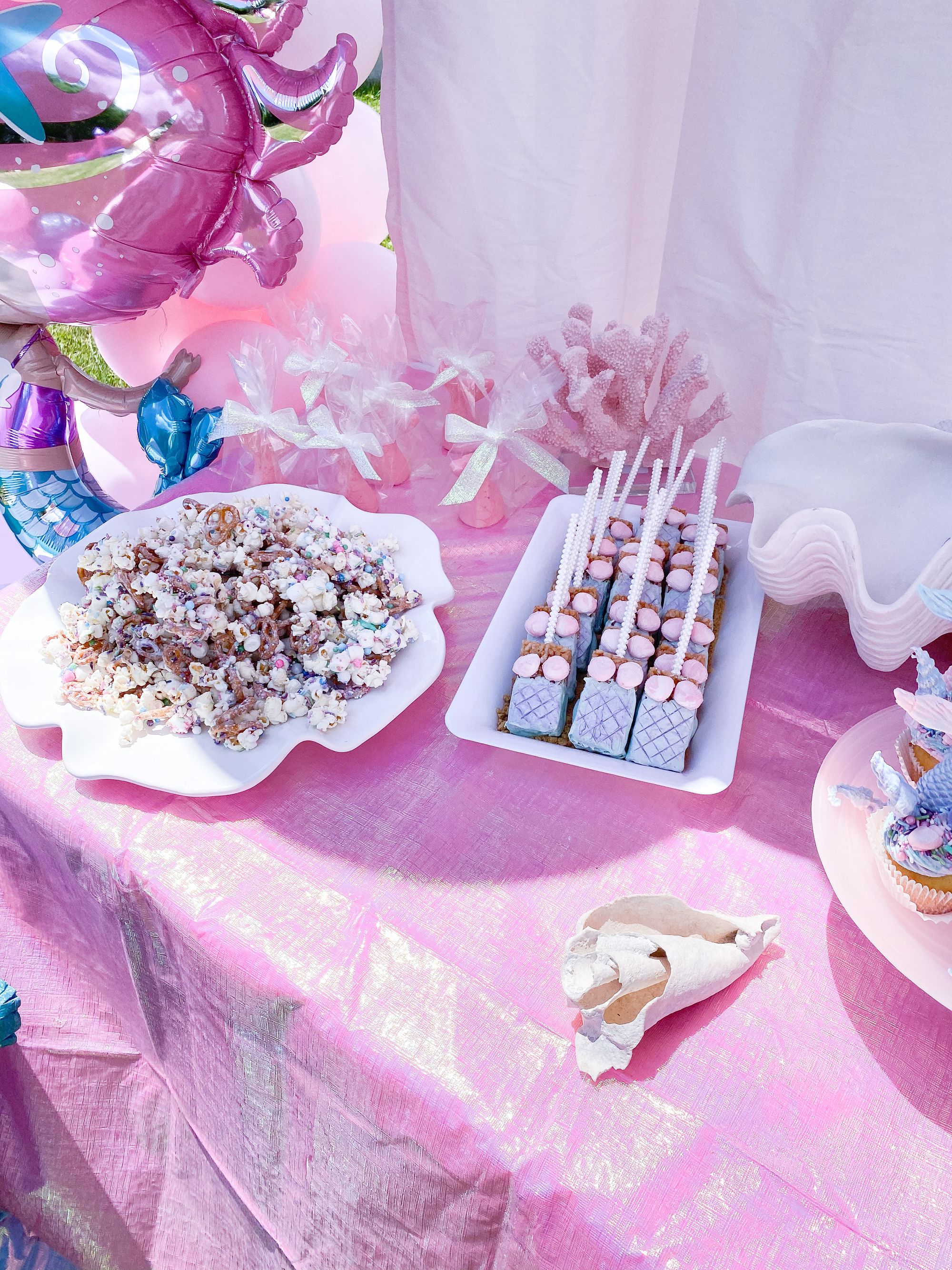 Let's start with Bella's mermaid party! Her table was so fun to create! I made all the desserts and not only were they super cute...they were just as yummy! How about that mermaid puppy chow or the mermaid rice krispies?!!!