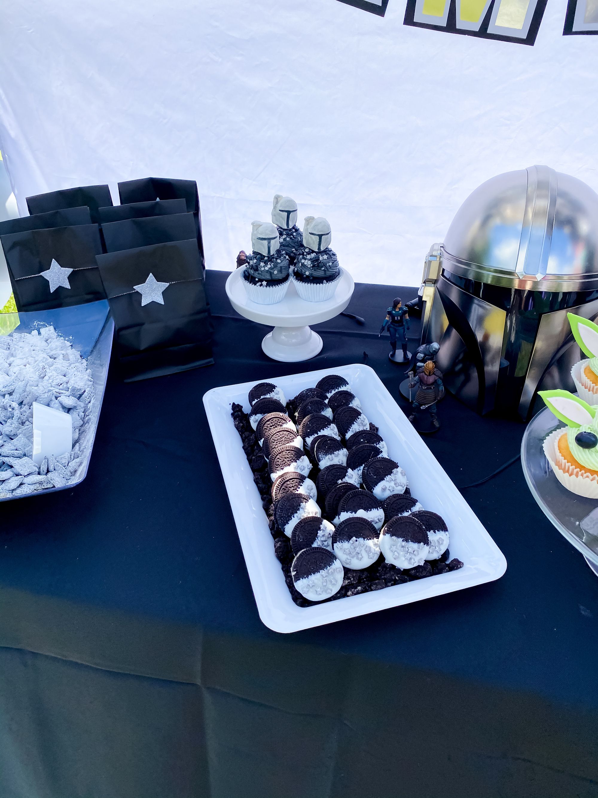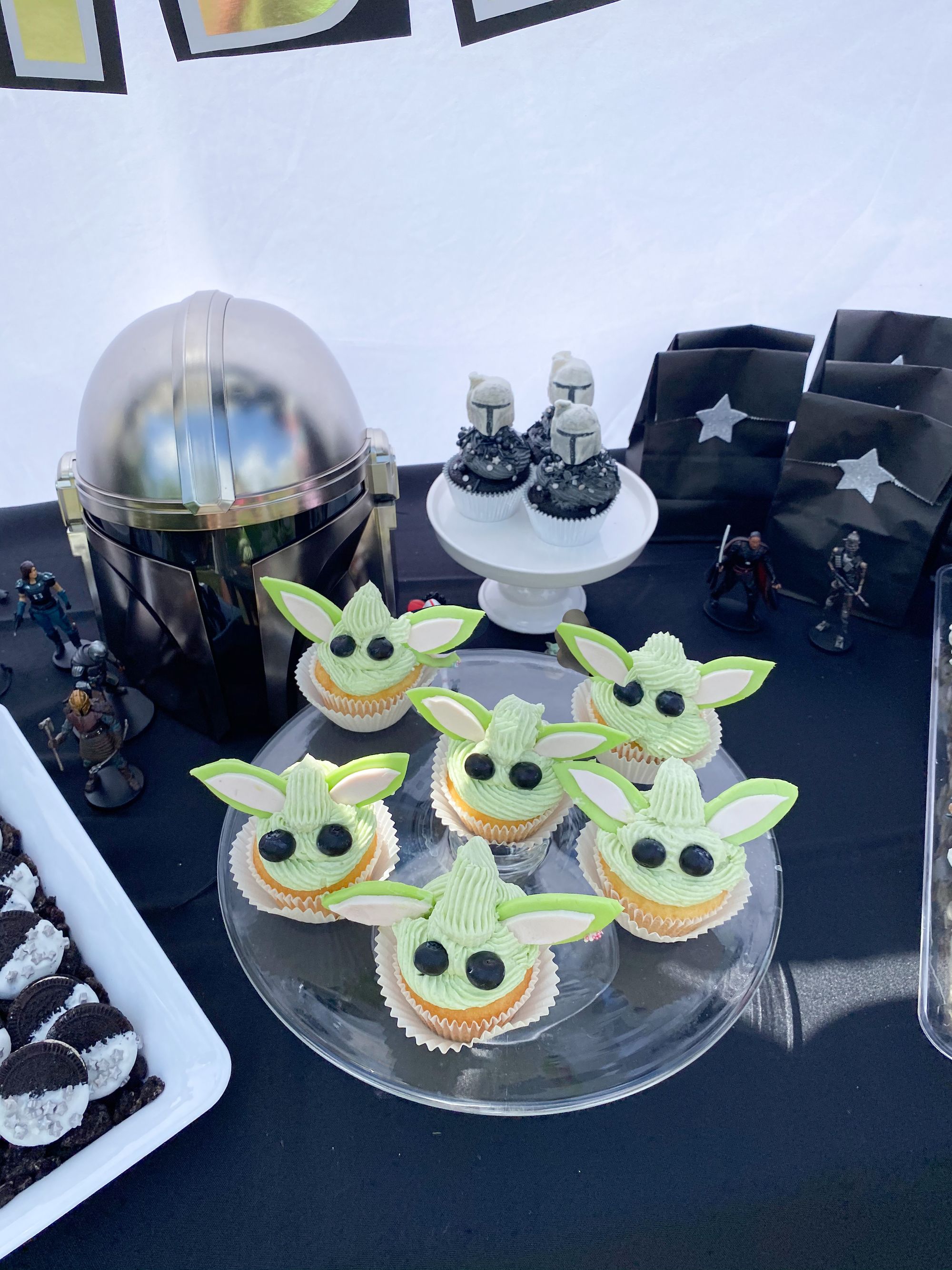 Camden's Mandalorian party was so fun to create! The baby Yoda cupcakes and star wars puppy chow were my favorite desserts!