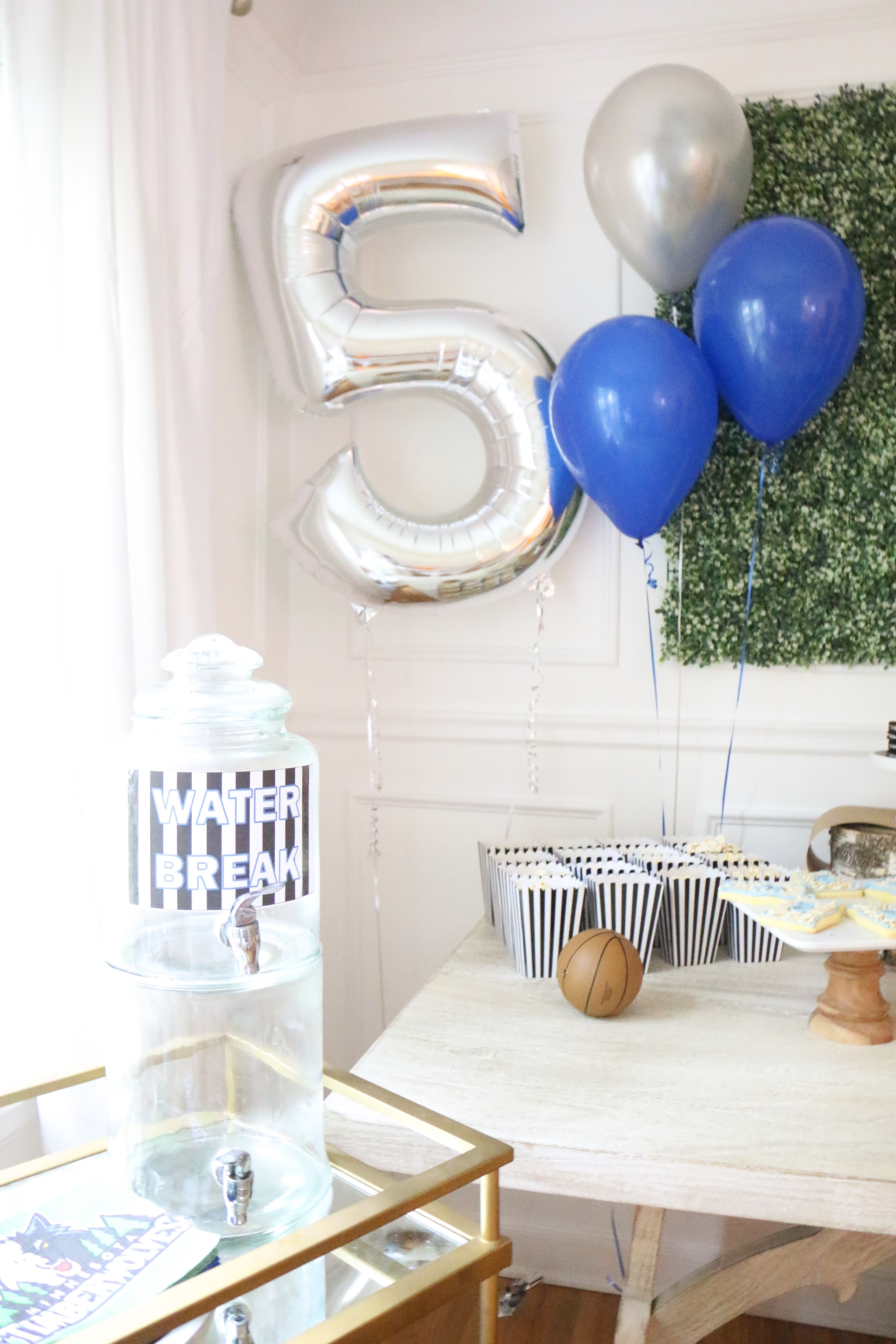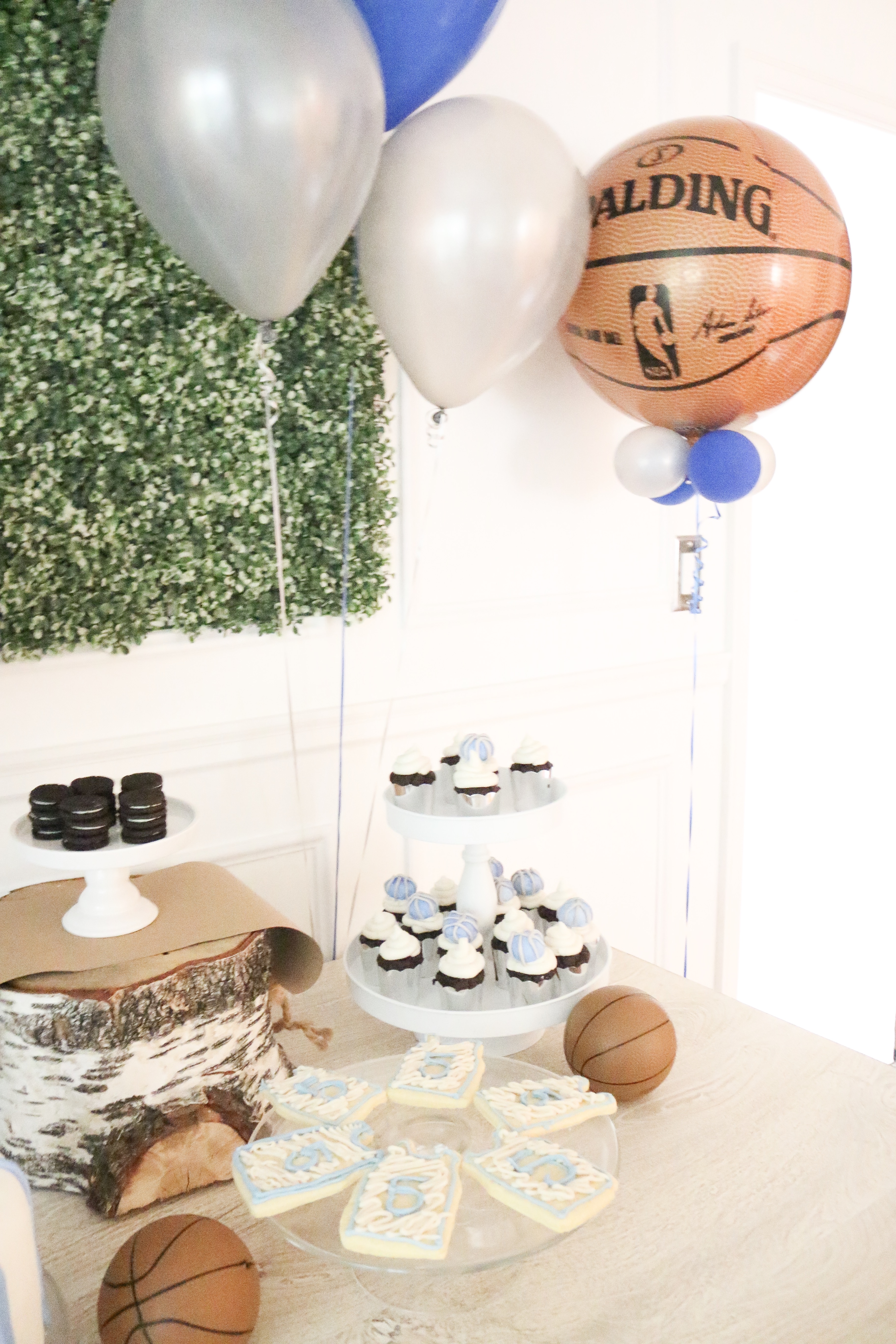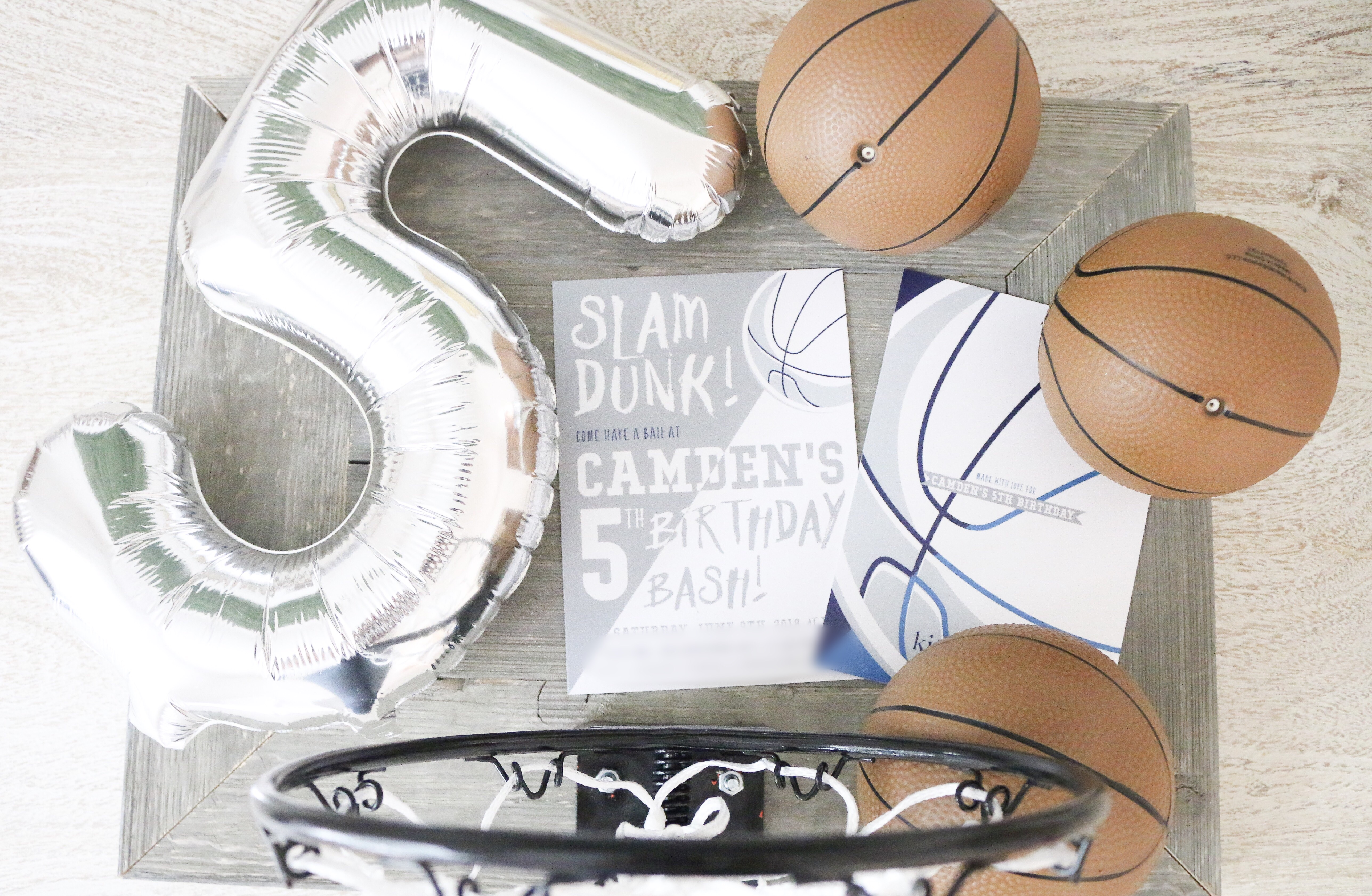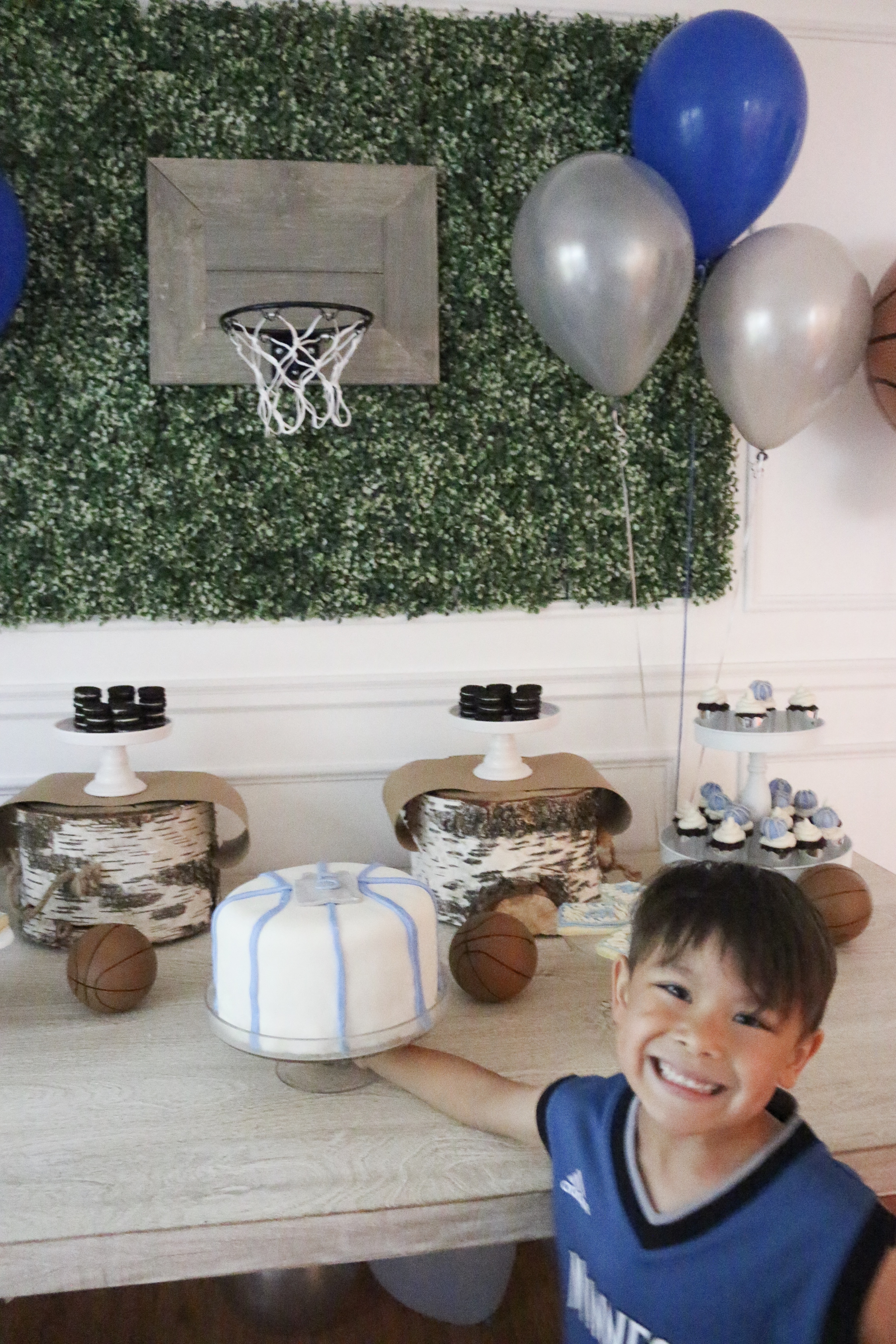 I'm finally posting photos from Camden's 5th birthday! He chose to have his favorite team and sport be the theme! Timberwolves Basketball! My favorite thing from his party was this rustic basketball hoop! It was used for his party and it's now hanging in his room!
