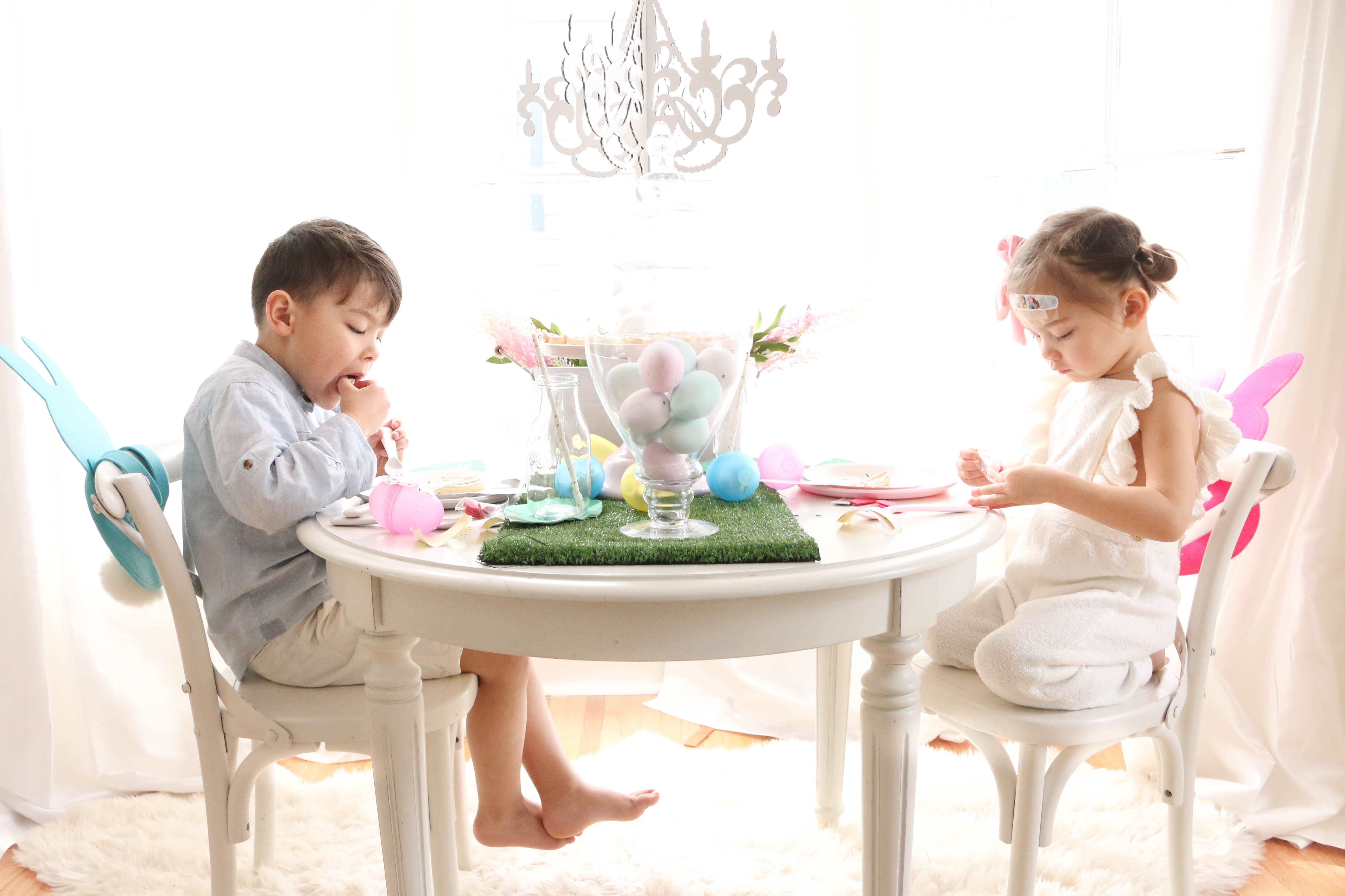 I can't believe that Easter is almost here! Today, I'm sharing a little Easter party I did for Camden and Bella. We made cookies the day before and then frosted them the next morning. I had a fun Easter craft for them to do while they ate their yummy cookies! They get so excited when I make things just a little more fun and special for them.