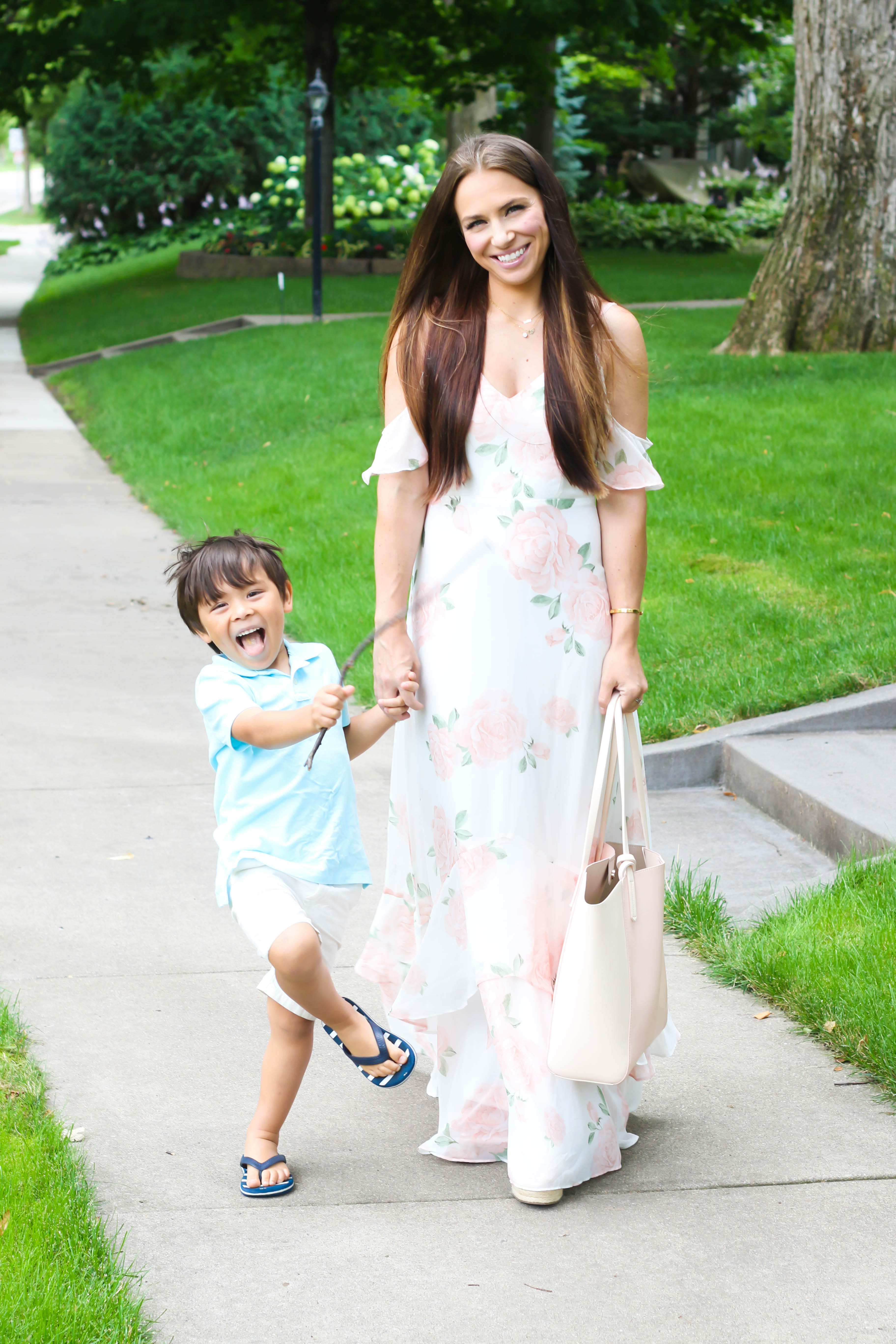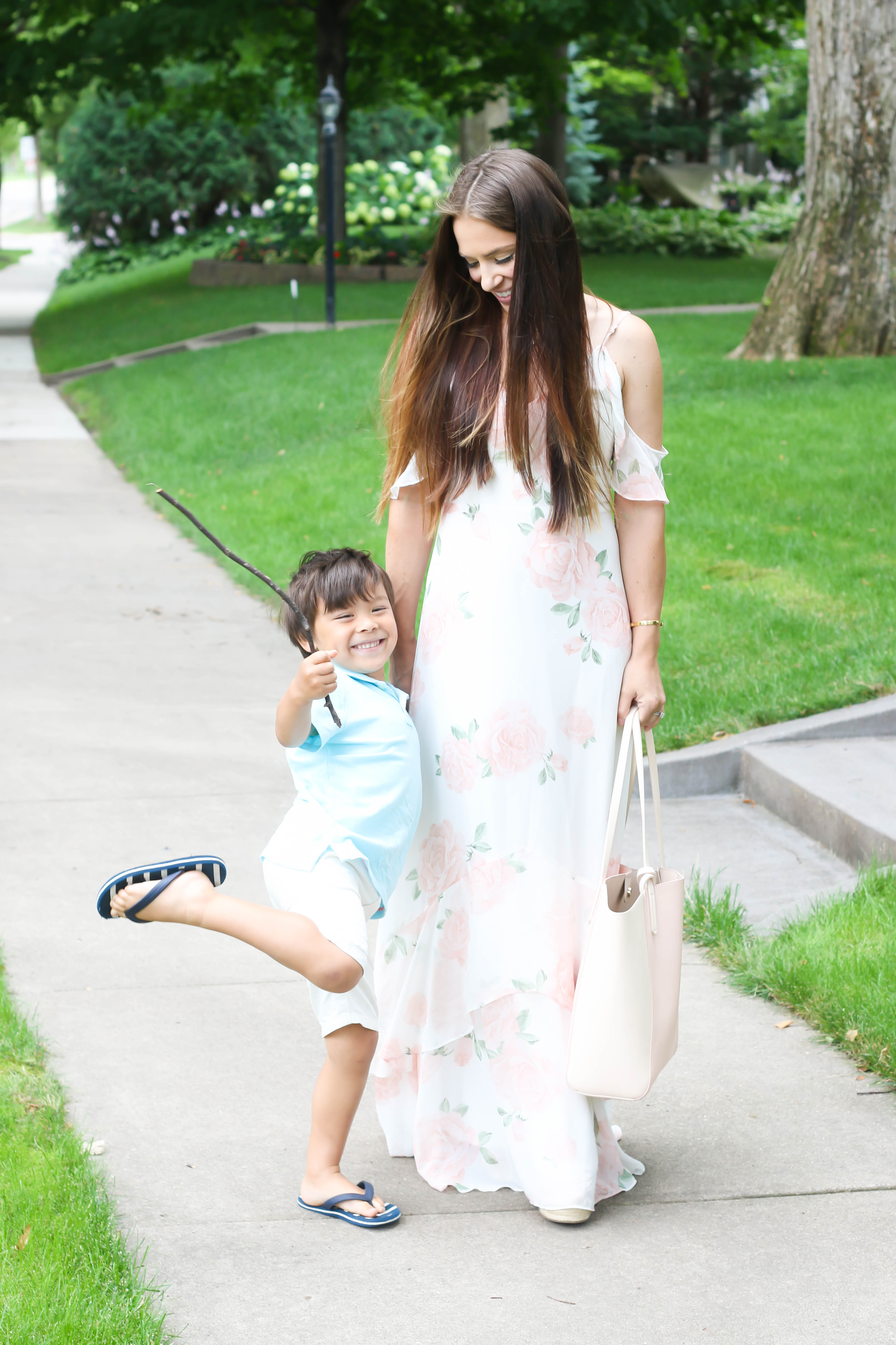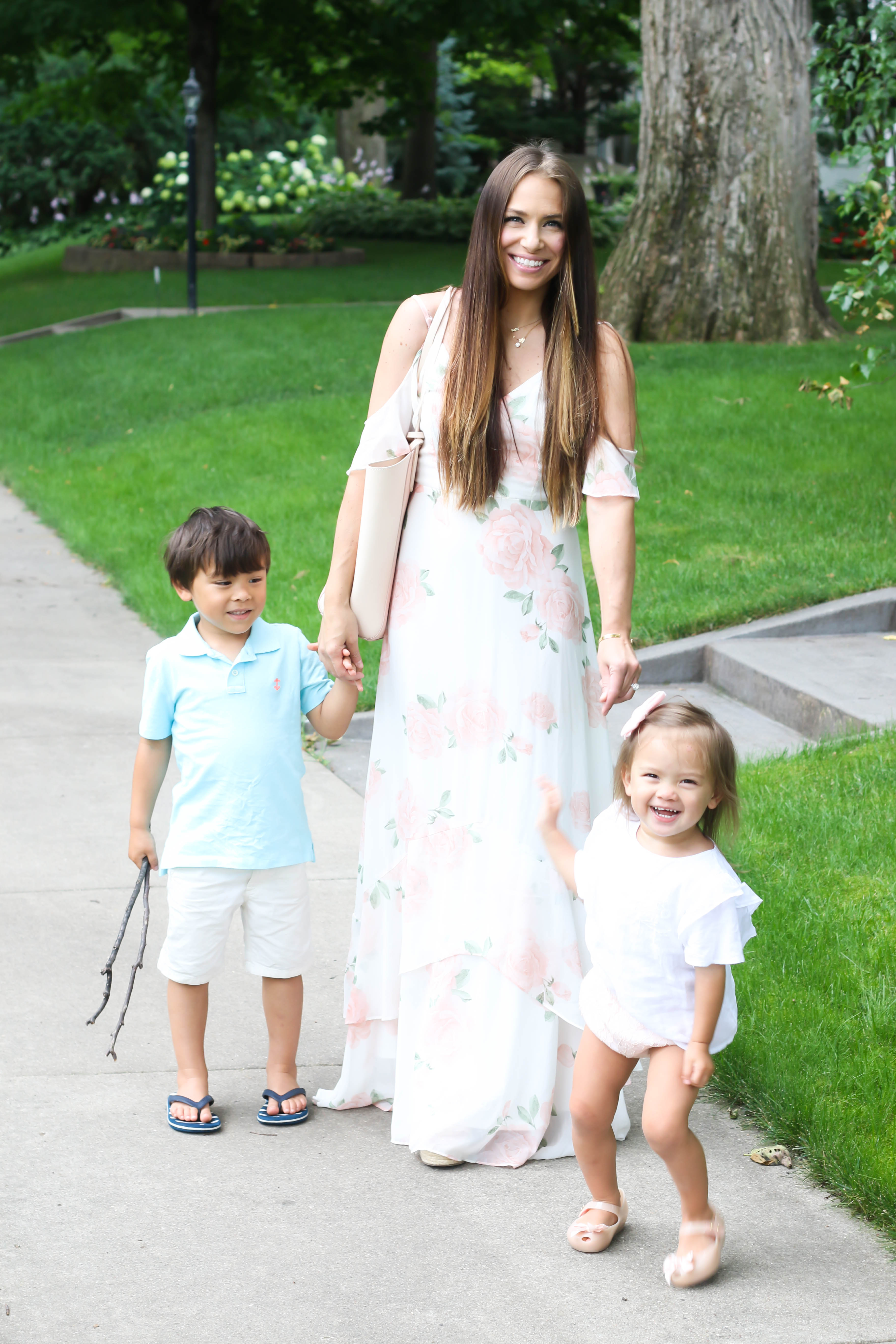 Happy Monday! Today, I'm sharing a look I wore to church yesterday! It was one of those mornings where we left for church and my hair was still wet. The mommy life, right?! The babies wanted to be in mommy's photos which always makes me so happy! I shared this dress back in the spring and it was a big hit. It has been restocked in many sizes and I also found an almost exact one at another store that has a pretty draping on the top! I shared all my outfit details below. I hope you have a wonderful week!