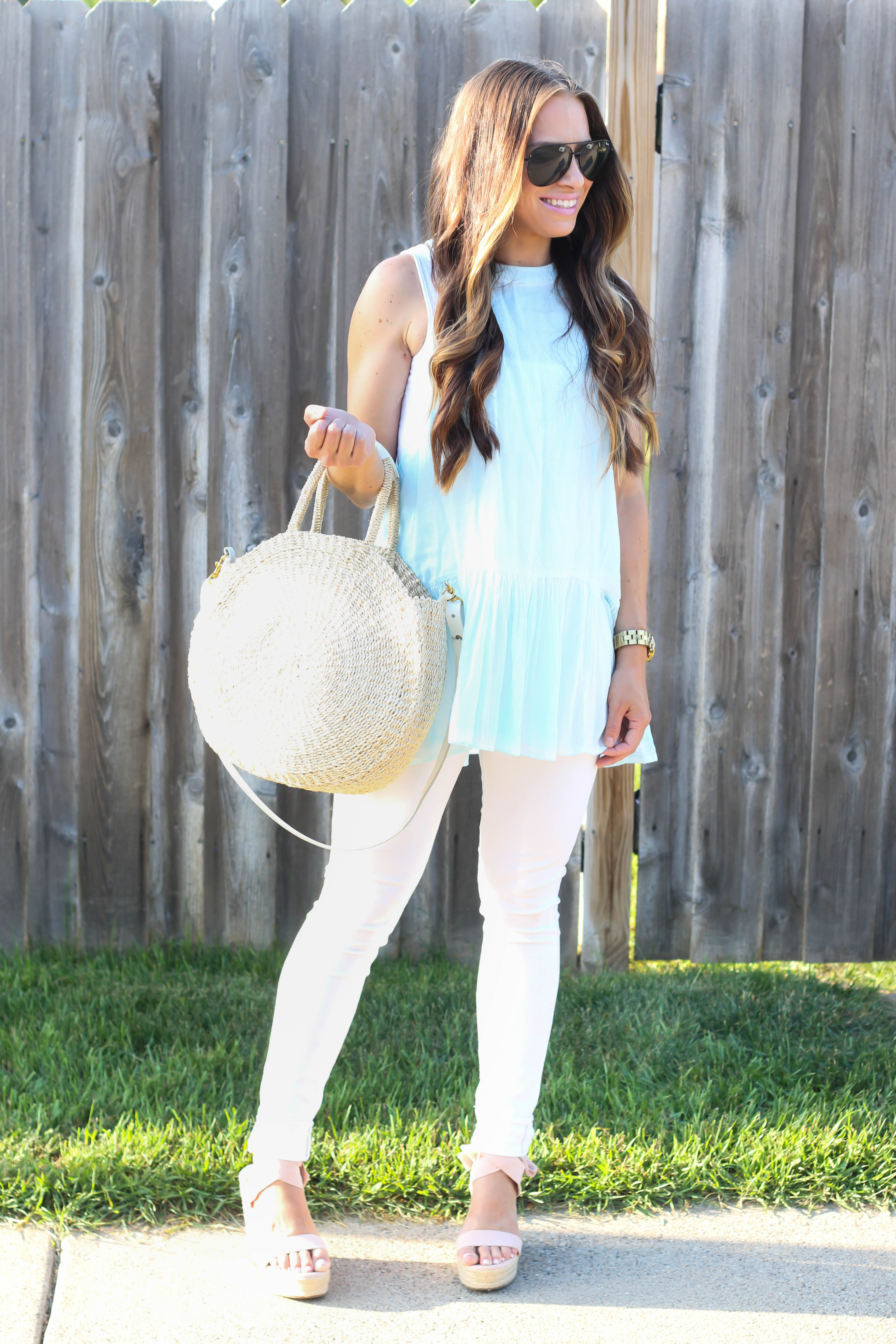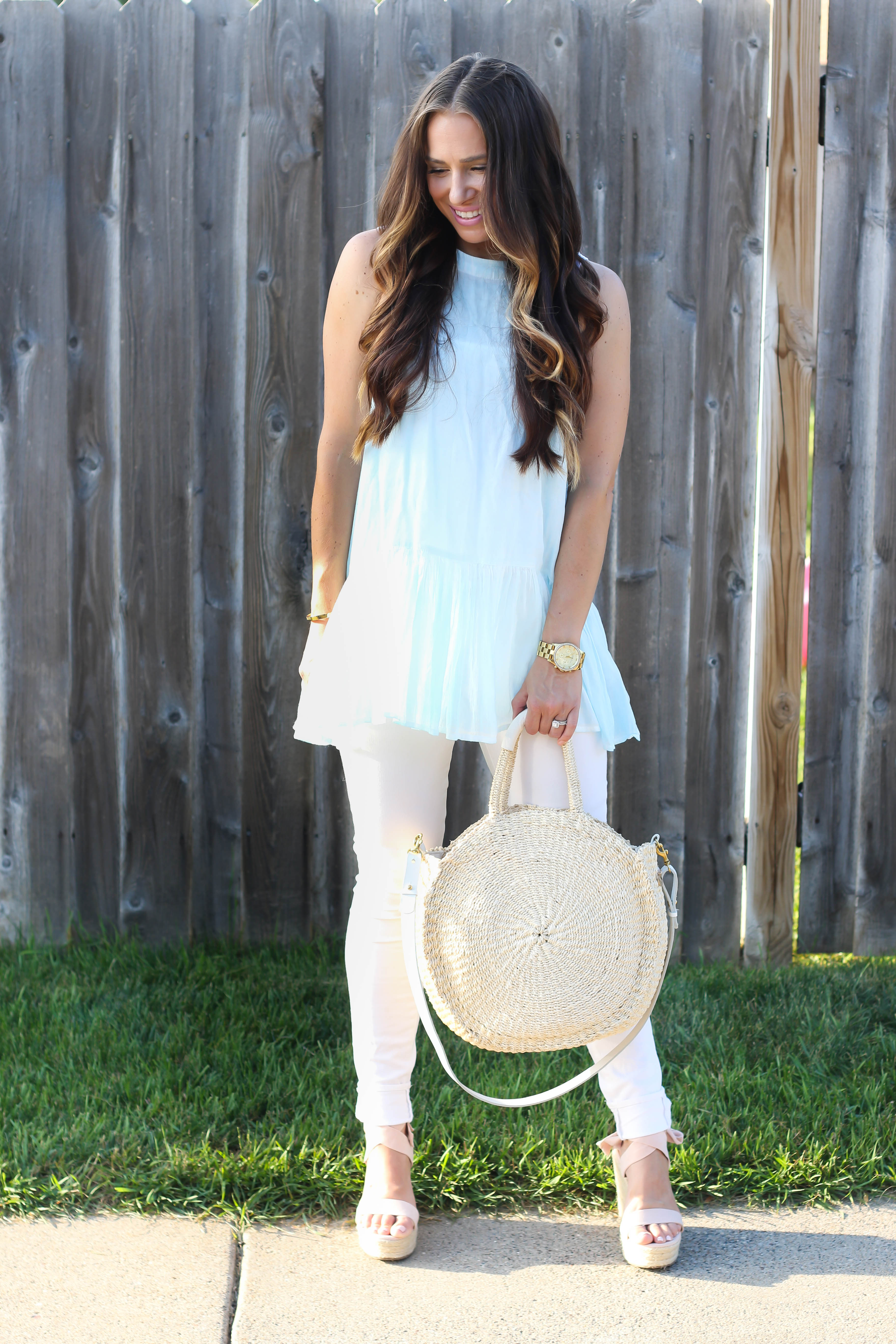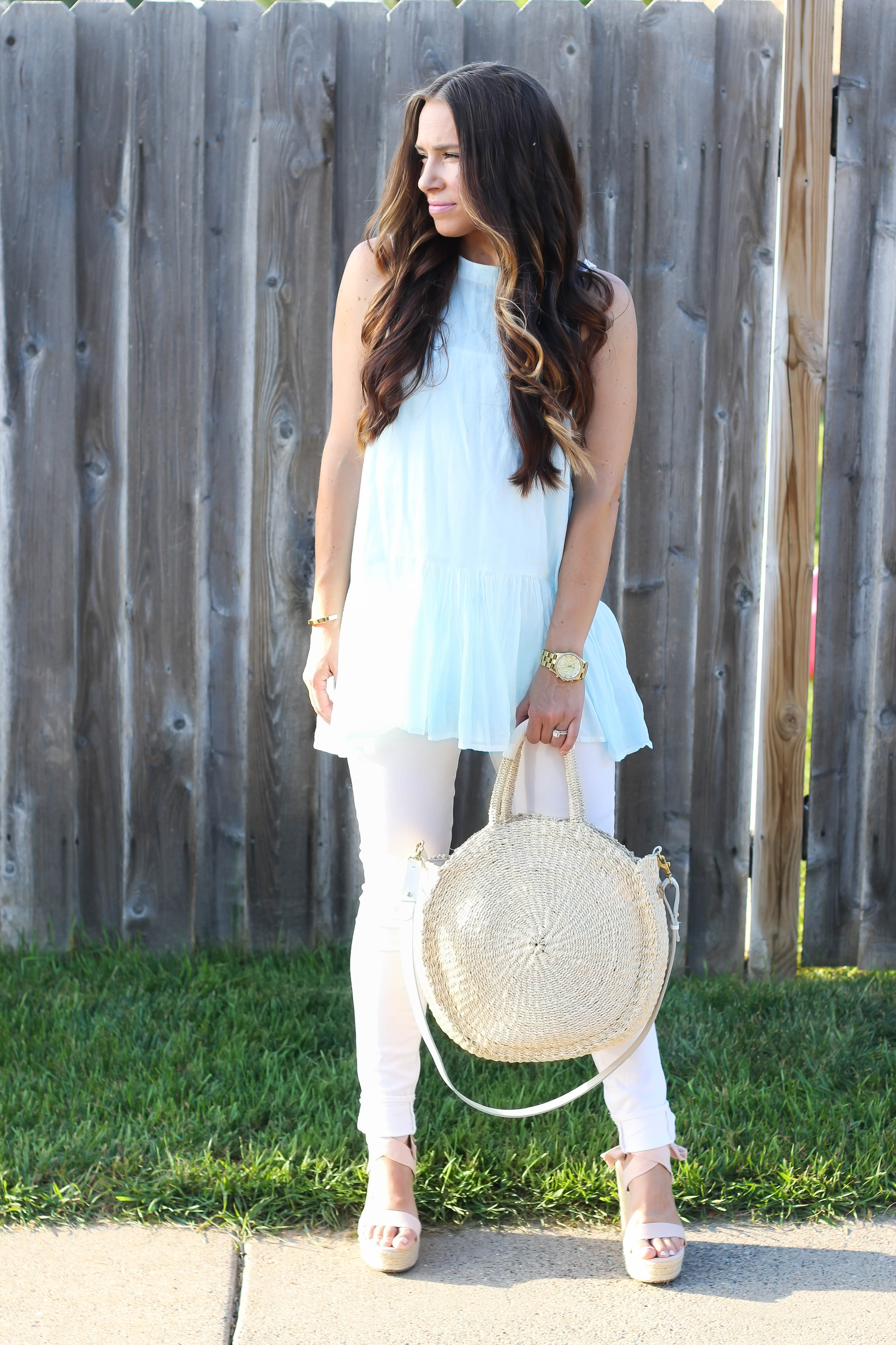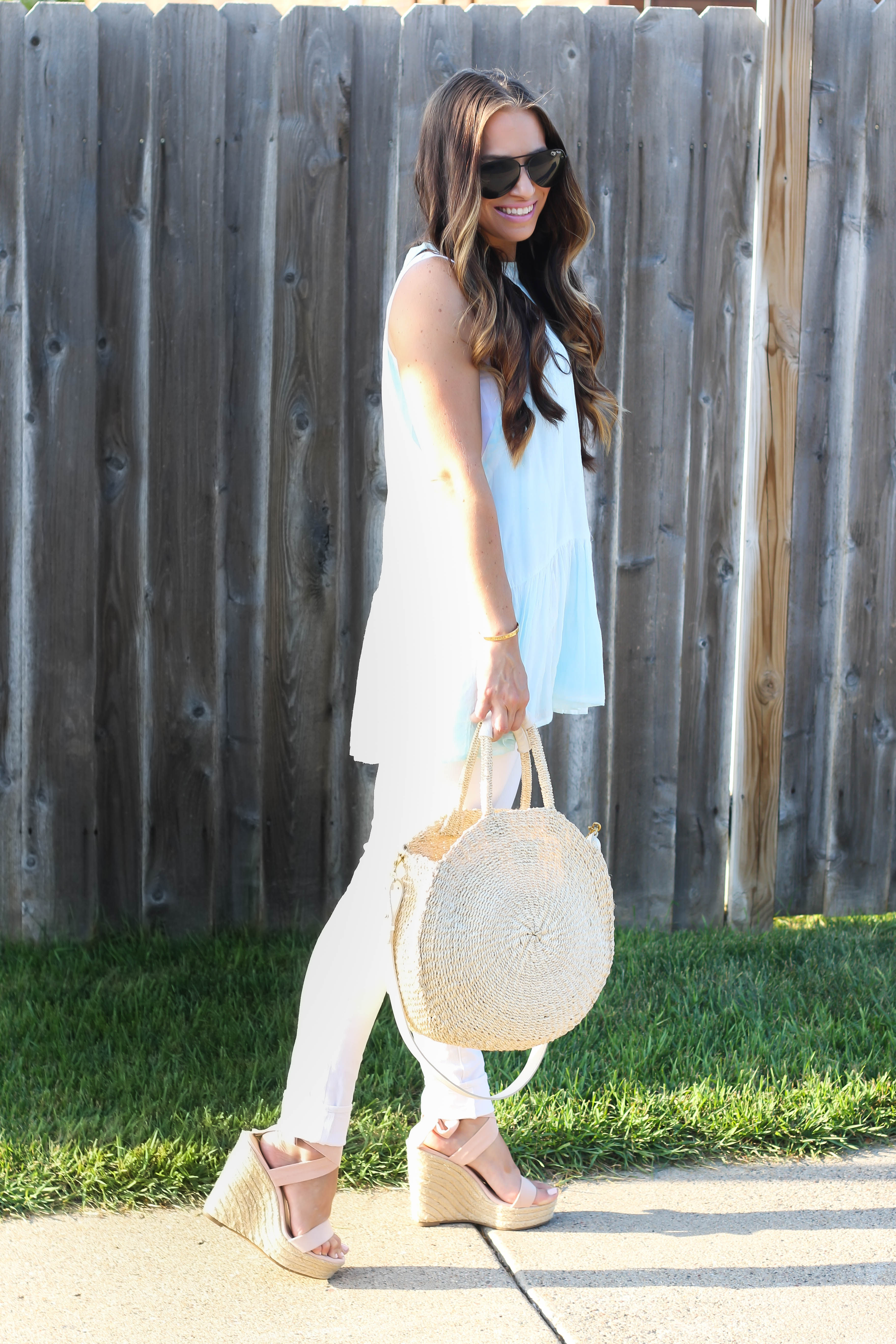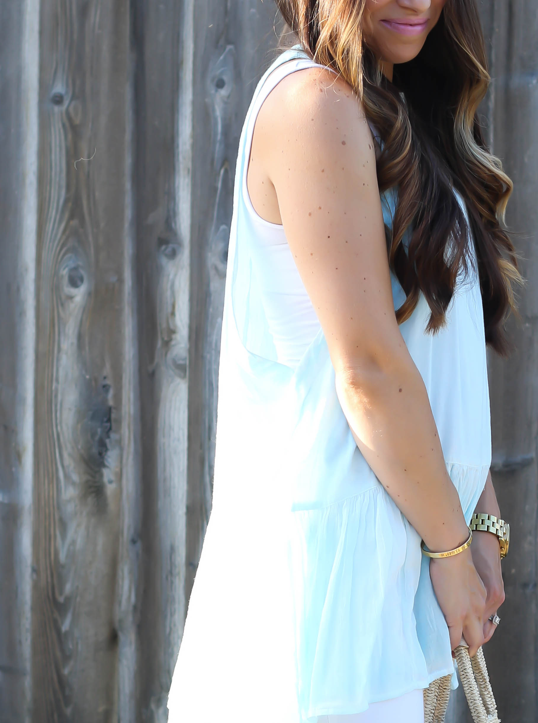 Happy Monday! Today, I'm sharing a look I wore the other night to dinner. I'm obsessed over this tank that I found at Nordstrom Rack! It is so much more blue in person than online! I love the low cut sides and how it keeps you cool in the summer. Also, finding cute Free People stuff on sale is a major bonus!! I linked all my outfit details below. I hope you have a wonderful day!