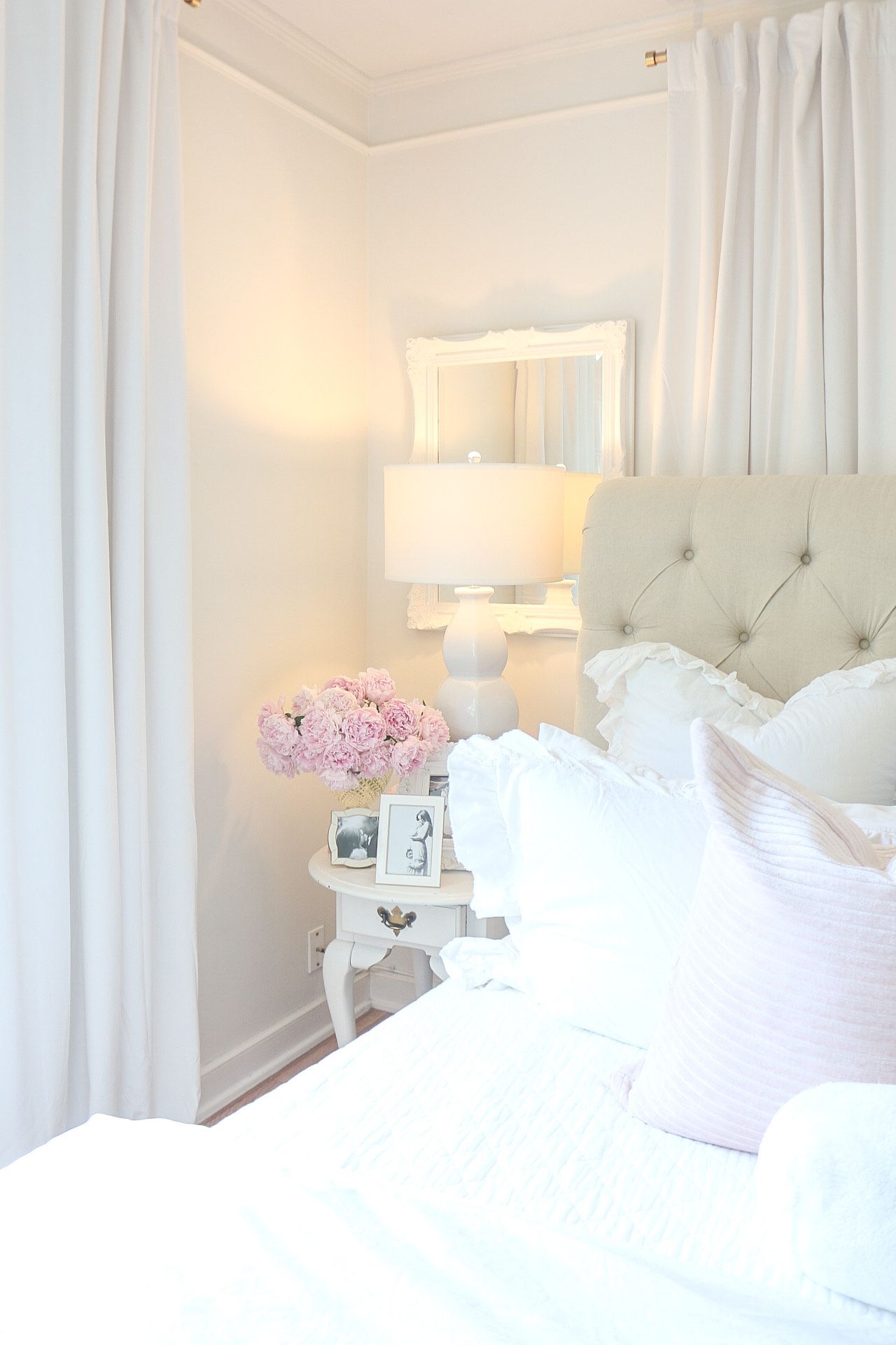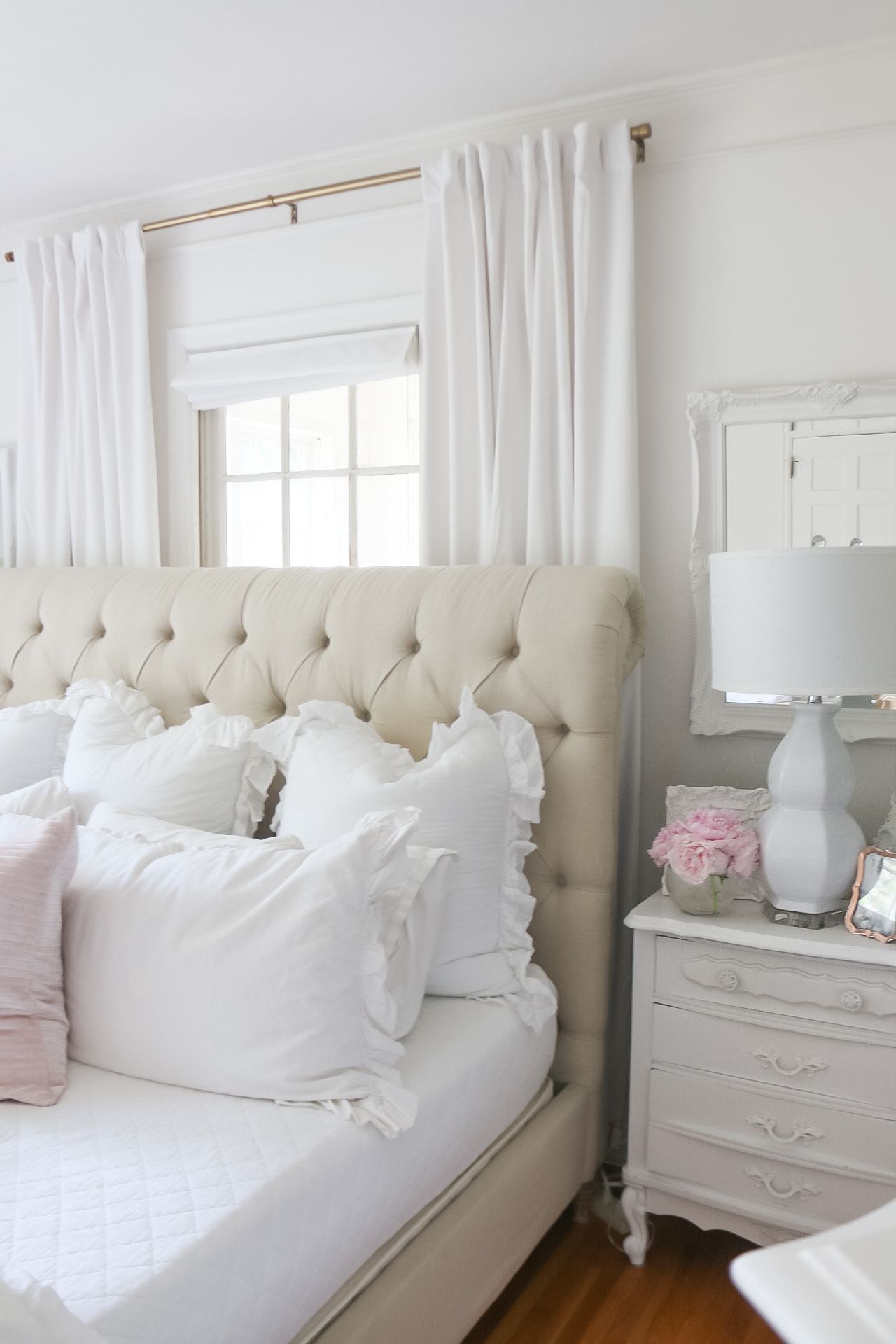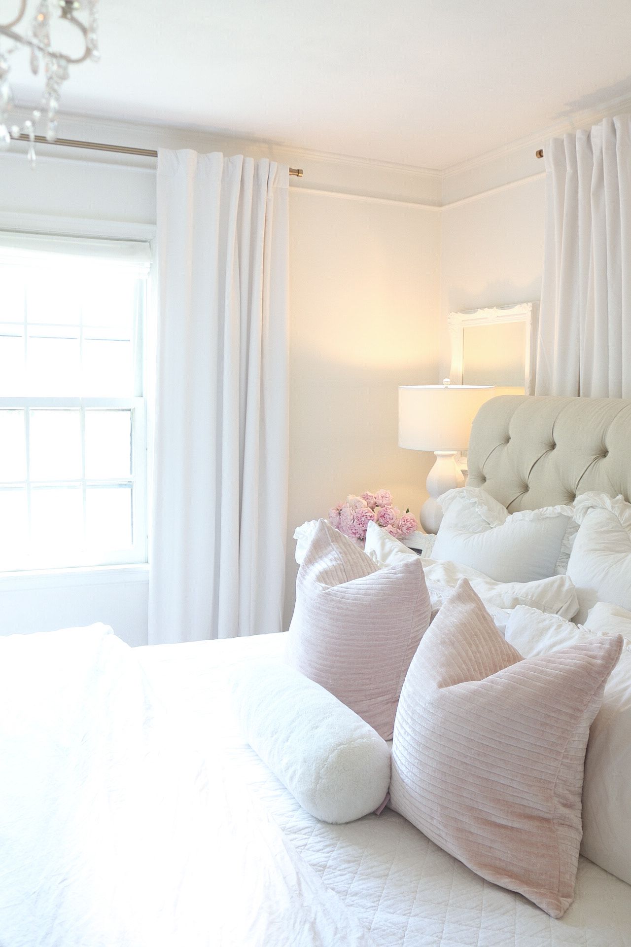 Today, I'm sharing our master bedroom refresh with Safavieh! I partnered with them to add a few things to our room. Summer is the perfect time to change things up a bit! I chose some beautiful white lamps and a couple of pink ottomans with studded detail.