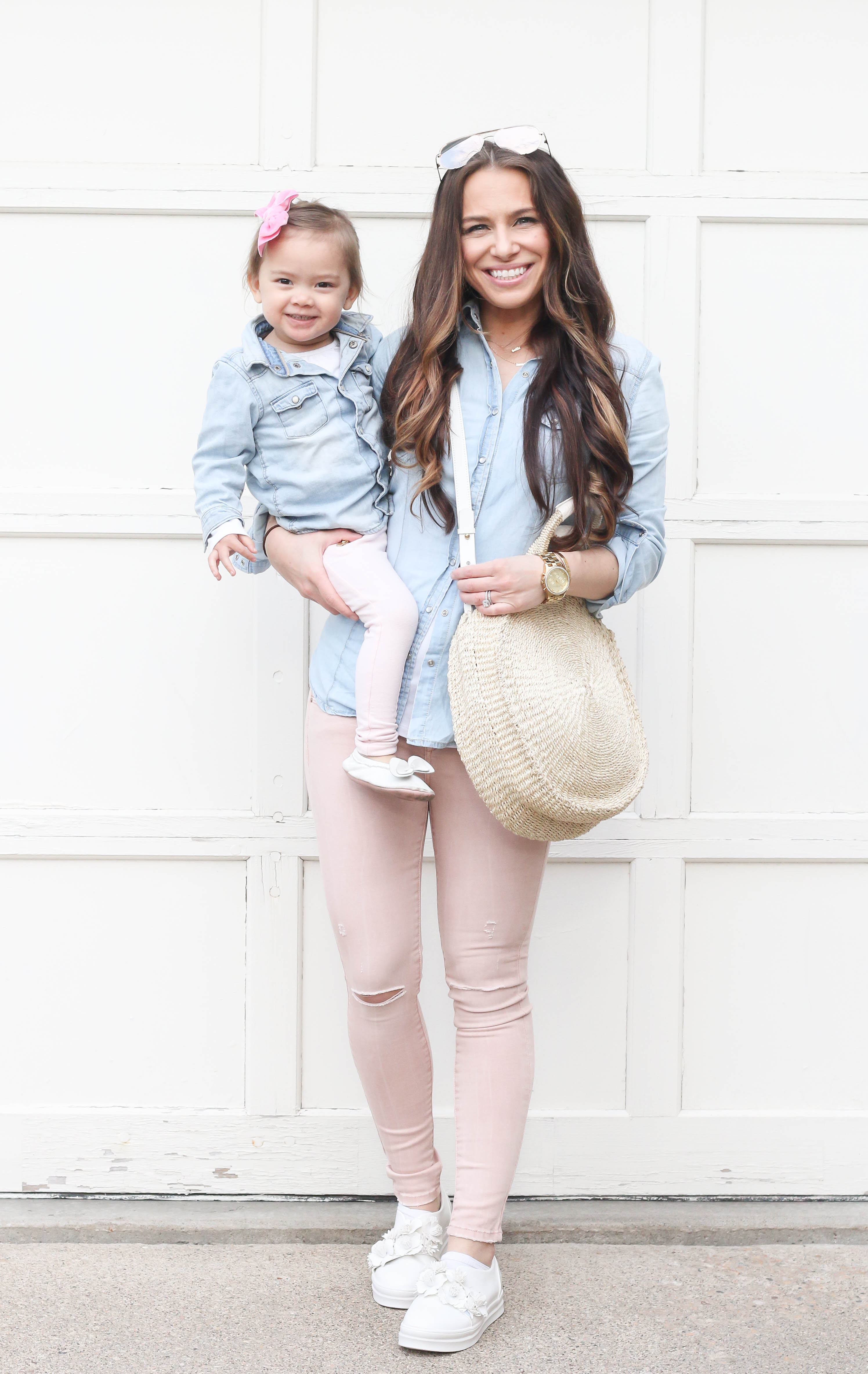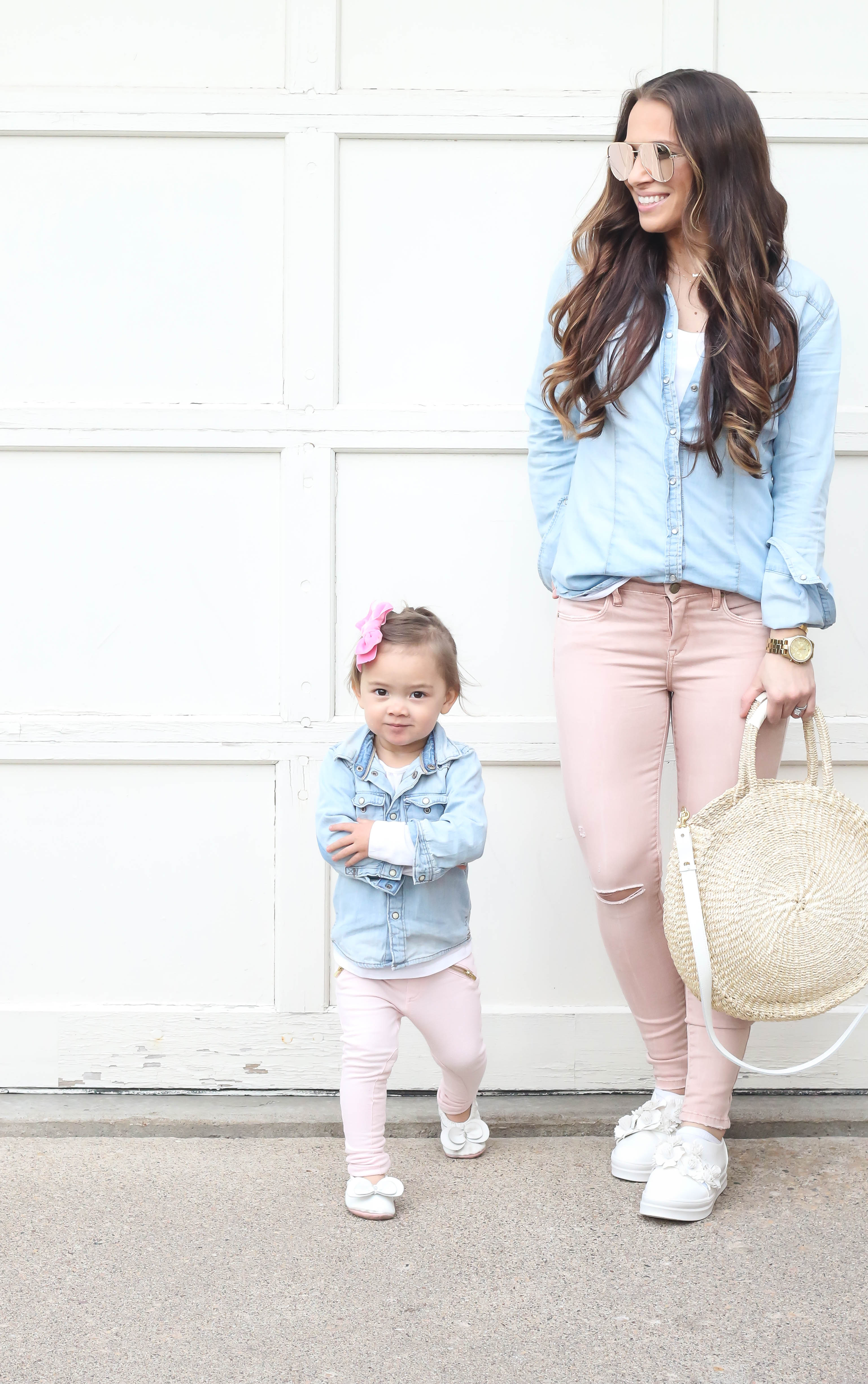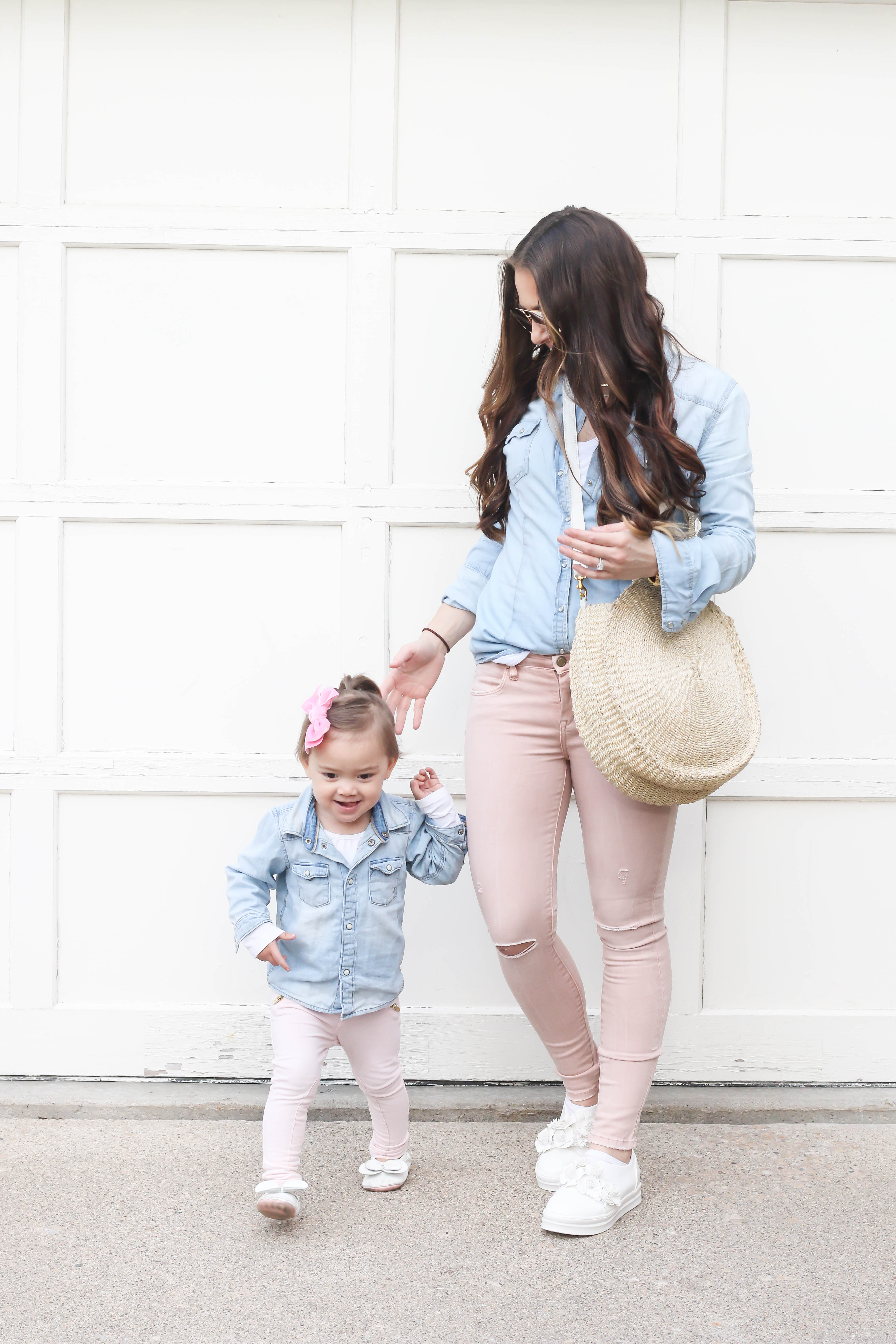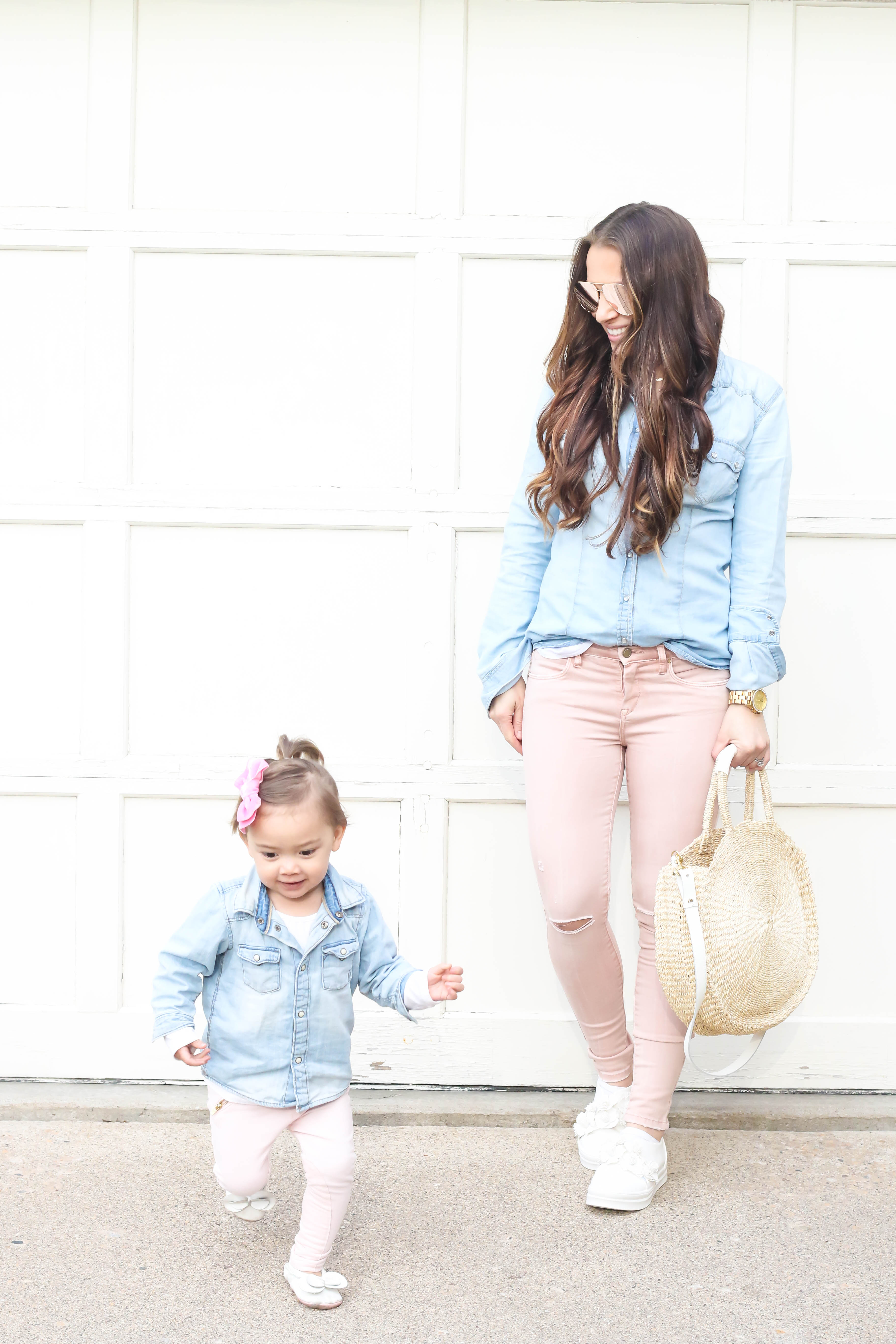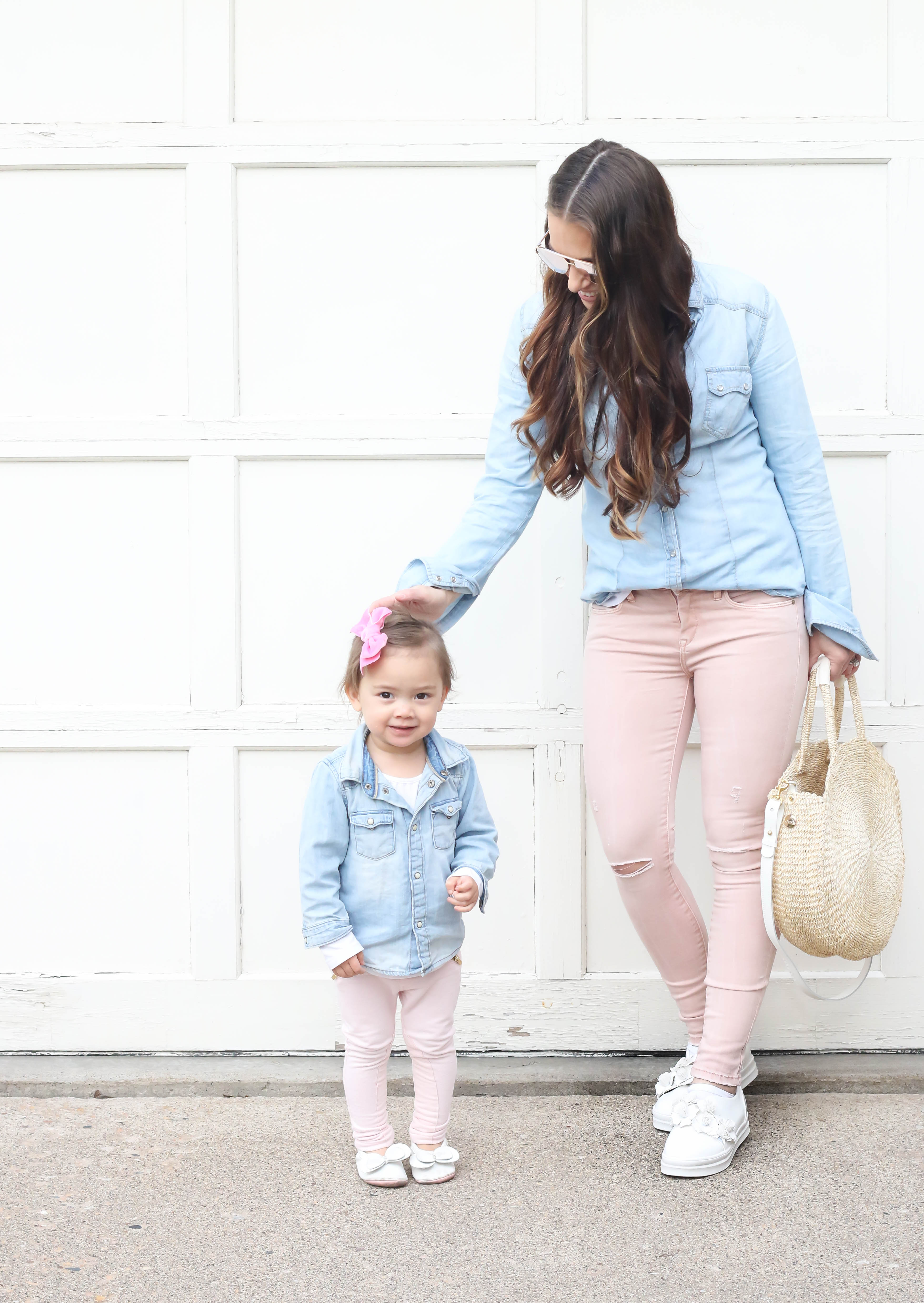 Happy Friday everyone! Today, I'm sharing the outfits that Bella and I wore to the National Day of Prayer event. We did a mommy and me outfit since it was a date night for the two of us! I'm just loving this perfect spring and summer handbag and the floral shoes are just too cute! I linked all the products below! I hope you all have a wonderful weekend.