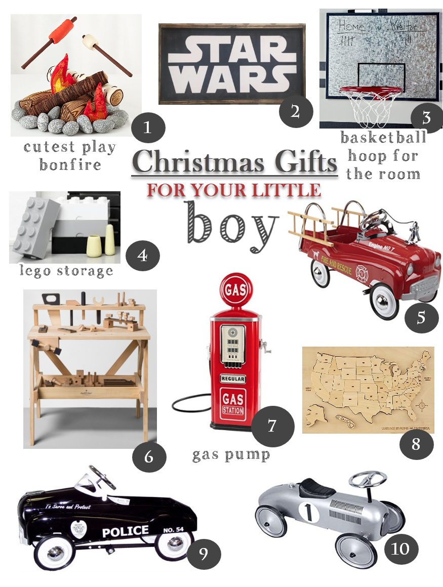 Boys , boys, boys......sometimes shopping for them is so hard! I wanted to find gifts that are not your average toy isle toy . Something that will make their eyes get so big and a huge smile to match! I just love the steel gas pump and that police car!! Happy shopping!!
