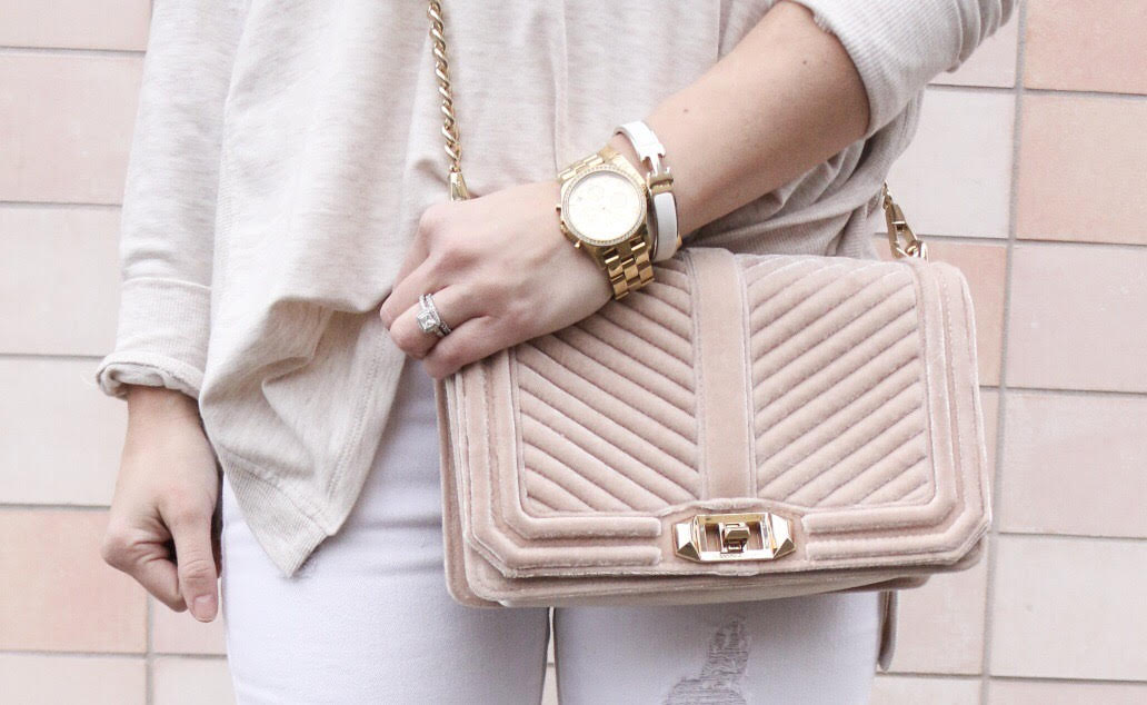 Happy Monday! Today, I'm sharing one of my favorite outfits! I love the mix of neutrals tones and gold. Also, this velvet handbag is beyond gorgeous! It fits just what I need when I'm running a quick errand and I don't have to carry my diaper bag with me. Also, this coat is my absolute favorite and I finally made the purchase before Christmas. I'm so glad I did. I hope you all have a wonderful day!