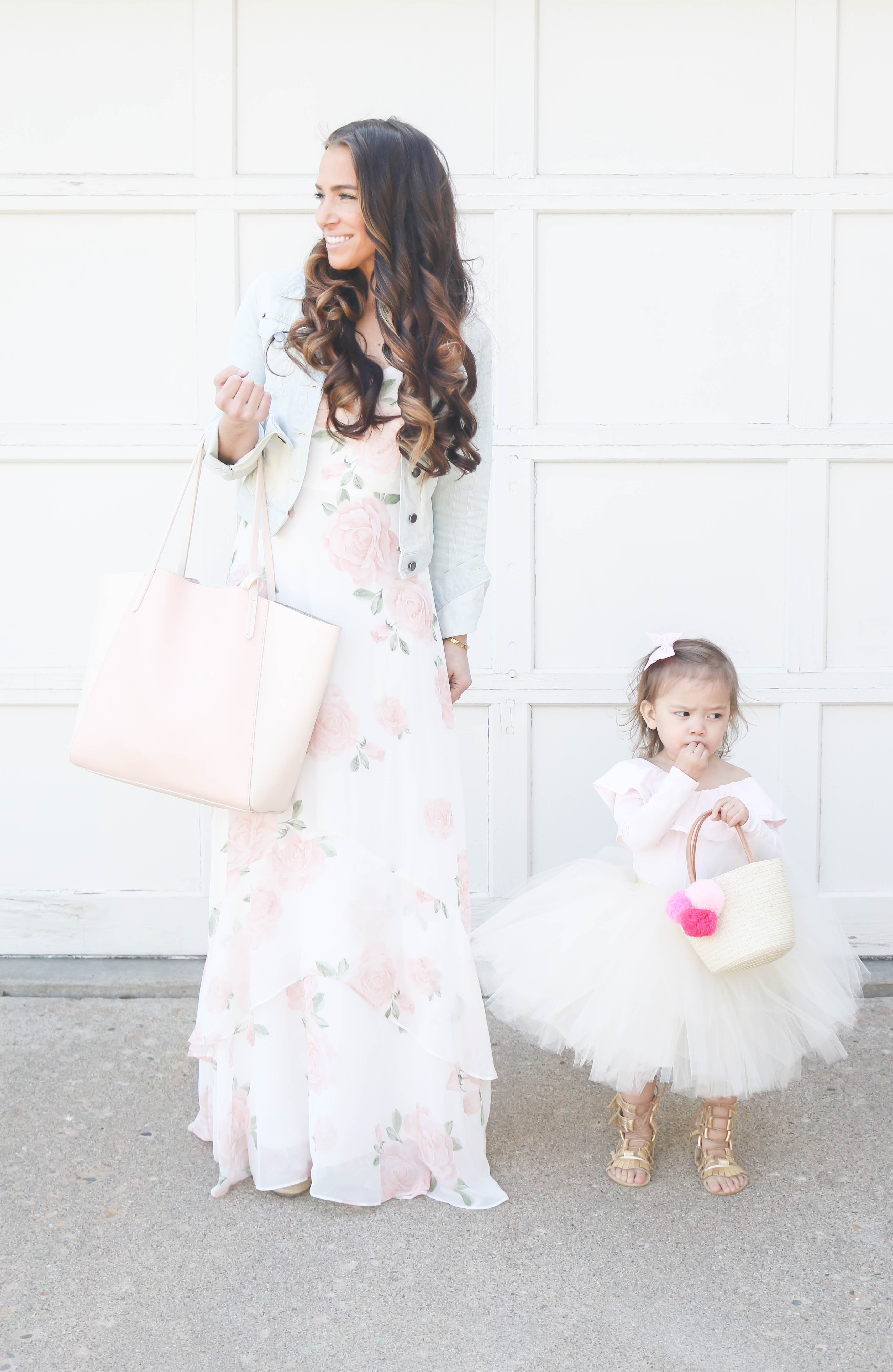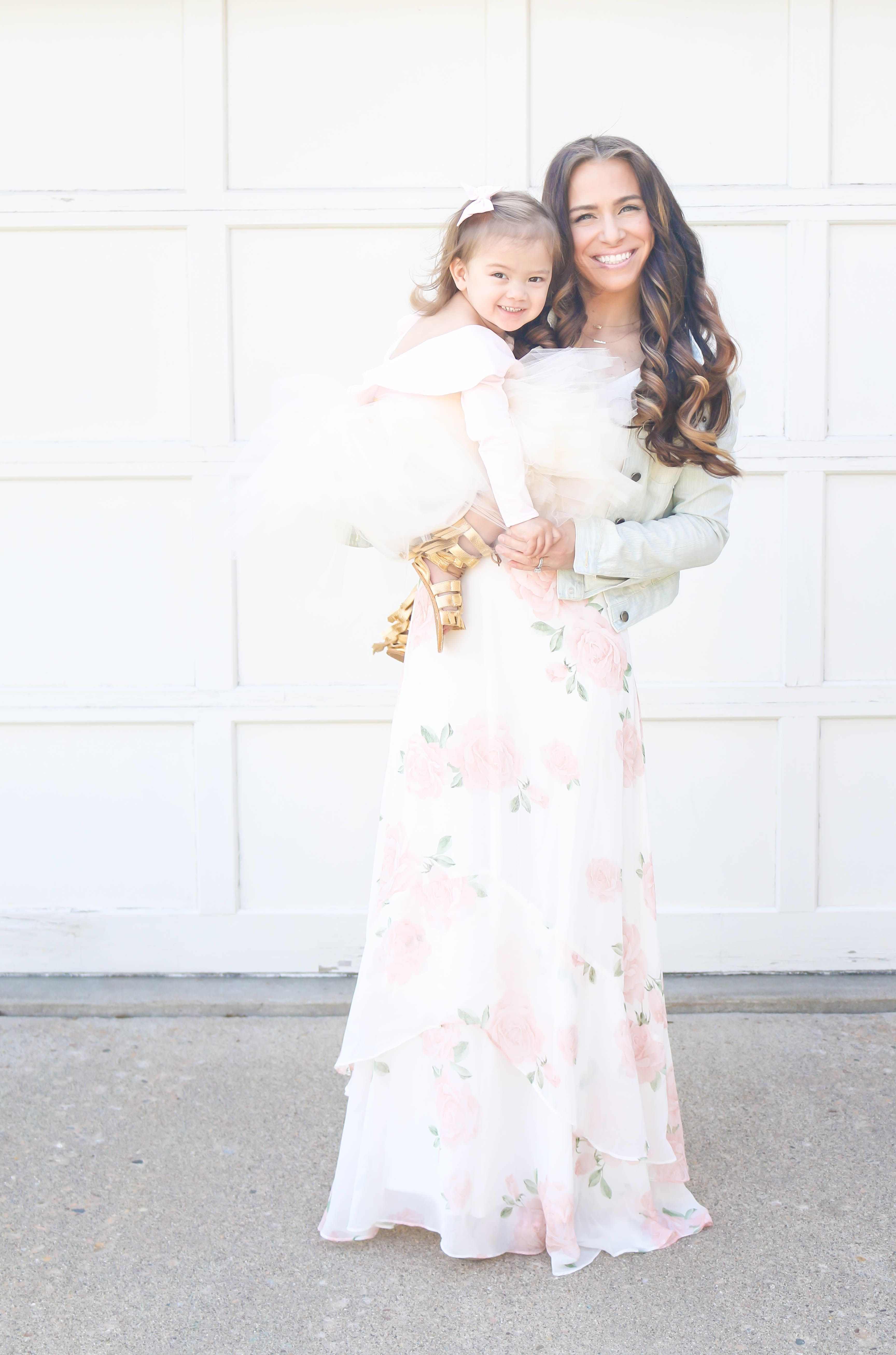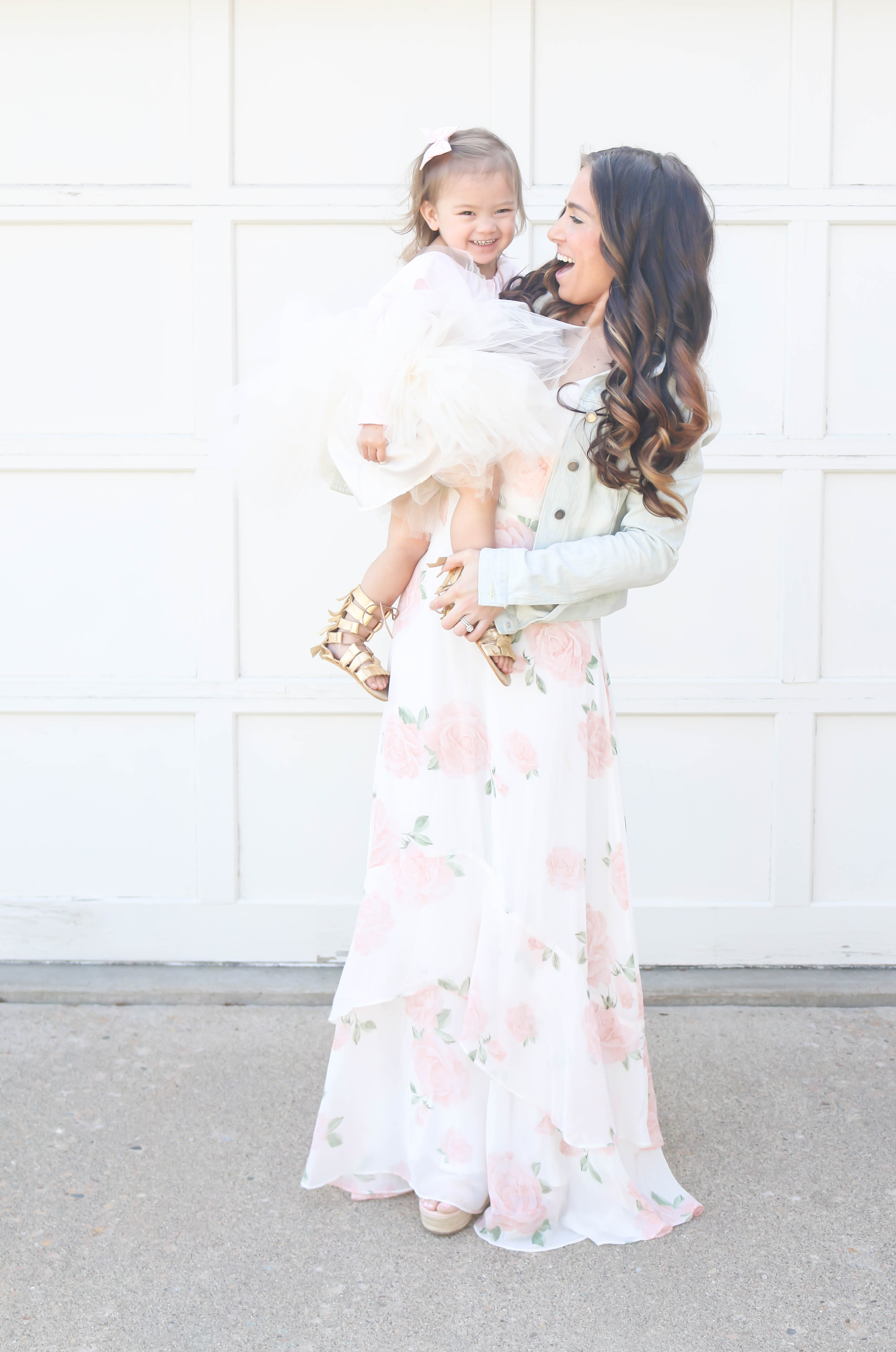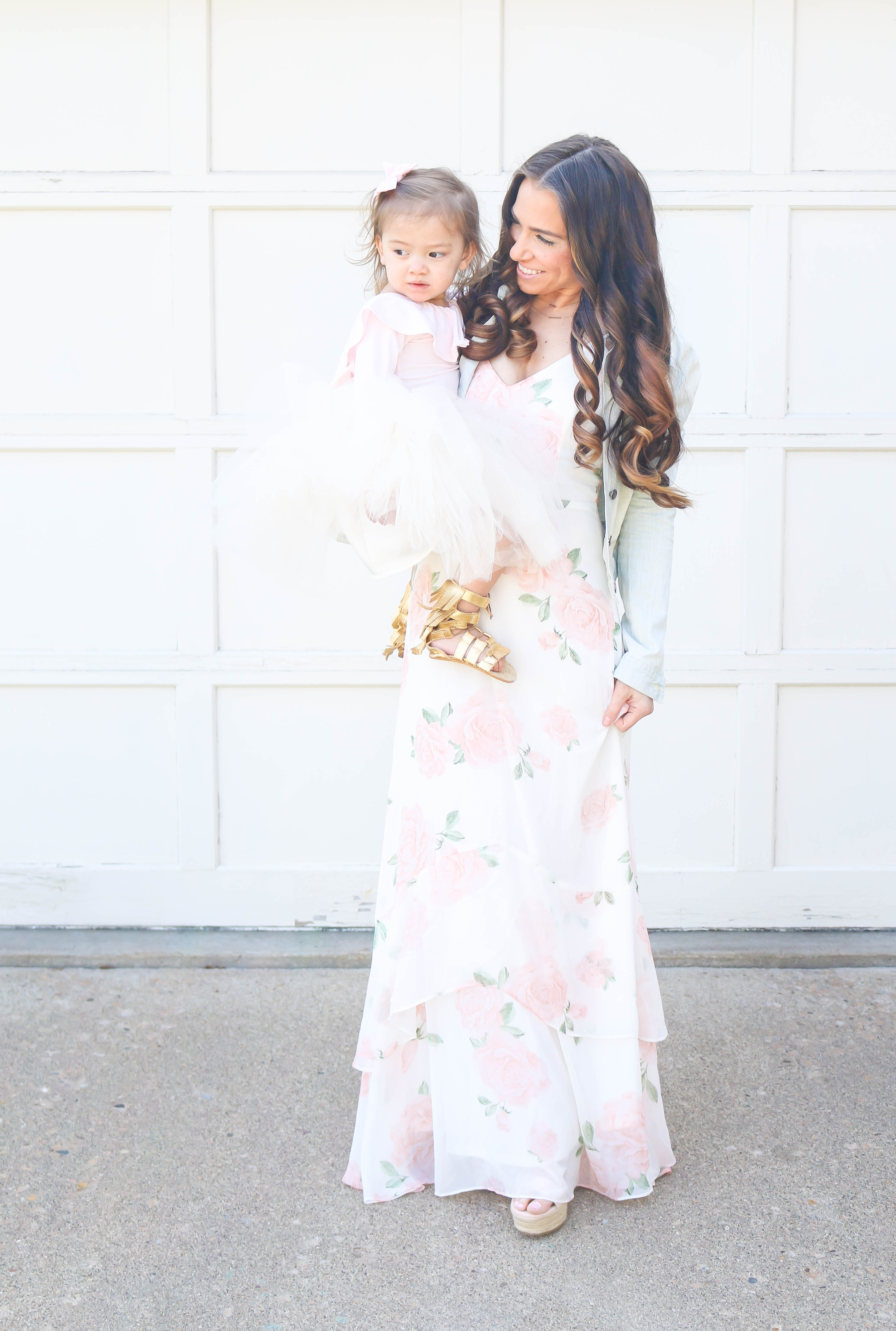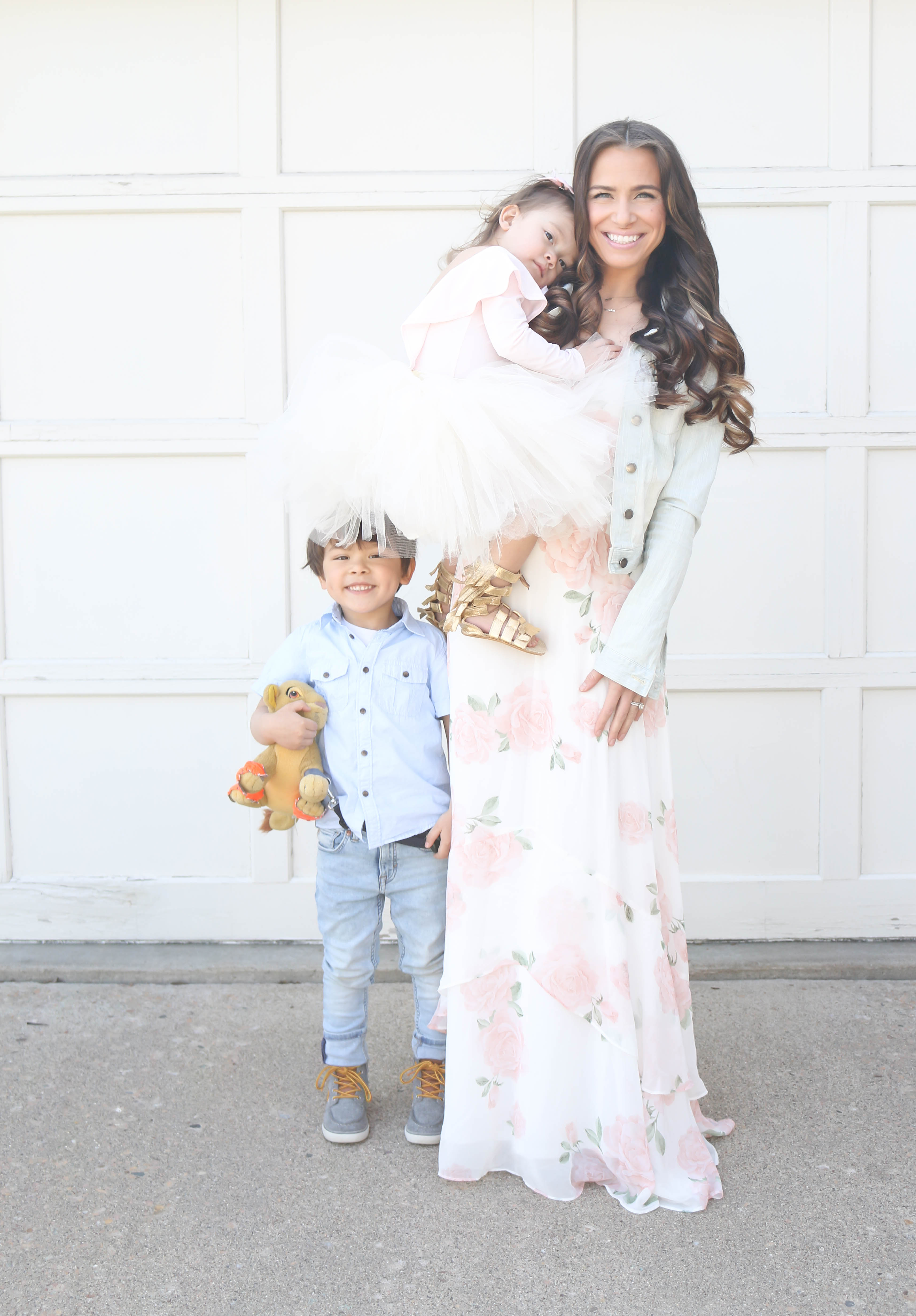 Happy Monday everyone! Today, I'm sharing this gorgeous dress with you that I wore to church yesterday. It's so comfy, flowy and just beautiful. Oh and affordable! It's perfect for both spring and summer. It can be casual or dressy. I just love the draped sleeves as well. Bella wanted to get in some photos and Camden got in for one as well!! I listed all the outfit details below. I hope you all have a great week!