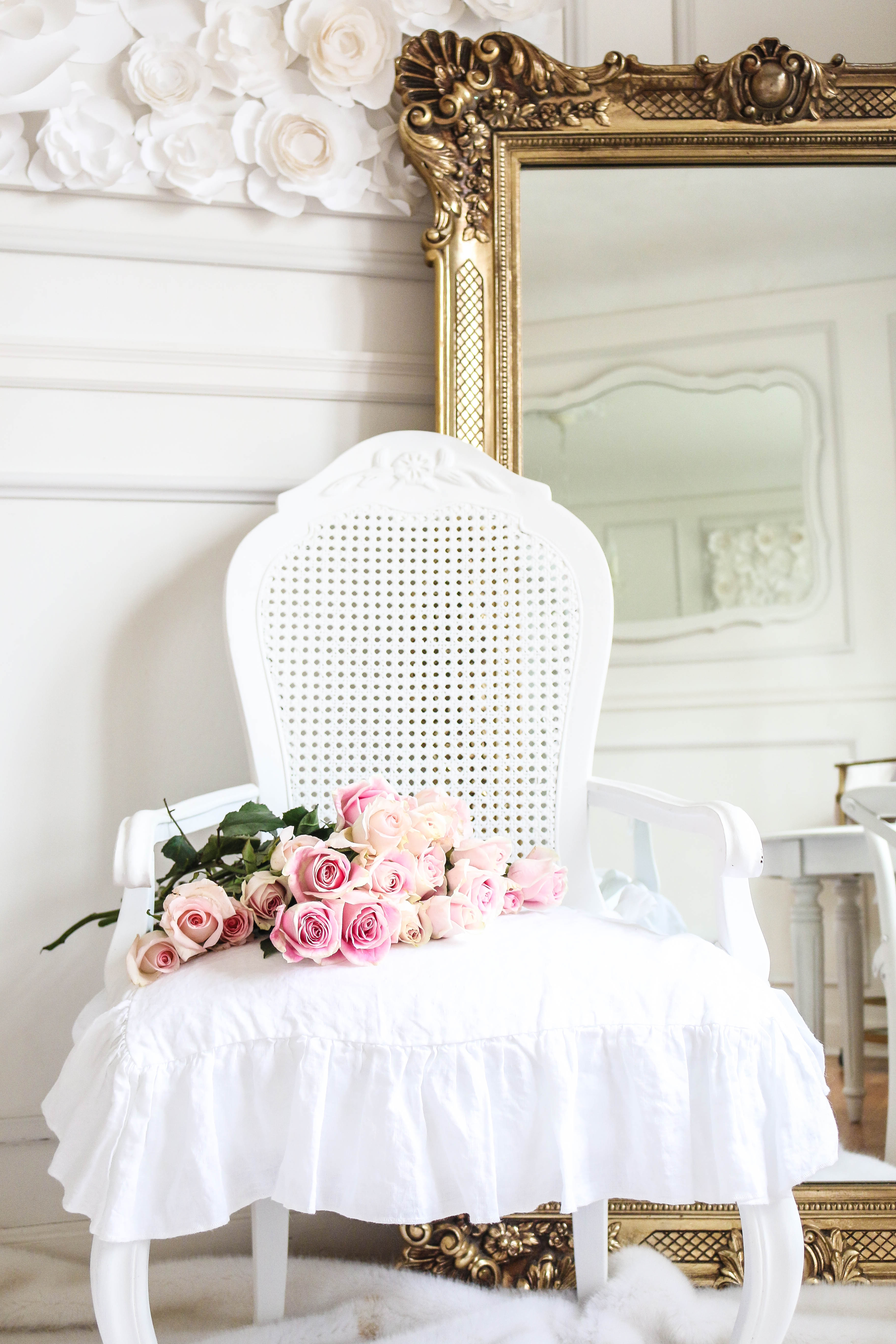 Here and Here and Here| Similar Faux Fur Throw | Similar Mirrors |Similar Chandelier Here and Here | Similar Fireplace Mantel | Similar Paper Flower Wall | Glass Conservatory | Ring Holder | Pink Velvet Throw Pillow Here and Here |