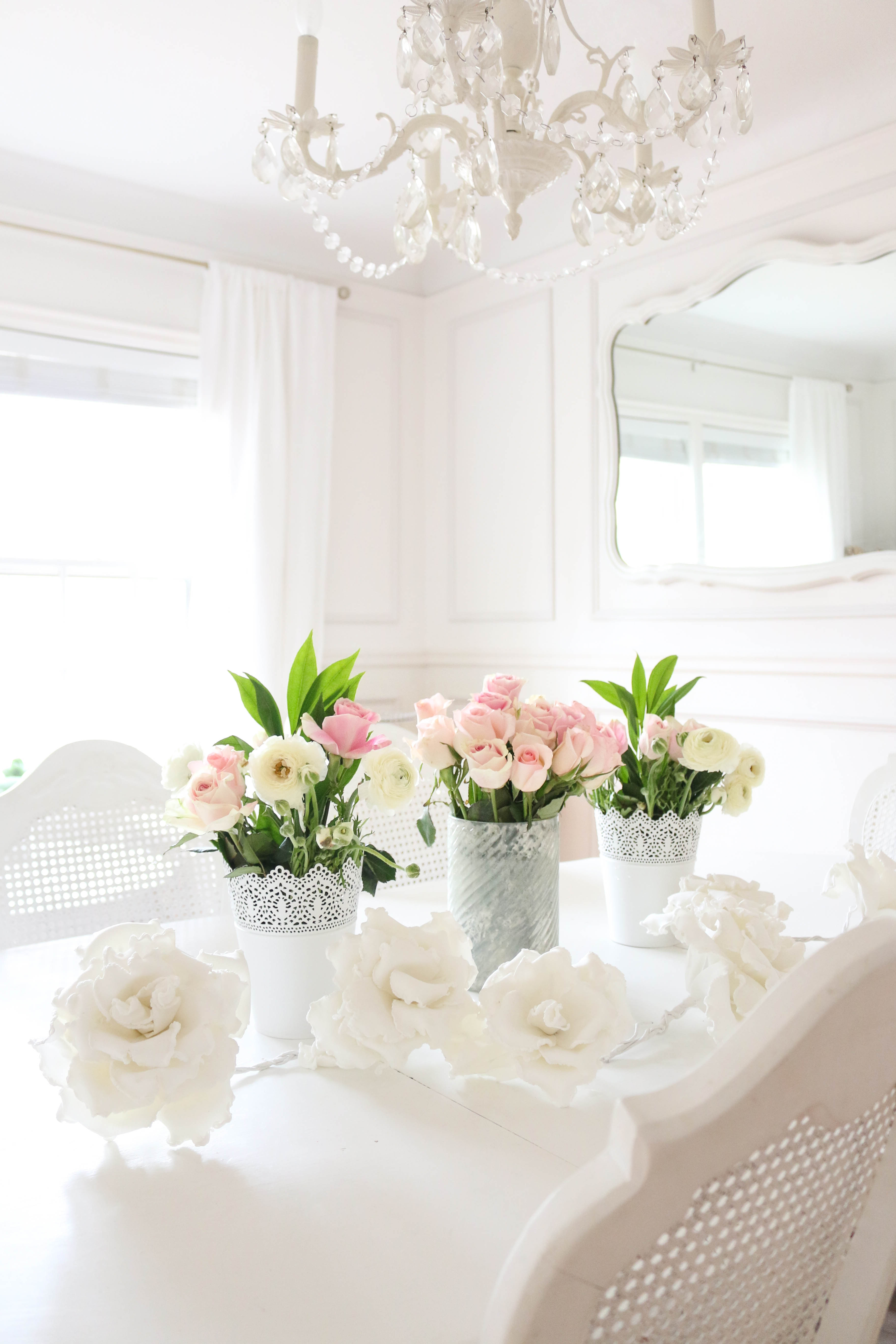 For the dining room, I just added some fresh blooms and a faux floral garland to the table. I also added some succulents to Camden and Bella's little table. Isn't it amazing how just some plants or flowers can change how you're feeling?