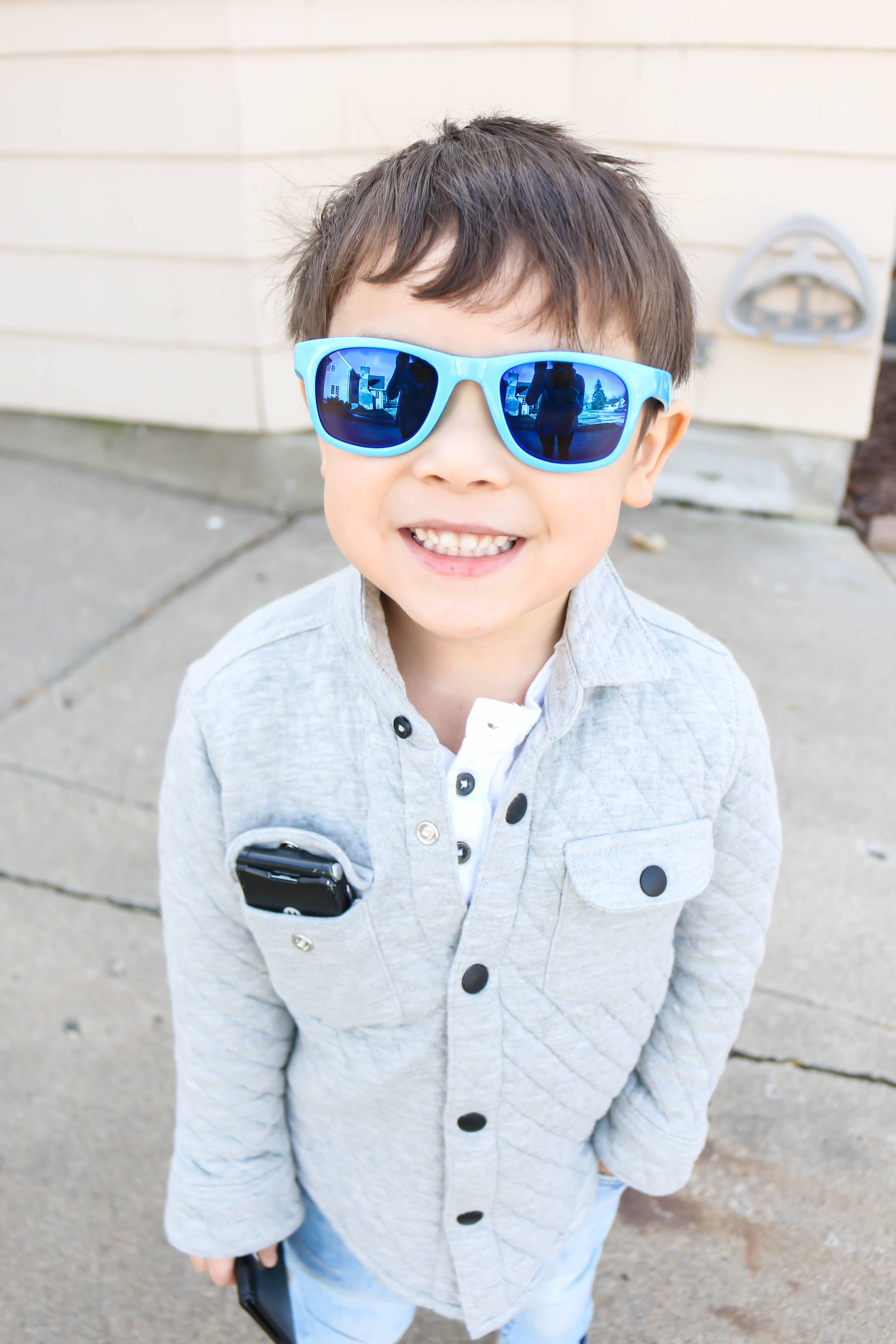Happy Monday! We're ready for some warm sun here in the frozen tundra! These two have been waiting so long to put on their sunnies. With the balmy 60 degree weather we've been having the last few days, these Real Kids Shade sunglasses have worked perfect! I hope you have a wonderful week!