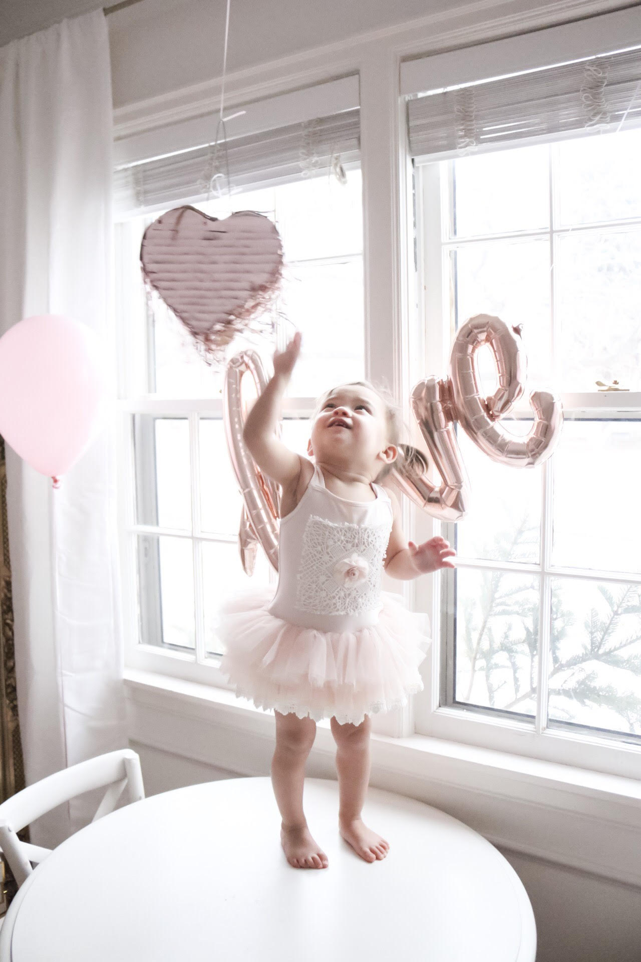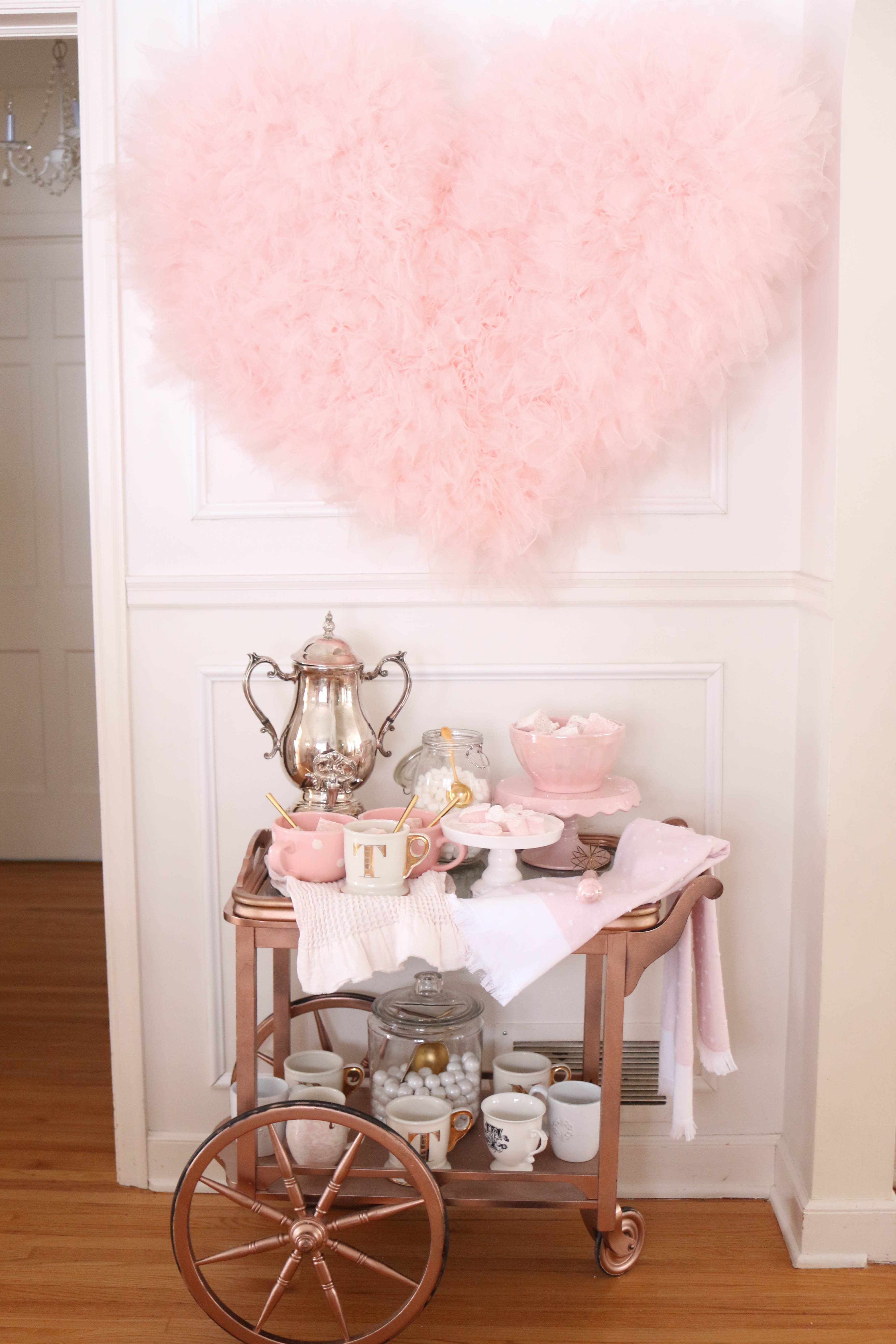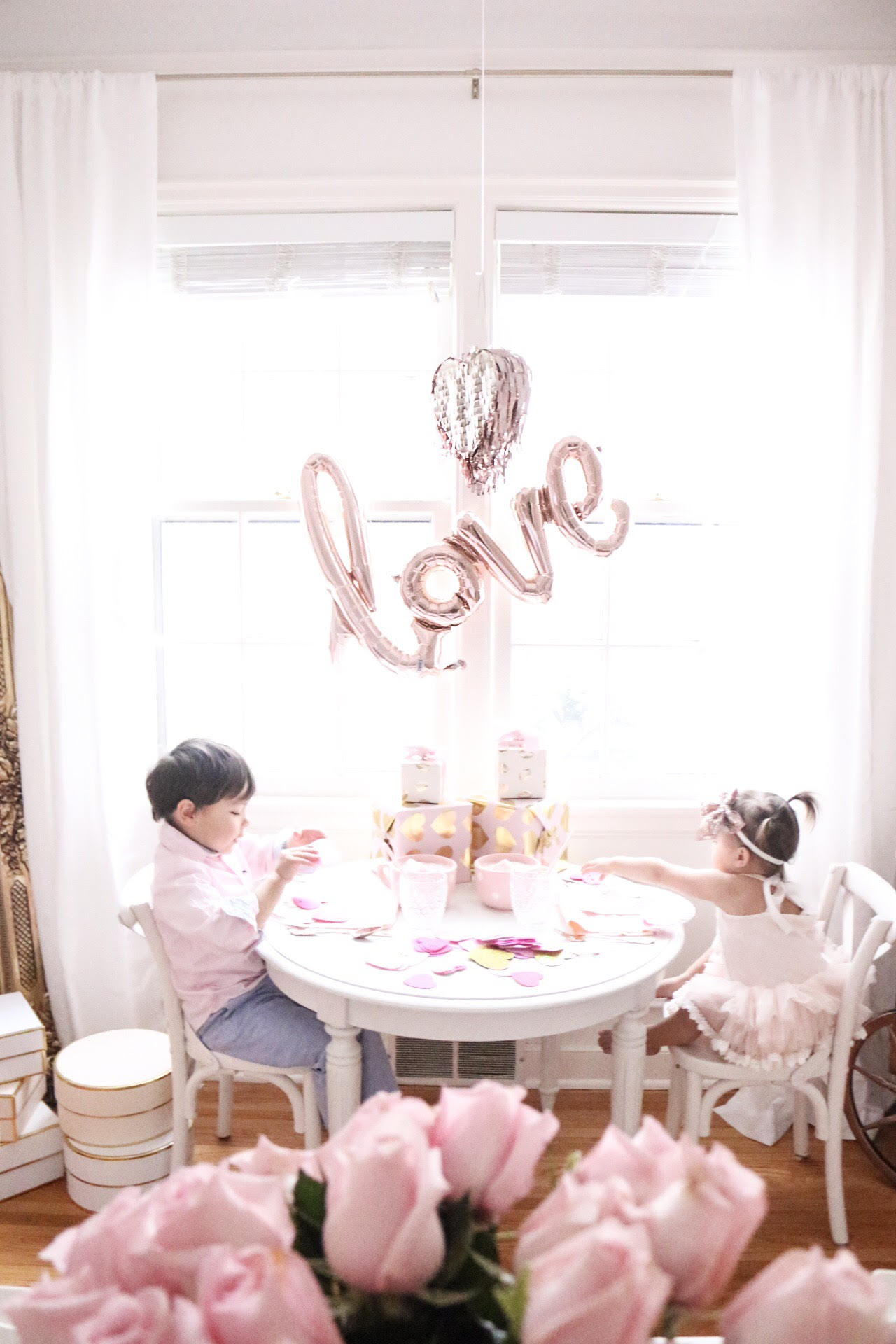Dress / Love Balloon / Heart Pinata / Flatware / Similar Dinnerware / Mugs / Favorite Bar cart / Favorite Bar Cart / Similar Mirror / Similar Vase / Kids Table and Chairs: RH Baby and Child