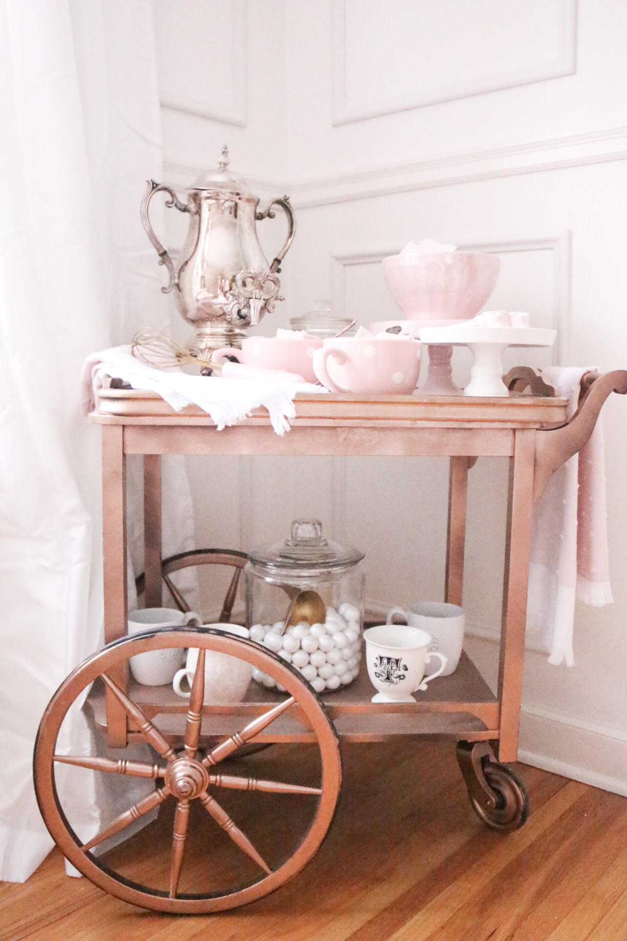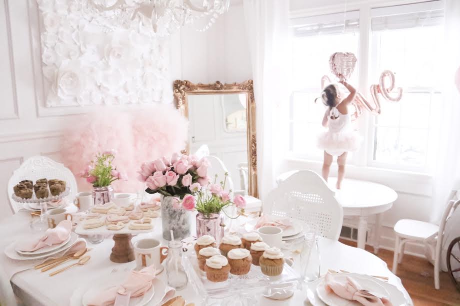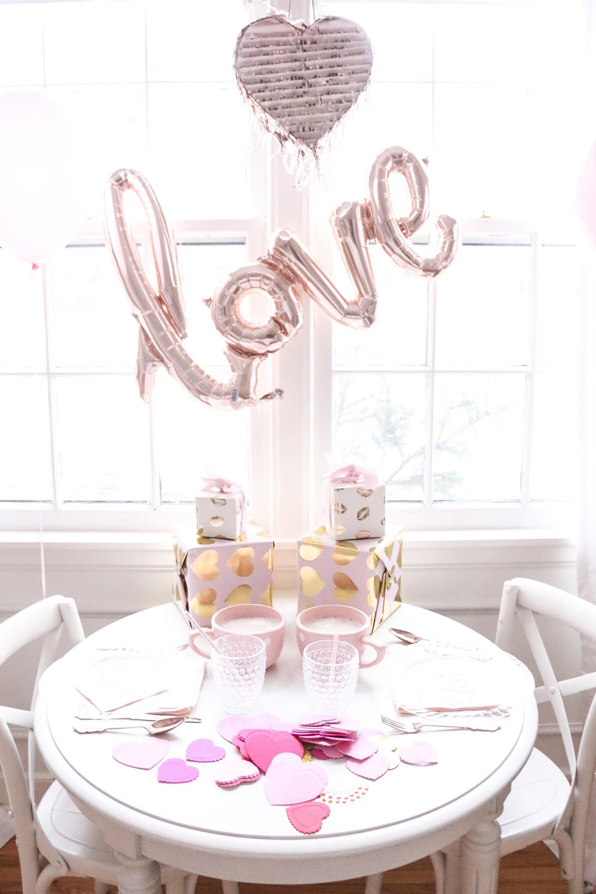 Dress / Love Balloon / Heart Pinata / Flatware / Similar Dinnerware / Mugs / Favorite Bar cart / Favorite Bar Cart / Similar Mirror / Similar Vase / Kids Table and Chairs: RH Baby and Child