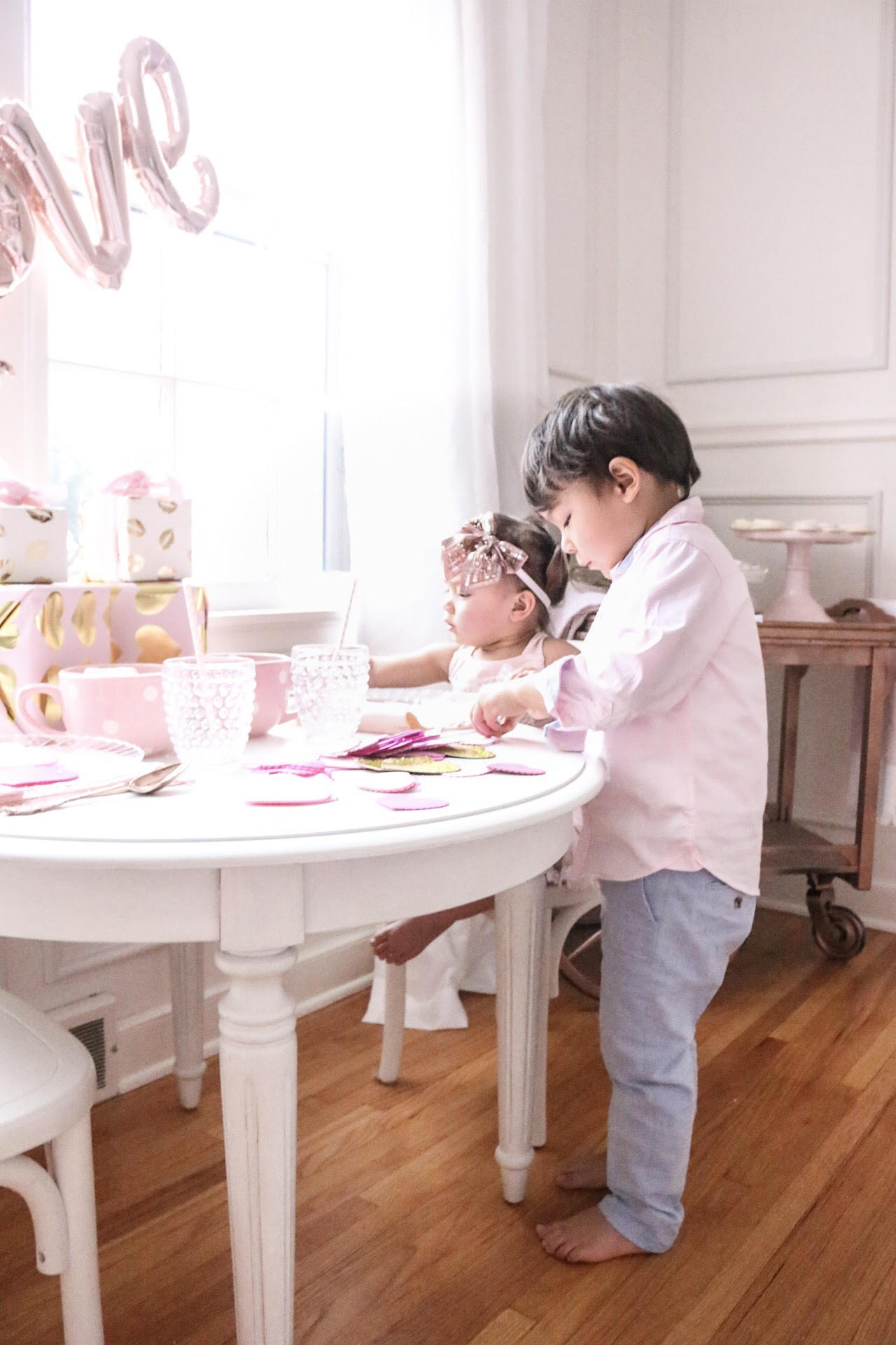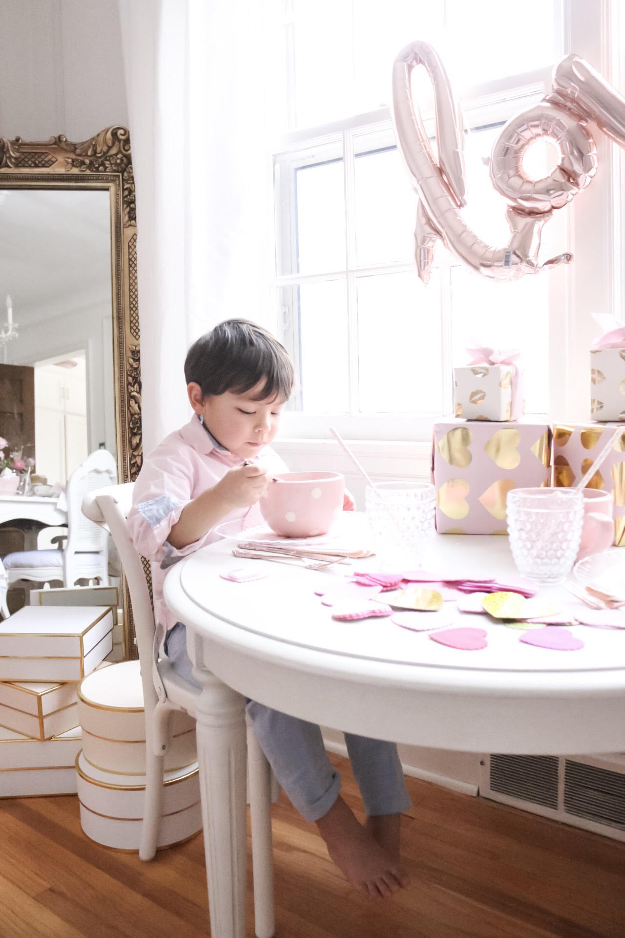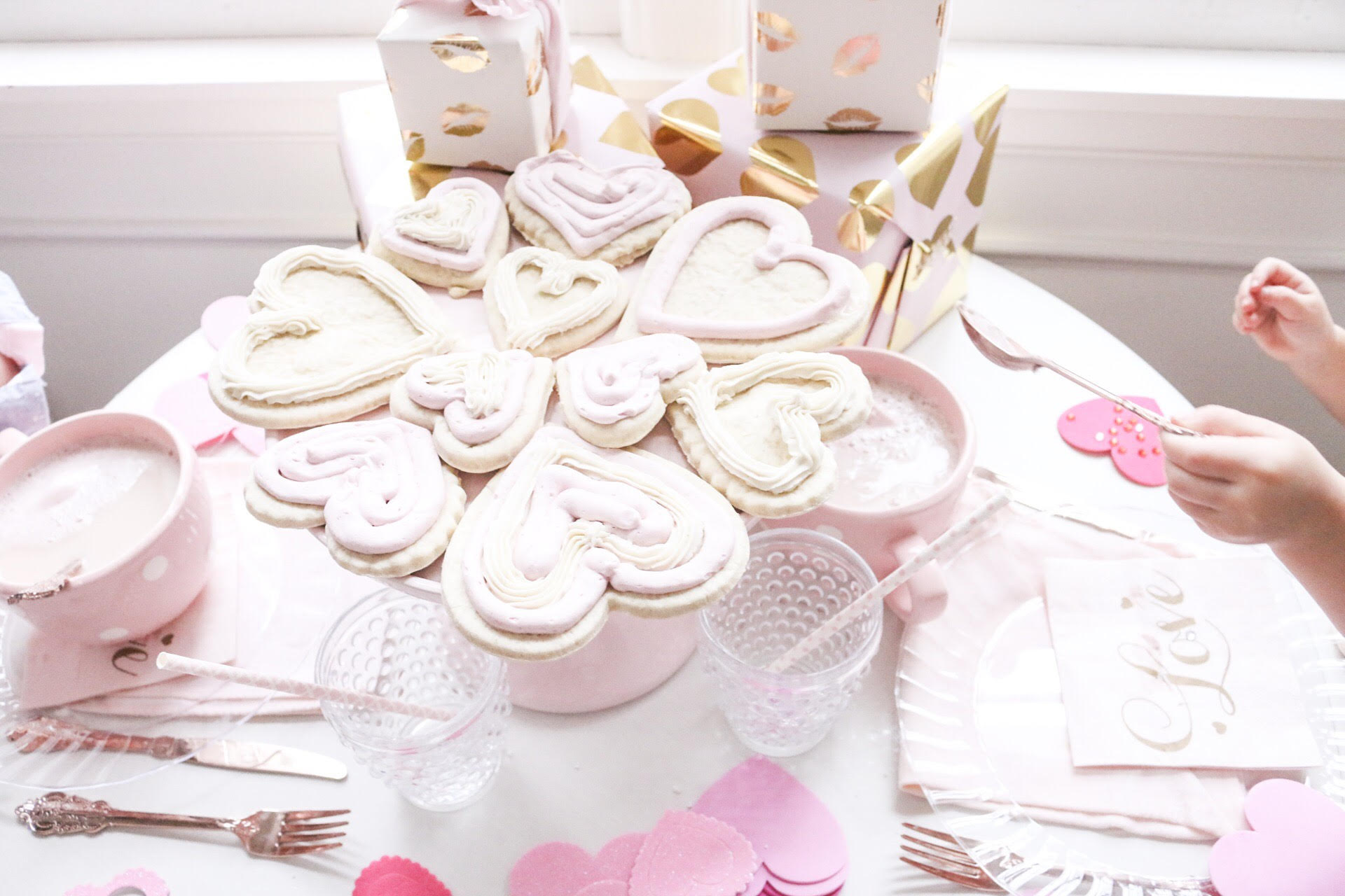 Today, I'm sharing a sweet little Valentine's Party we had earlier this week. It was packed full of sweets, hearts and so much love. Camden and Bella were so excited to eat the cookies that they helped bake, drink some white hot chocolate topped with a huge pink homemade marshmallow and open some sweet little gifts. Below I linked all the party supplies along with some tips on throwing a party!