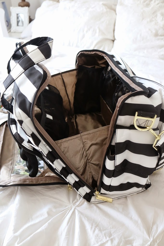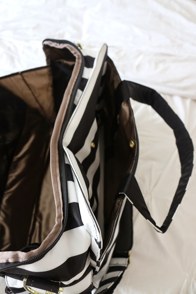 This has been my most popular blog post. I understand why! Finding a diaper bag that is both functional, roomy and stylish is hard to come by! I have now had this diaper bag for two years and I absolutely love it and it holds up to all of it's promises! Having two babies so close in age means that I have a lot to carry! Below are detail photos and what I pack in my diaper bag! I'm also linking a smaller bag in the same pattern in case you don't need that much room.