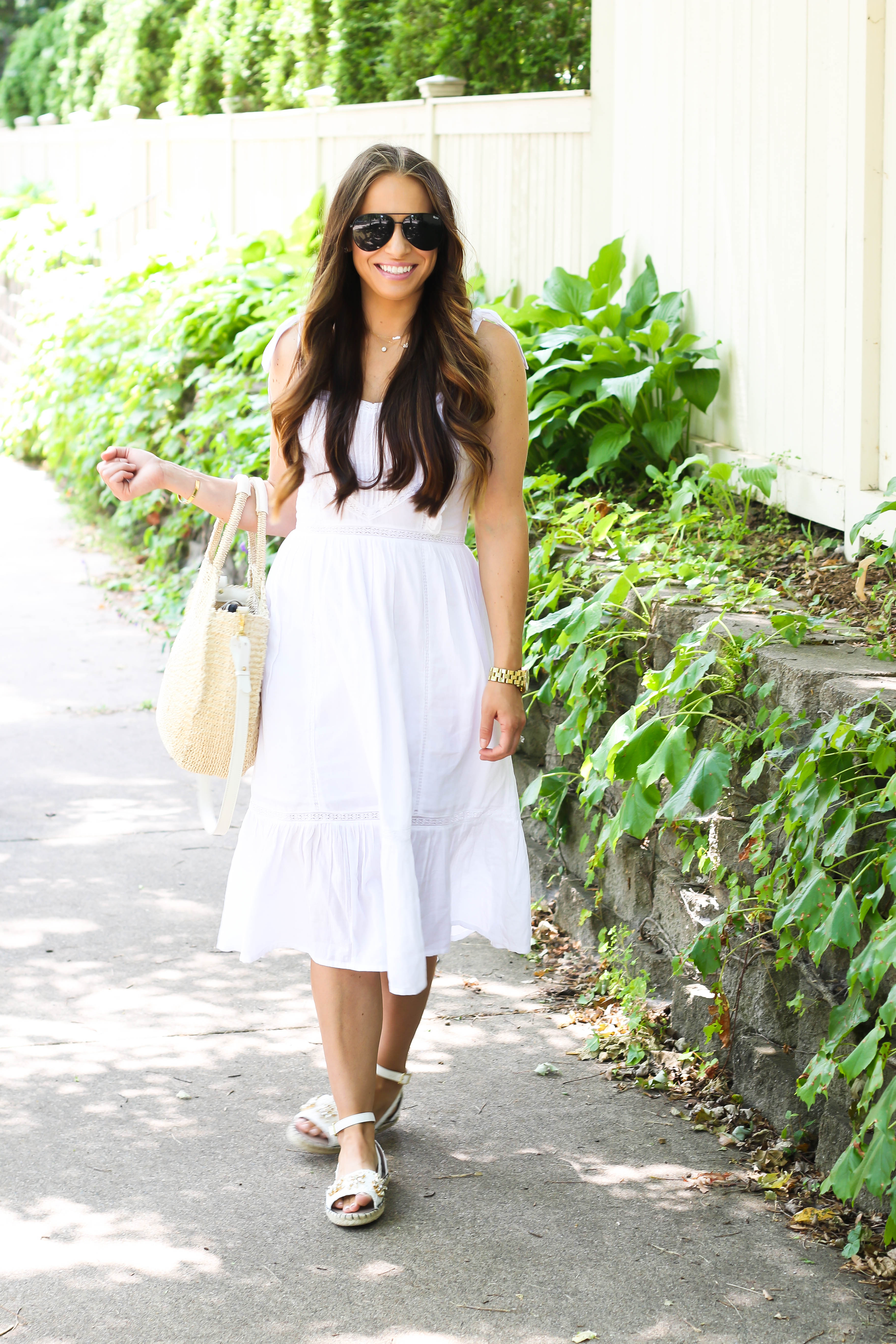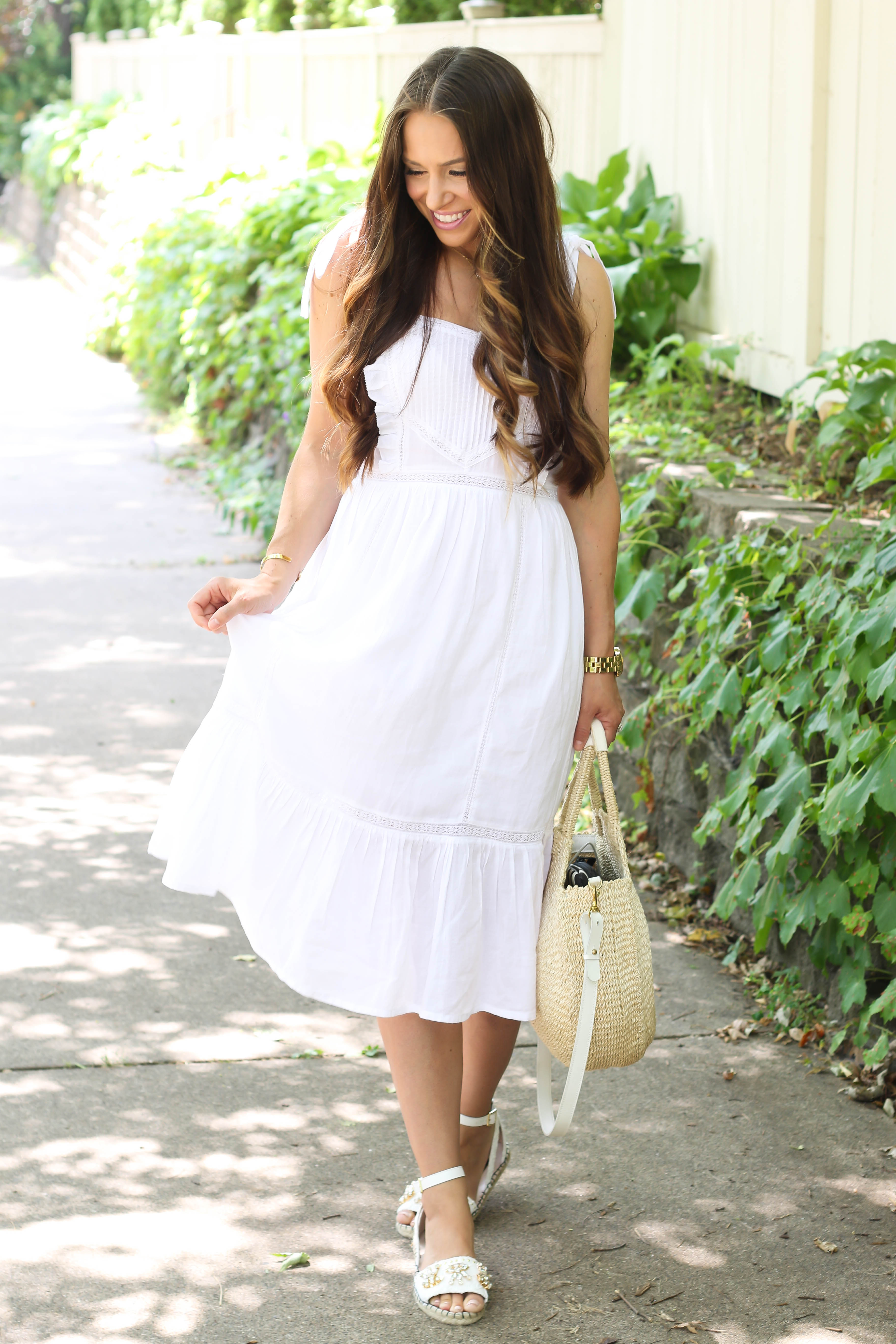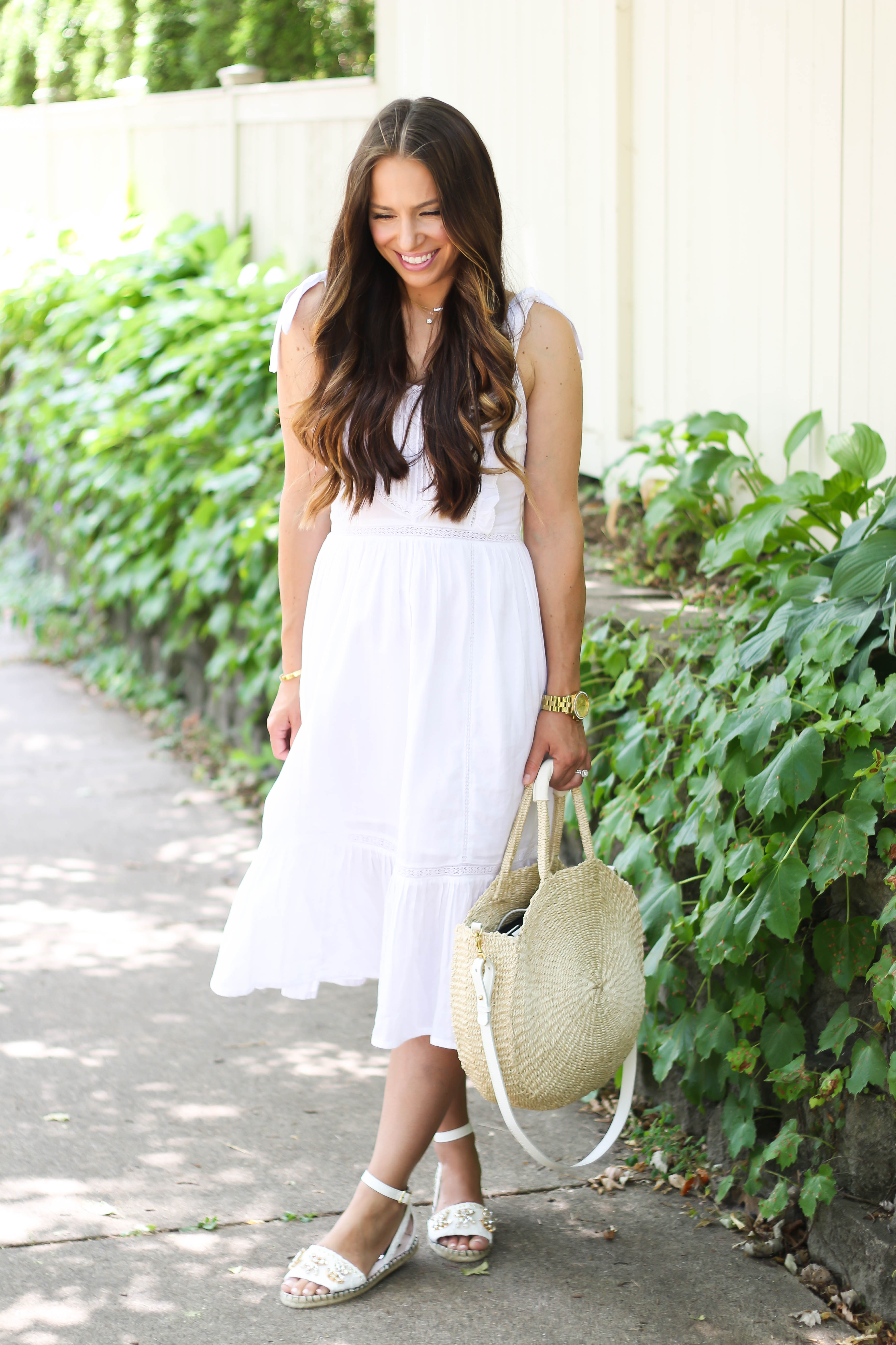 Here's a look I wore to church last Sunday! I have to say this dress is the perfect summer dress! It's so lightweight but still has a lining, it's a great length, super cute and the shoulder ties are just darling..oh and it's only $45! I would say that the bodice runs small. I ordered a size 4 and it's a bit hard to get on as the bodice isn't that stretchy. I listed all the outfit details below. I hope you all have a wonderful day!