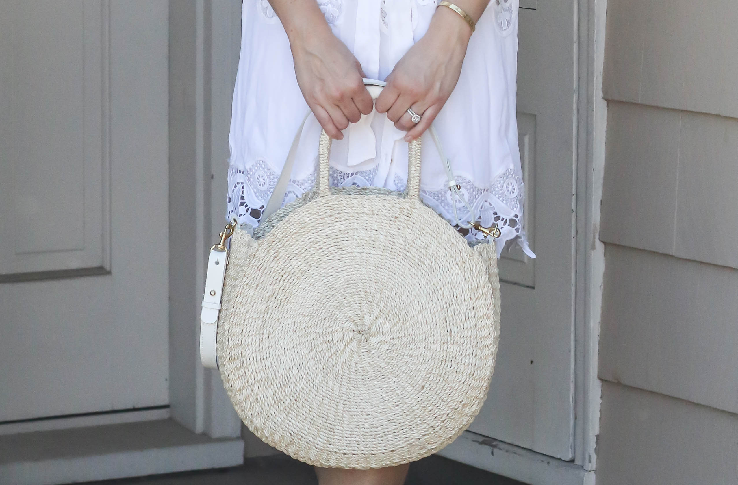 Dress: Sold Out but similar versions here and here | Similar Sandals | Handbag: Large version sold out but smaller version here.